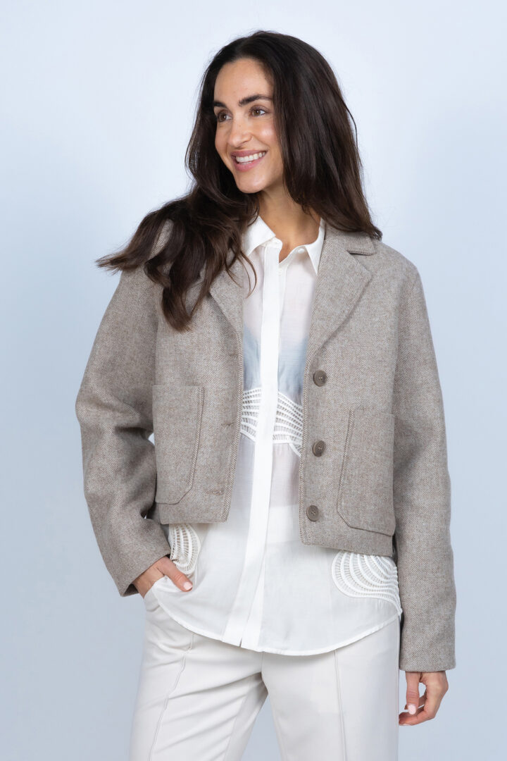 Dunne blouse met ballonmouwen en een opengewerkte print aan de voorkant en op de mouwen