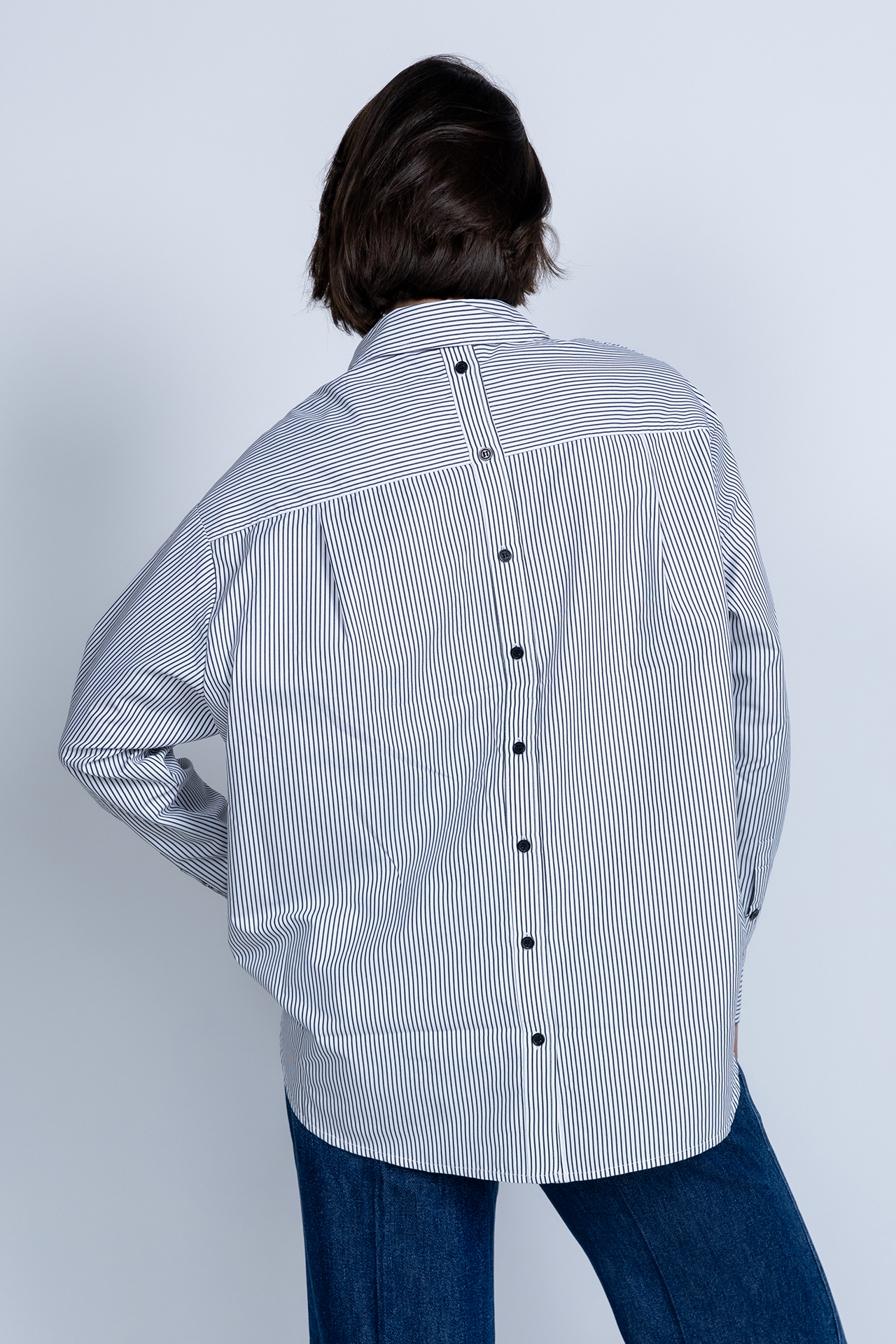 Oversized blouse met knoopjes aan de voor- en achterkant en gekleurde pailletten aan de voorkant