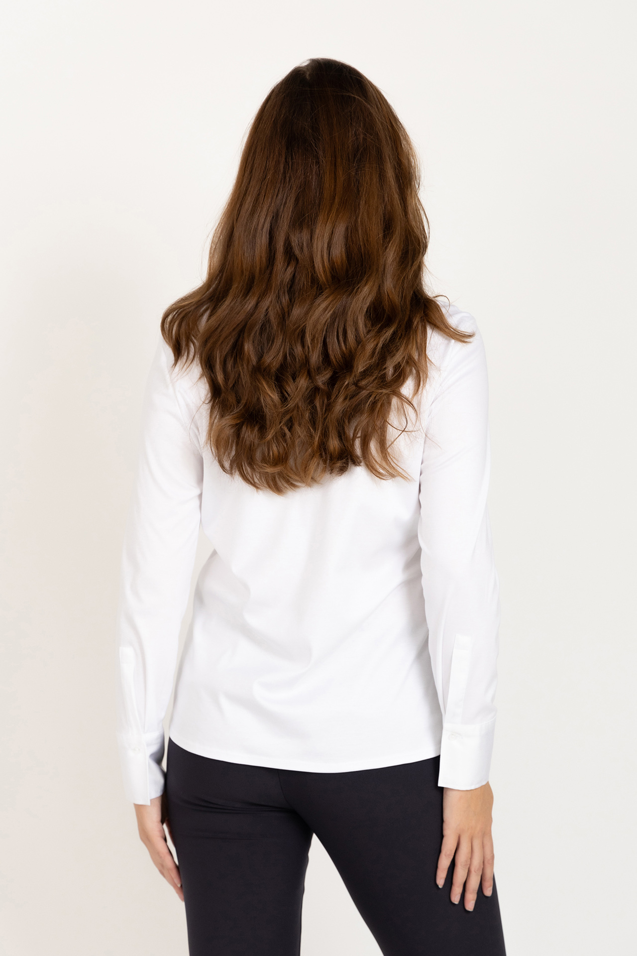 Getailleerde witte katoenen blouse met lange mouwen en een blinde knoopssluititng
