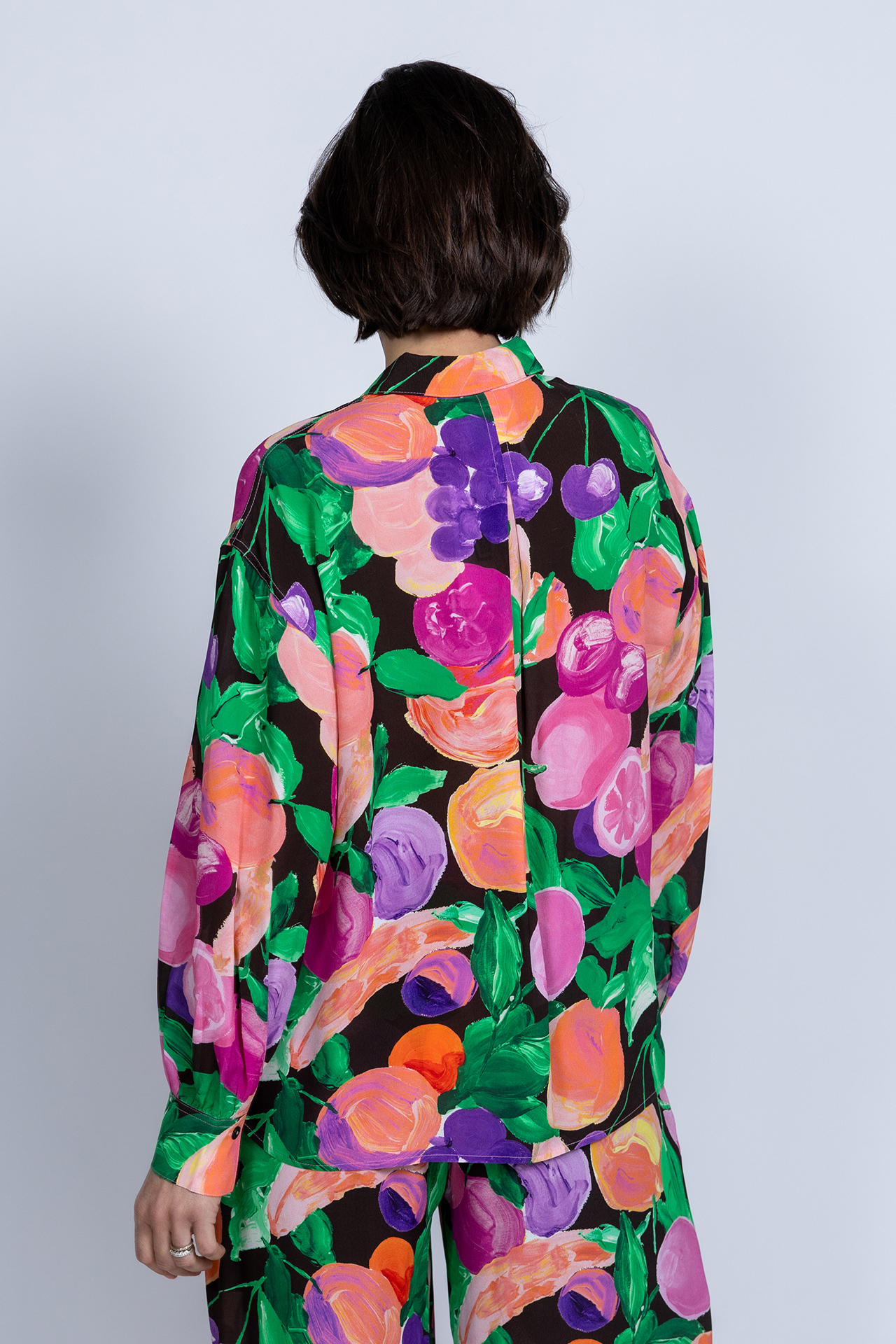 Viscose blouse met lange mouwen, plooi aan de achterkant en een uniek all-over dessin met fruit