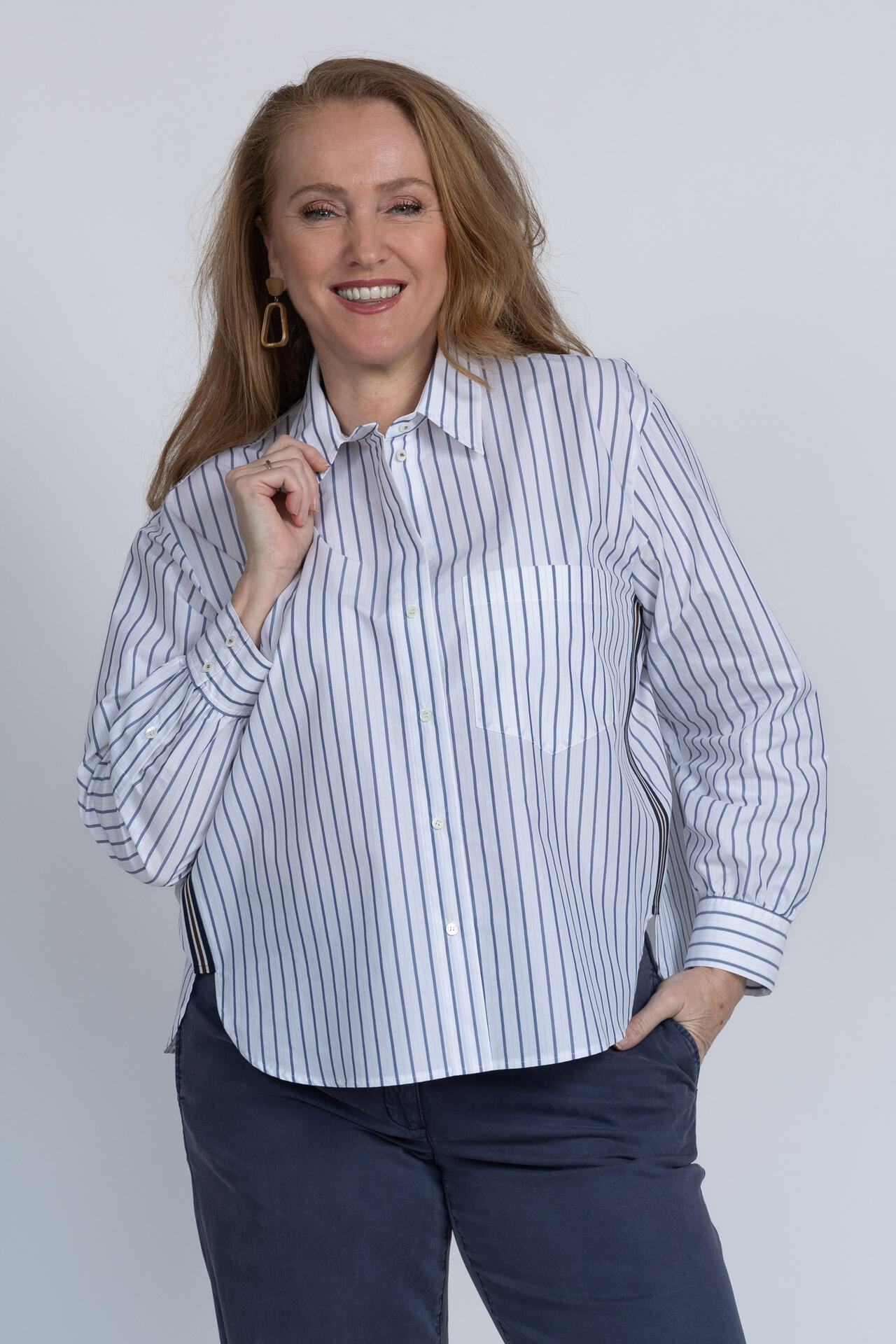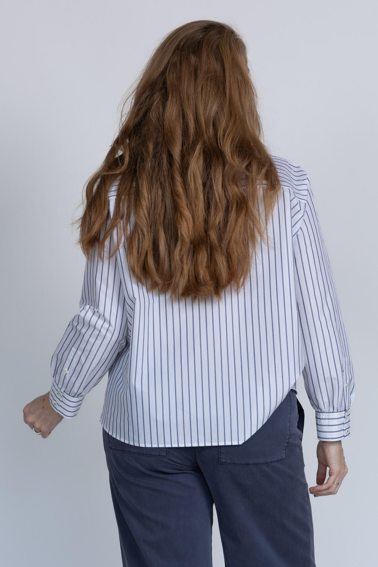 Blouse met lange mouwen, een verticaal streepdessin en borstzak. Hij is gemaakt van katoen en heeft een bies aan de zijkant