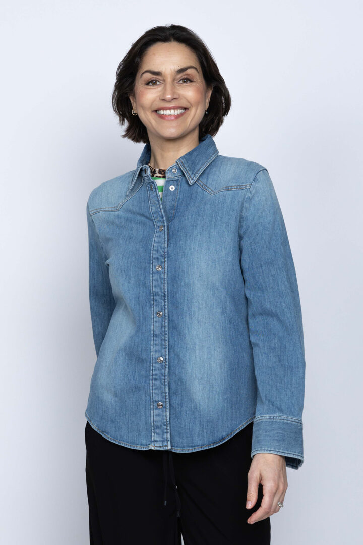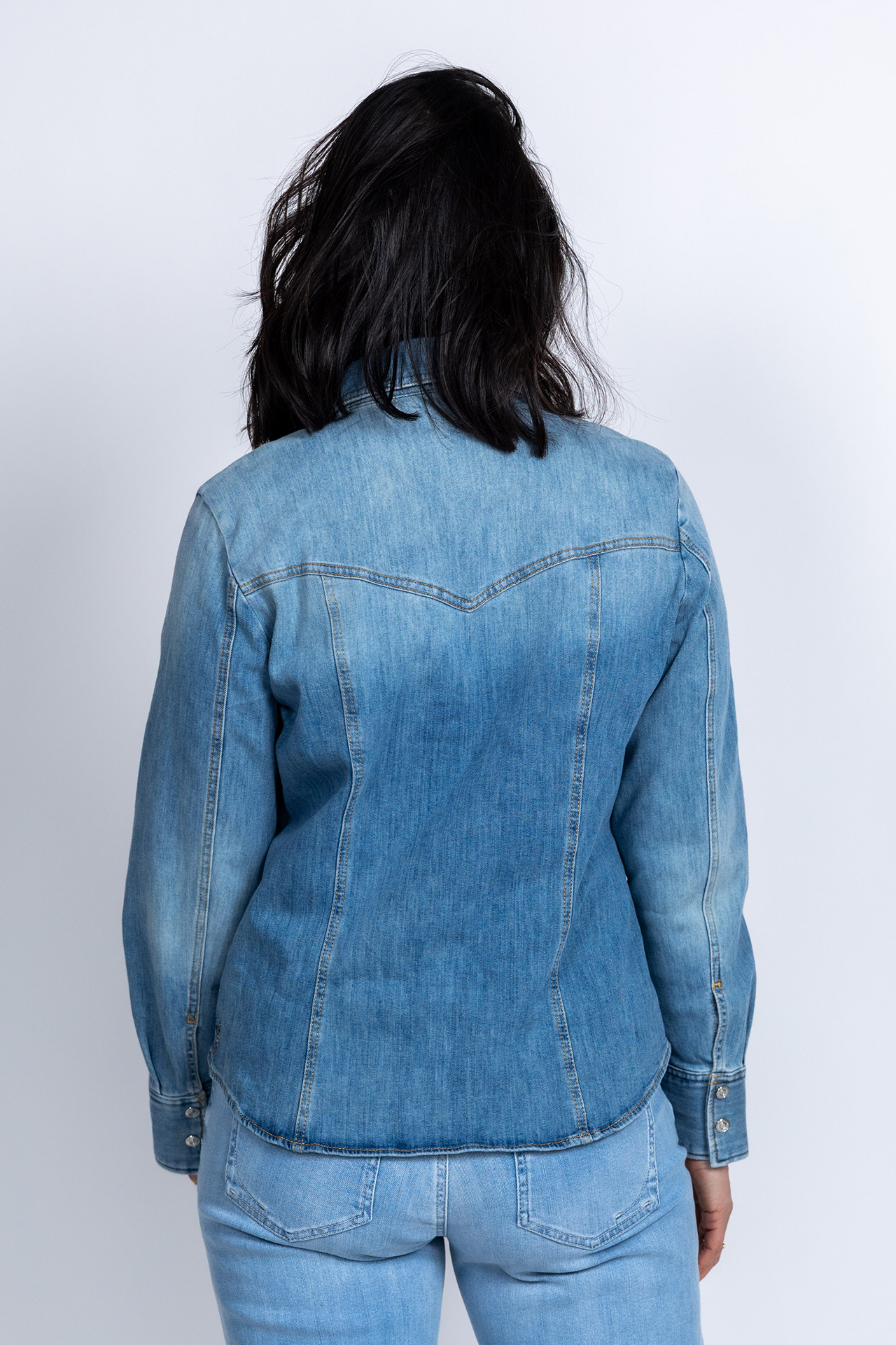 Spijkerblouse met een vintage wassing, drukknopen en stretch in de stof waardoor hij comfortabel zit