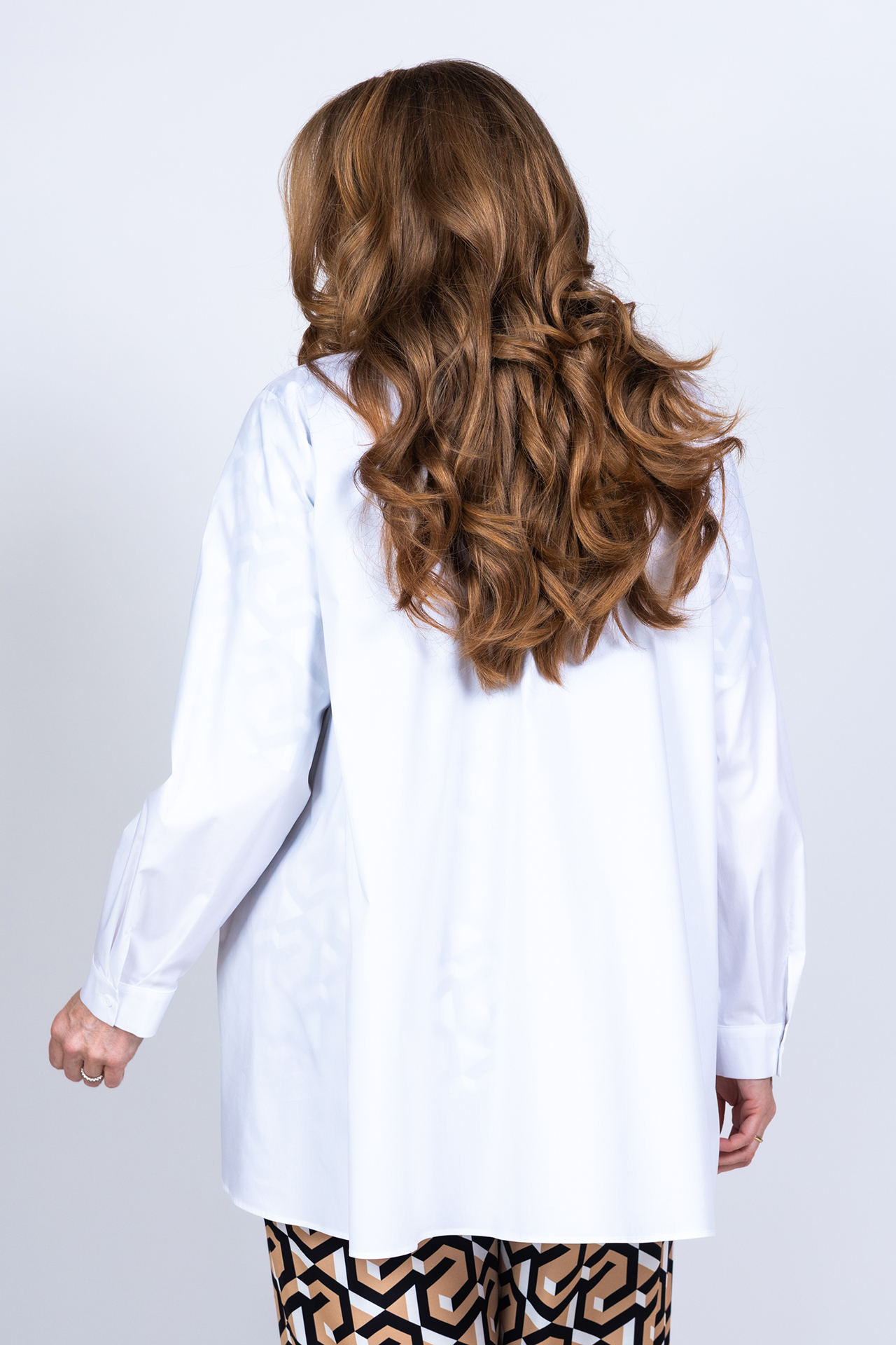 Witte blouse met lange mouwen en stretch in de stof waardoor hij comfortabel zit