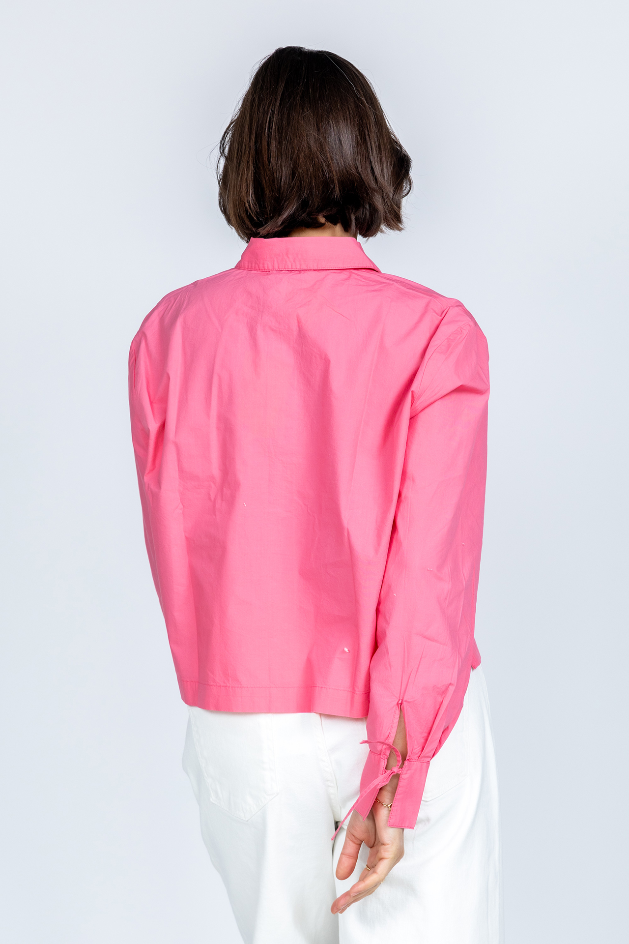 Boxy fit blouse met een borstzakje en strikjes aan de manchetten