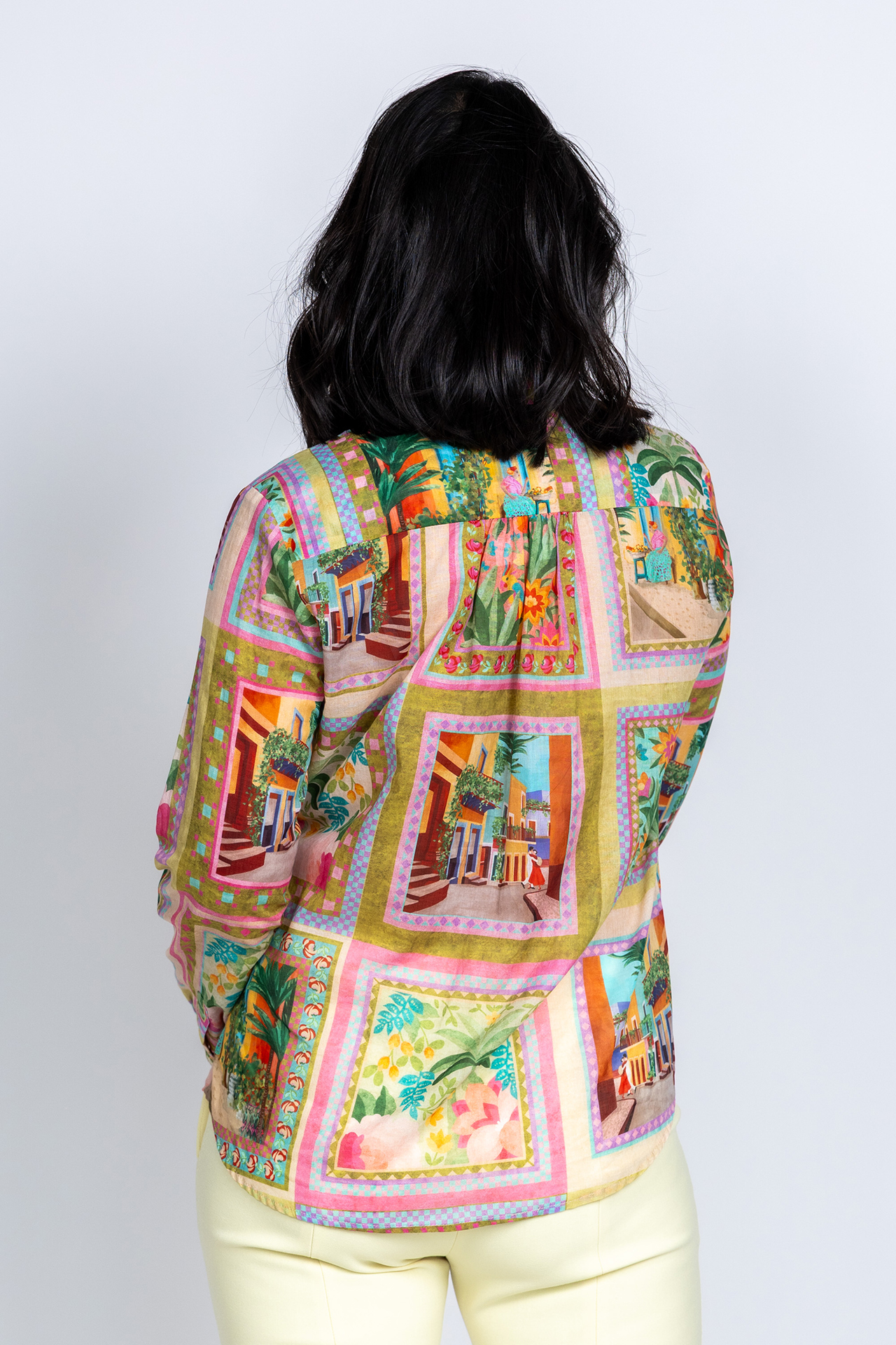 Katoenen multicolour blouse met lange mouwen en een unieke print