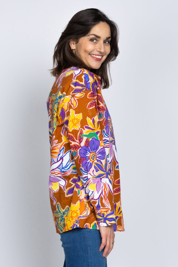 Kleurrijke blouse met lange mouwen en een unieke bloemenprint