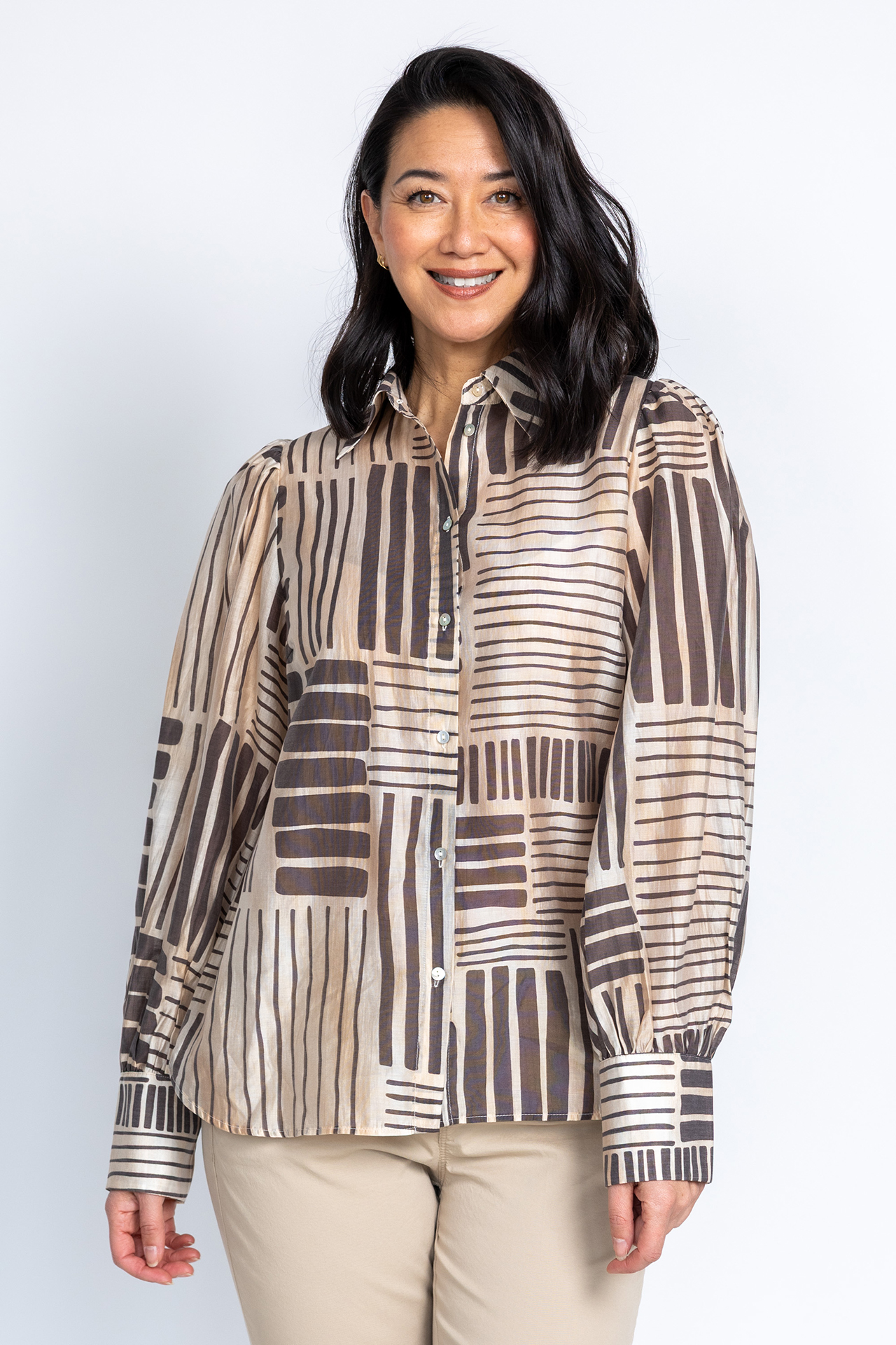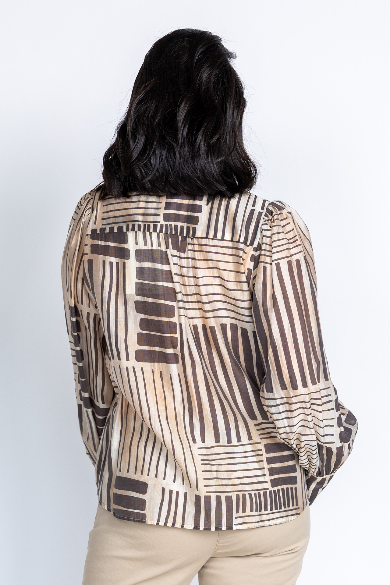 Dunne blouse met pofmouwen en een all-over dessin met verschillende streepjes