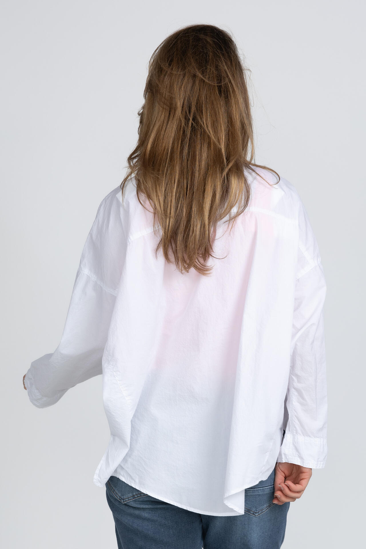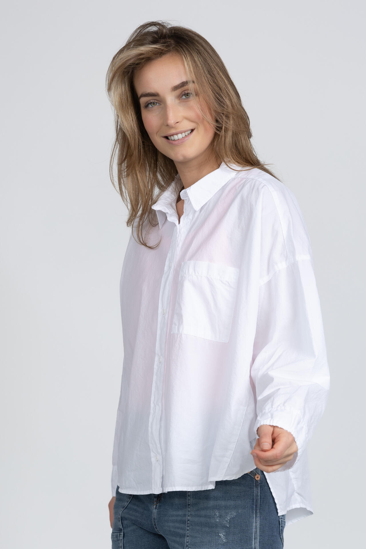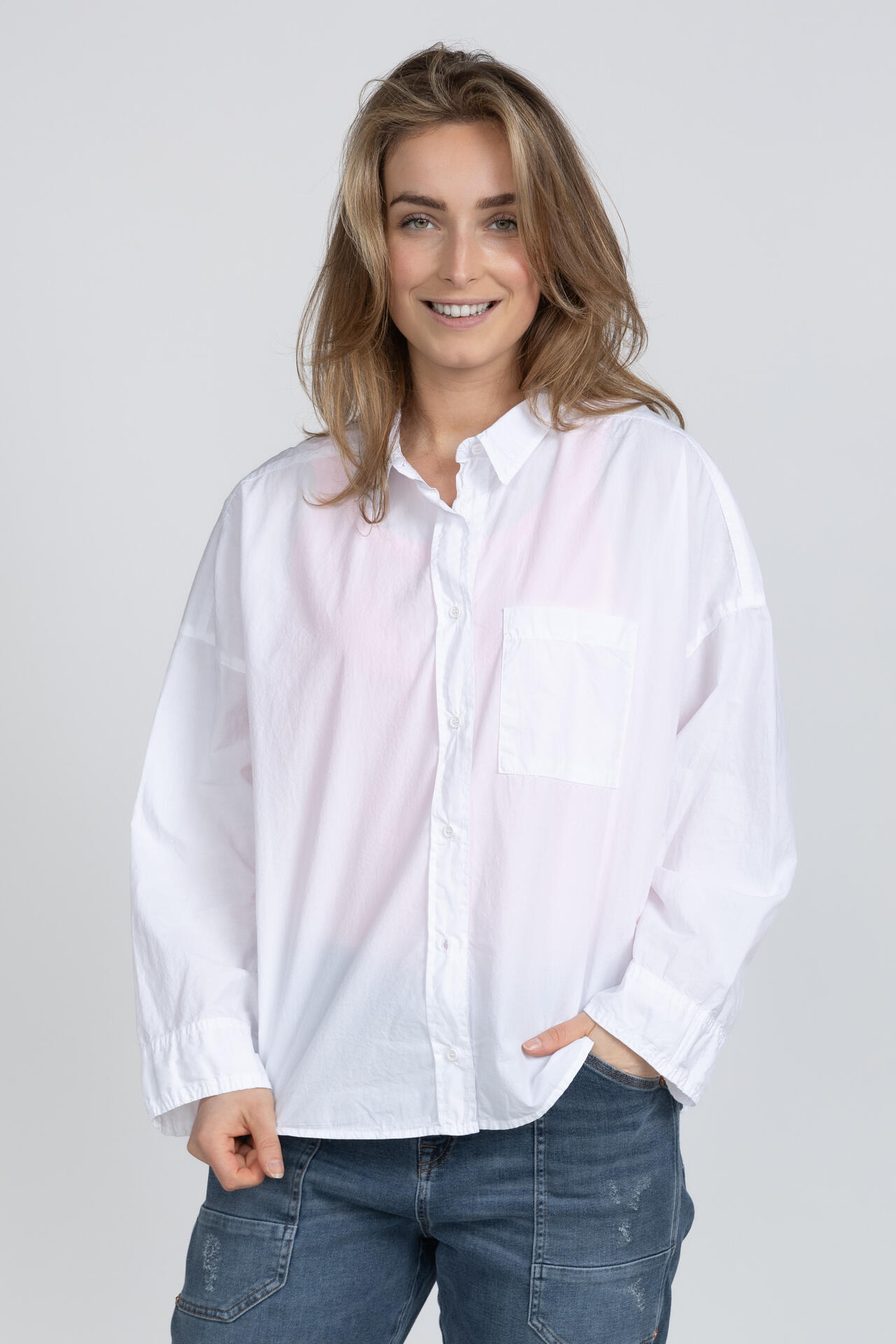 Oversized blouse met lange mouwen, een borstzak en de achterkant is langer