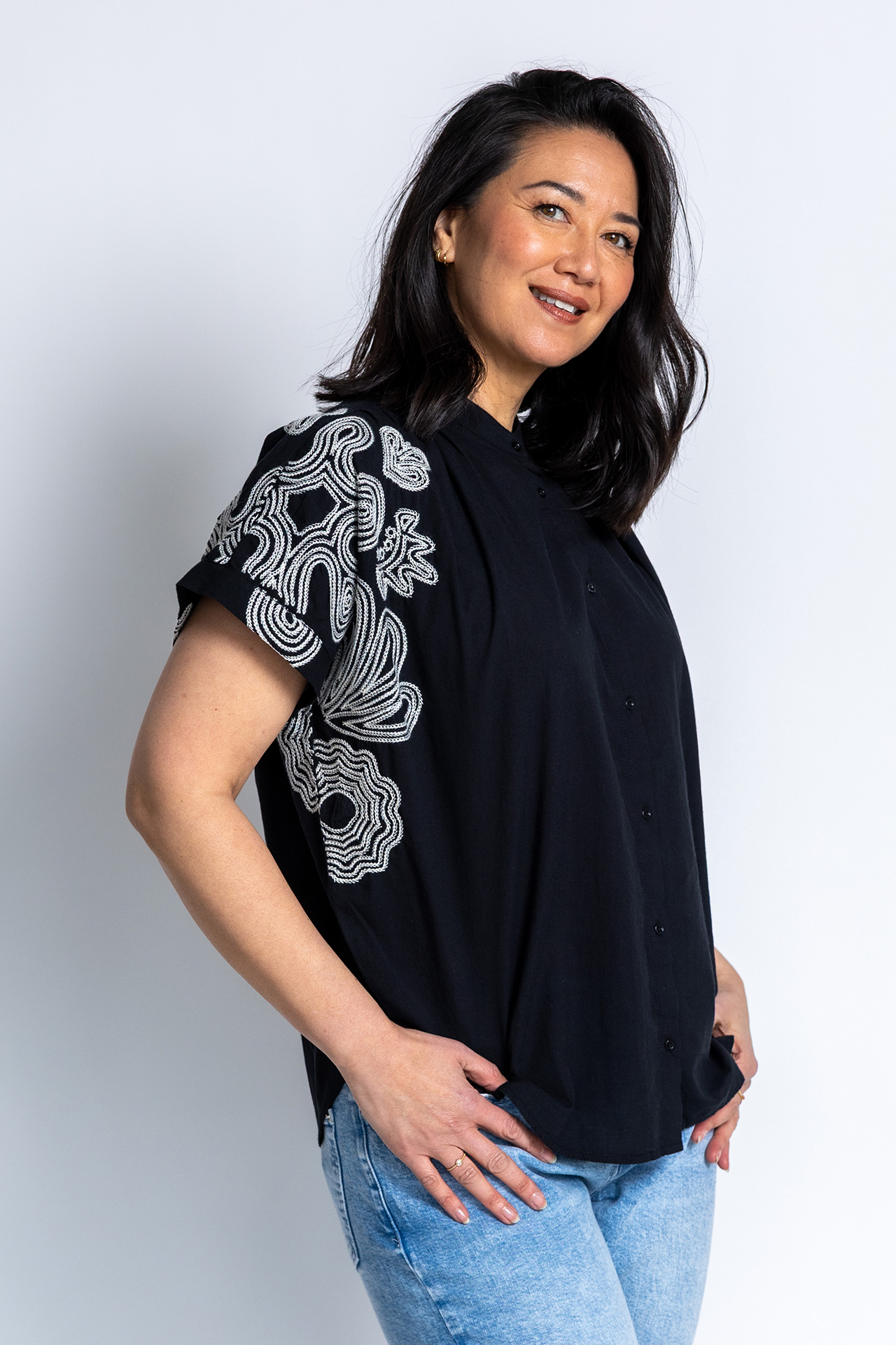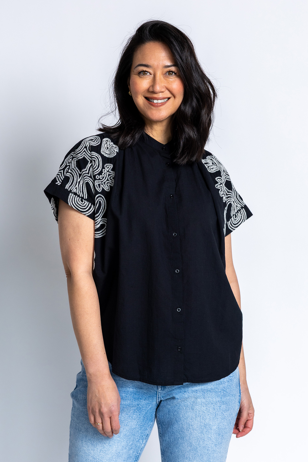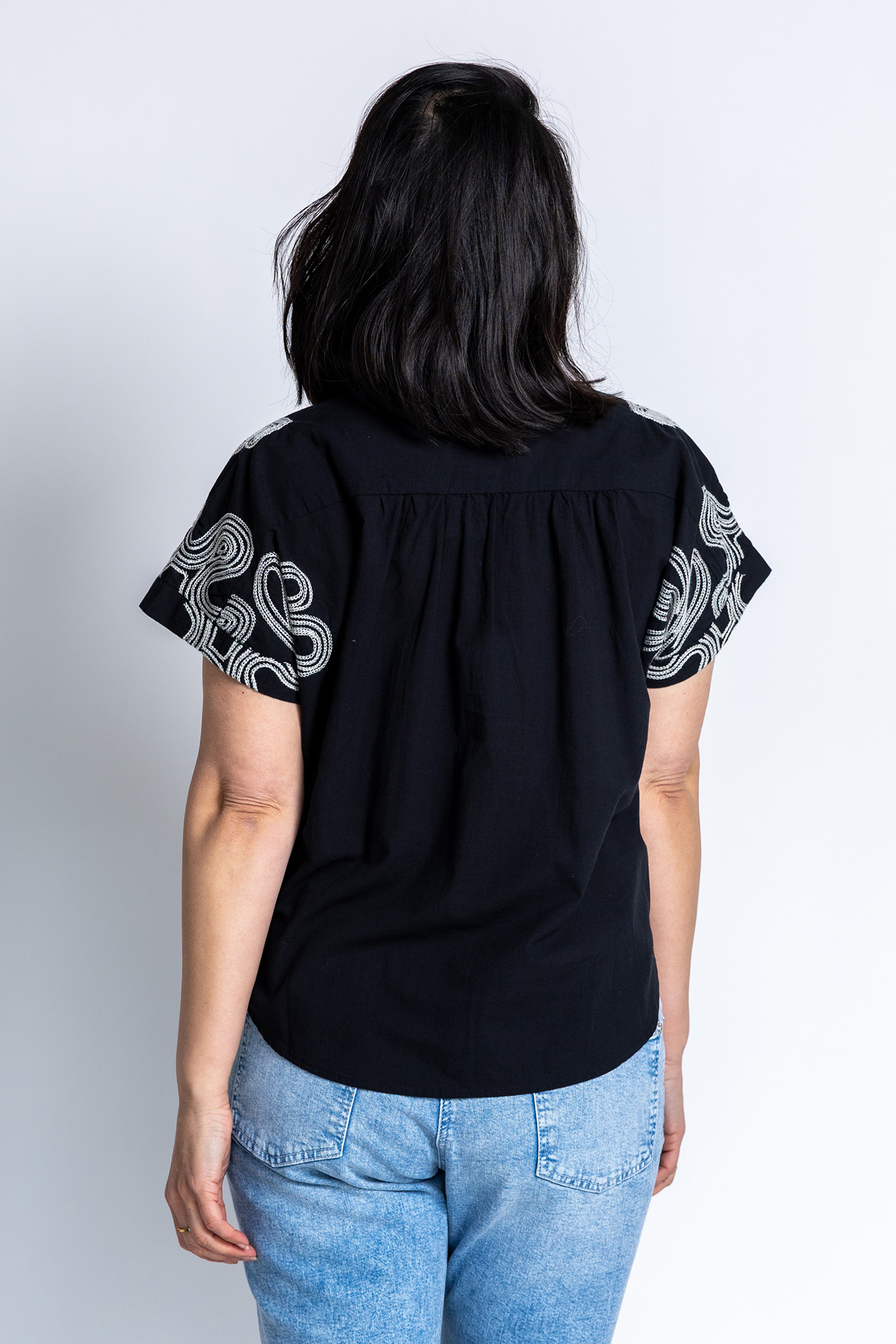 Loose fit blouse met aangeknipte mouwen, een ronde hals en borduursels op de mouwen