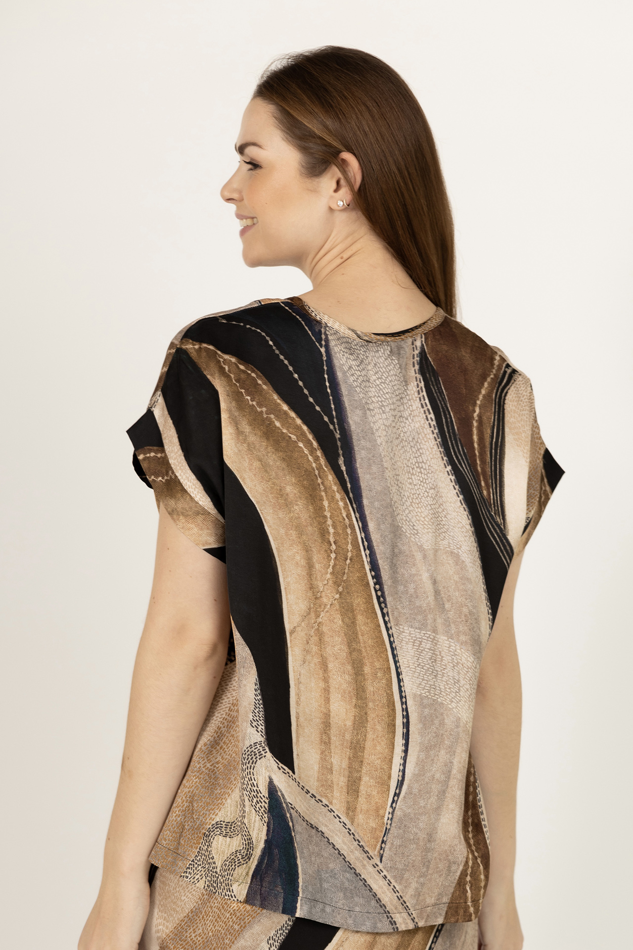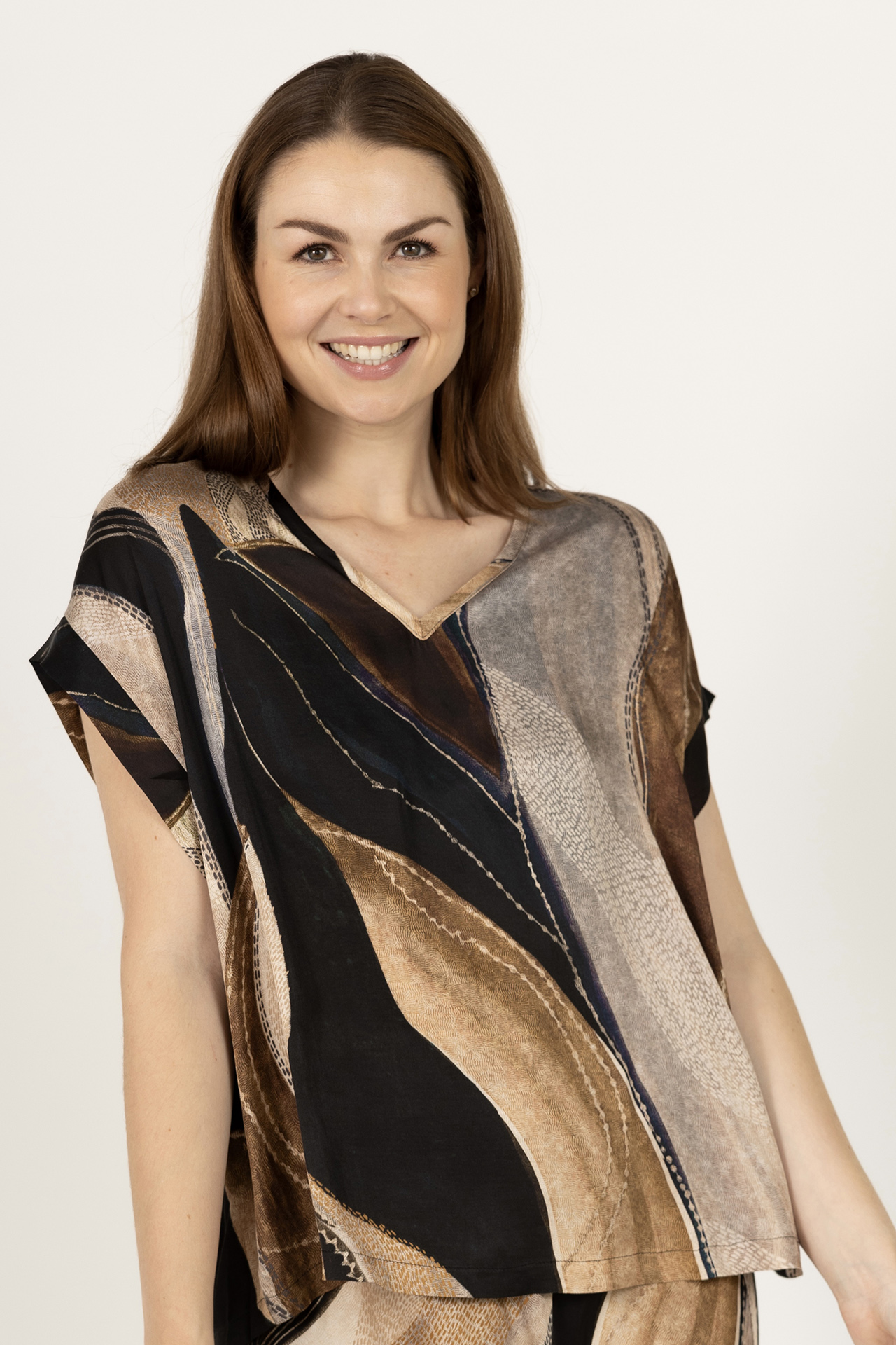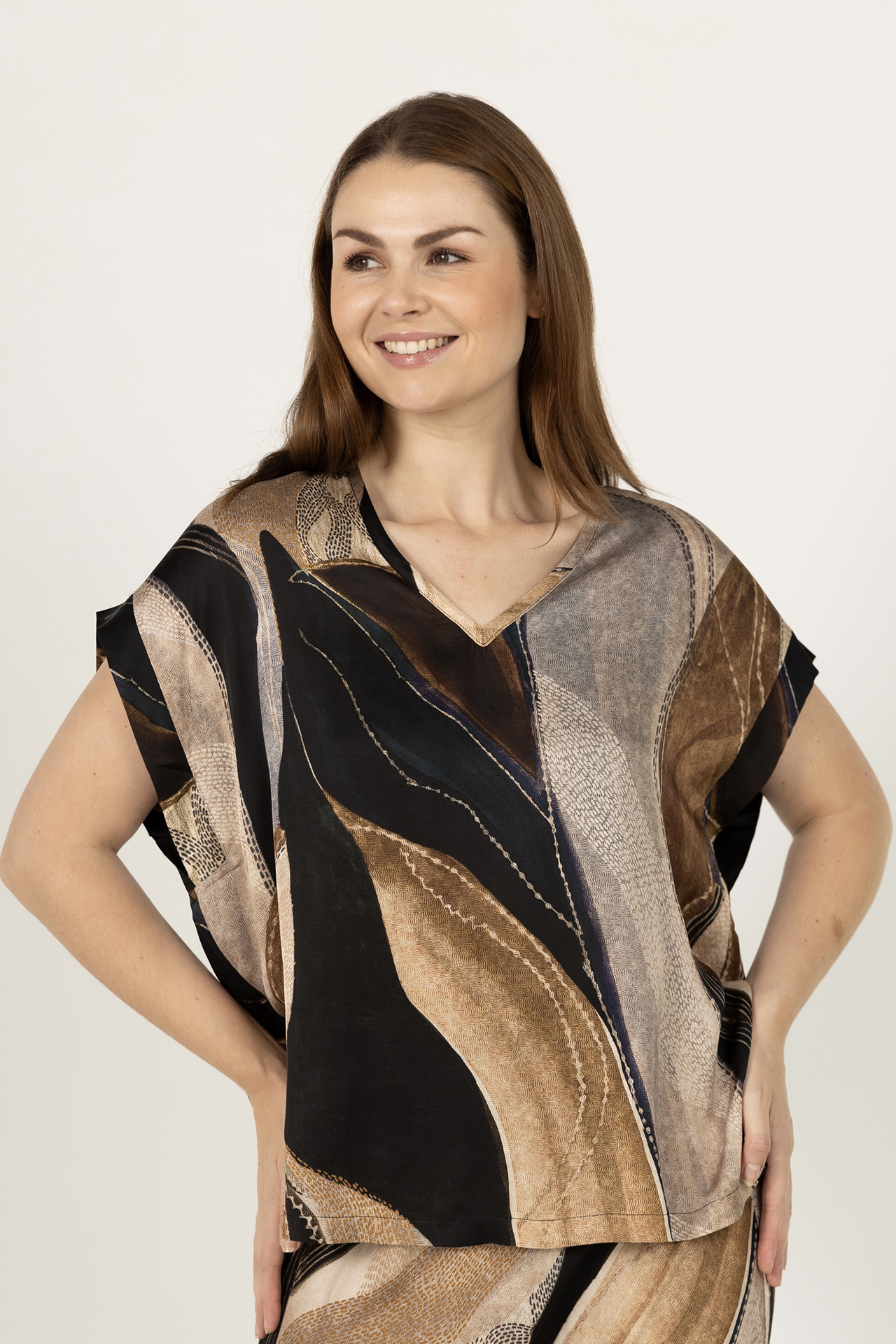 Blouse met een V-hals, loose fit en een print in warme herfsttinten