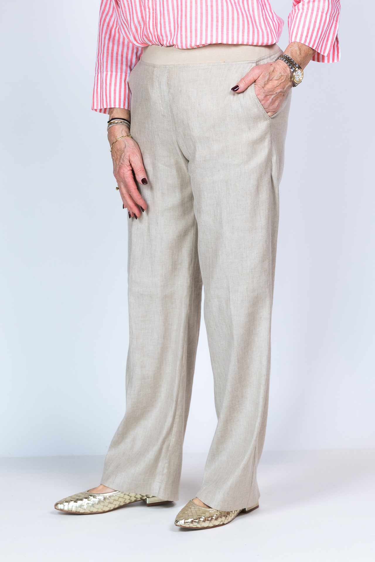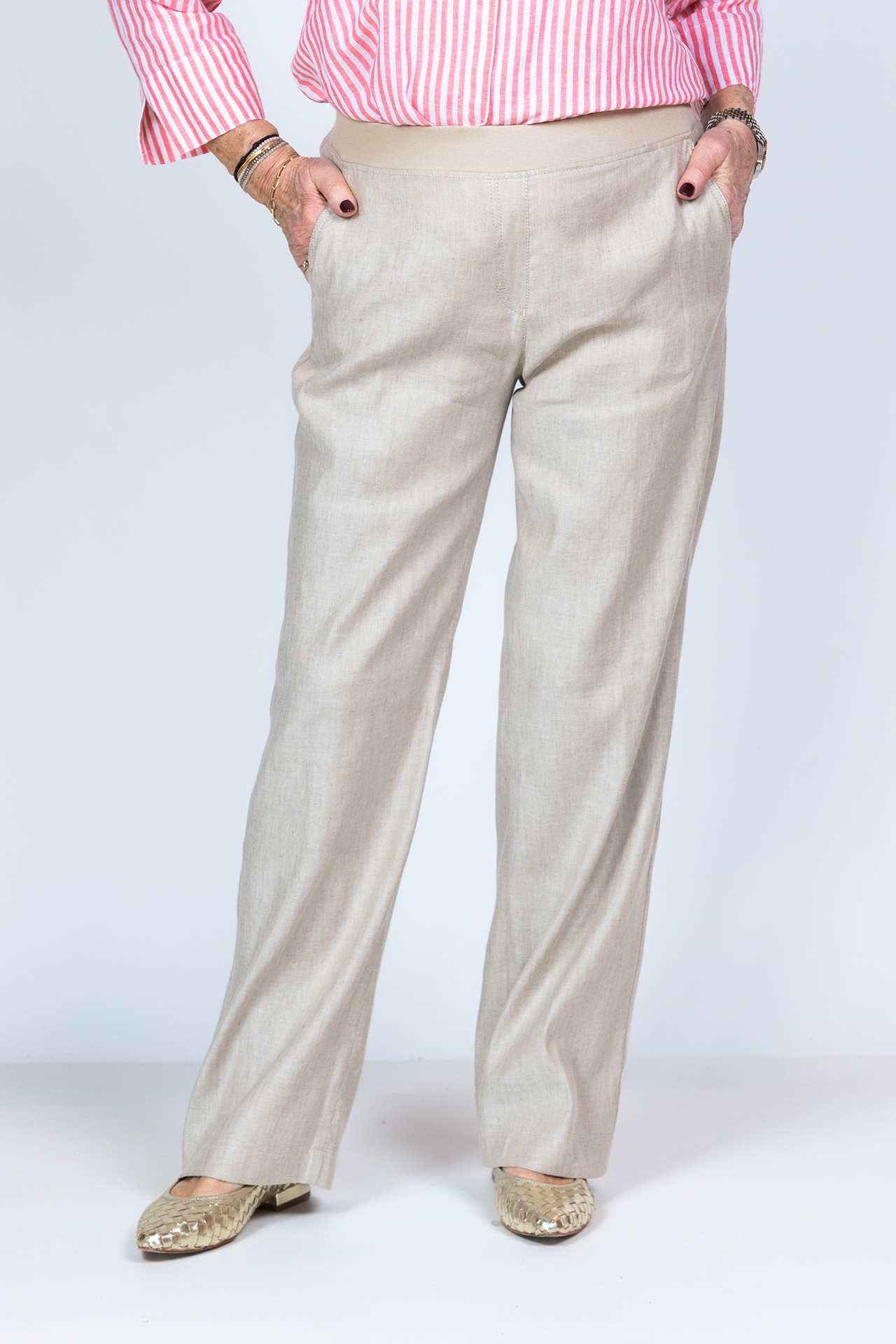 Linnenmix broek met een elastische band in de taille, steekzakken aan de voorkant en fake zakken aan de achterkant