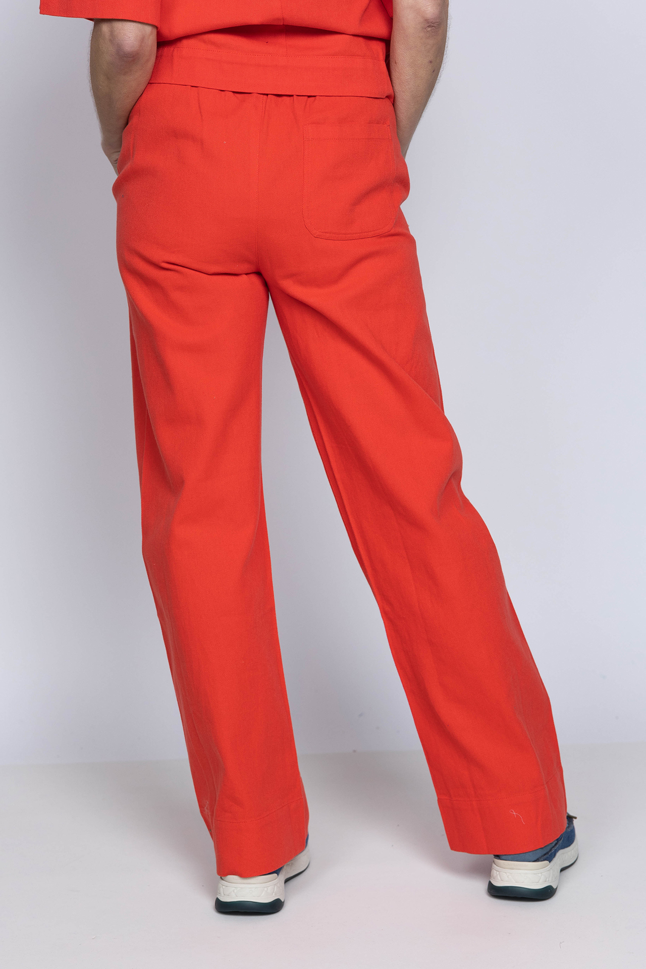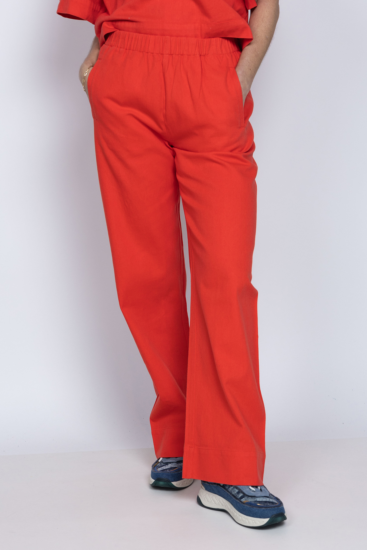 Katoenen broek met een elastische band in de taille, steekzakken aan de voorkant en een opgestikte zak aan de achterkant