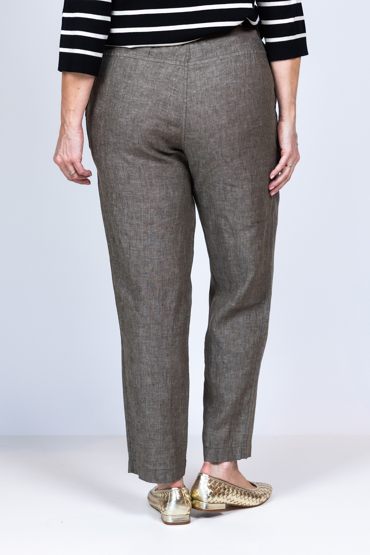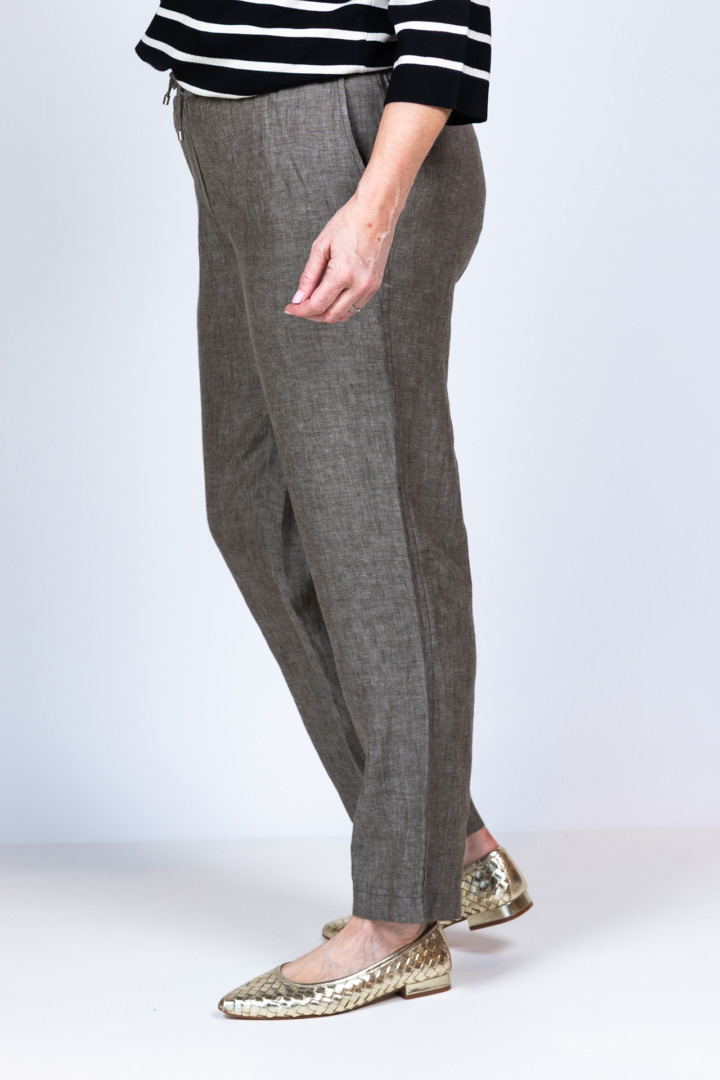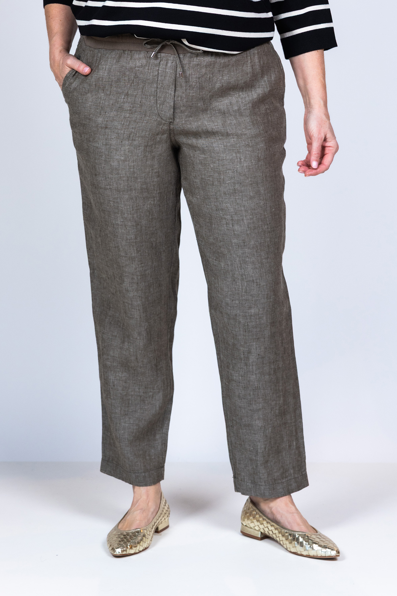 Linnen broek met een elastische band met koordje in de taille en hij heeft steekzakken