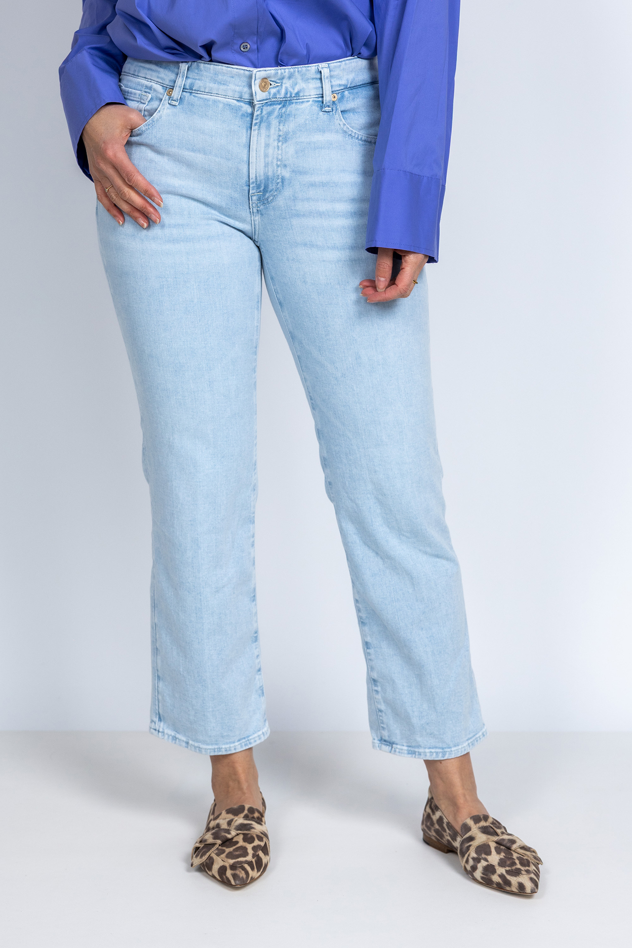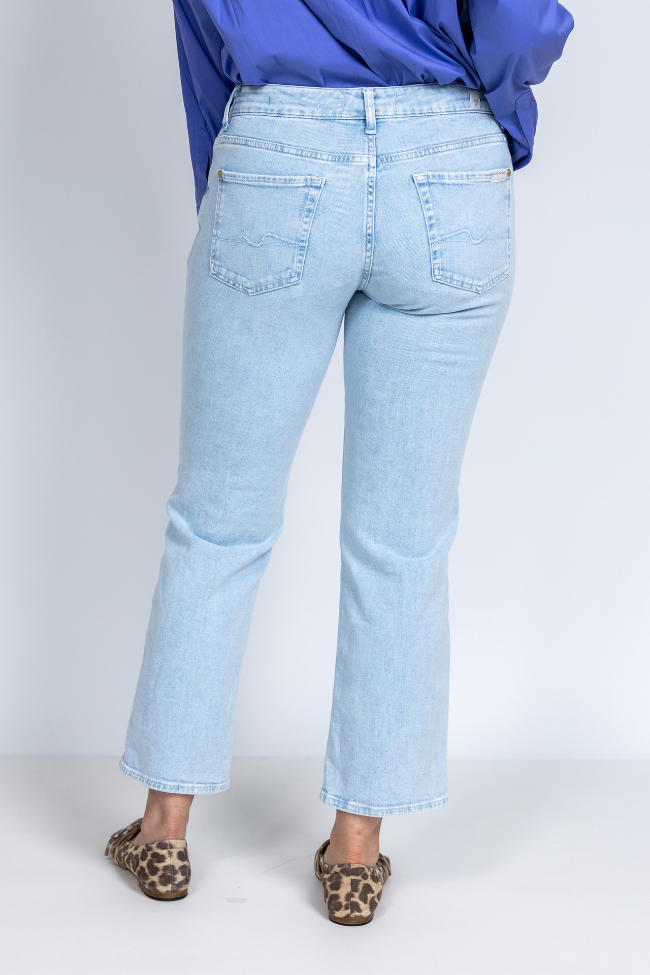 7/8 jeans met een knoop- en ritssluiting en lusjes in de band voor een ceintuur. Hij heeft steekzakken aan de voorkant, opgestikte zakken aan de achterkant en stretch in de stof waardoor hij comfortabel draagt