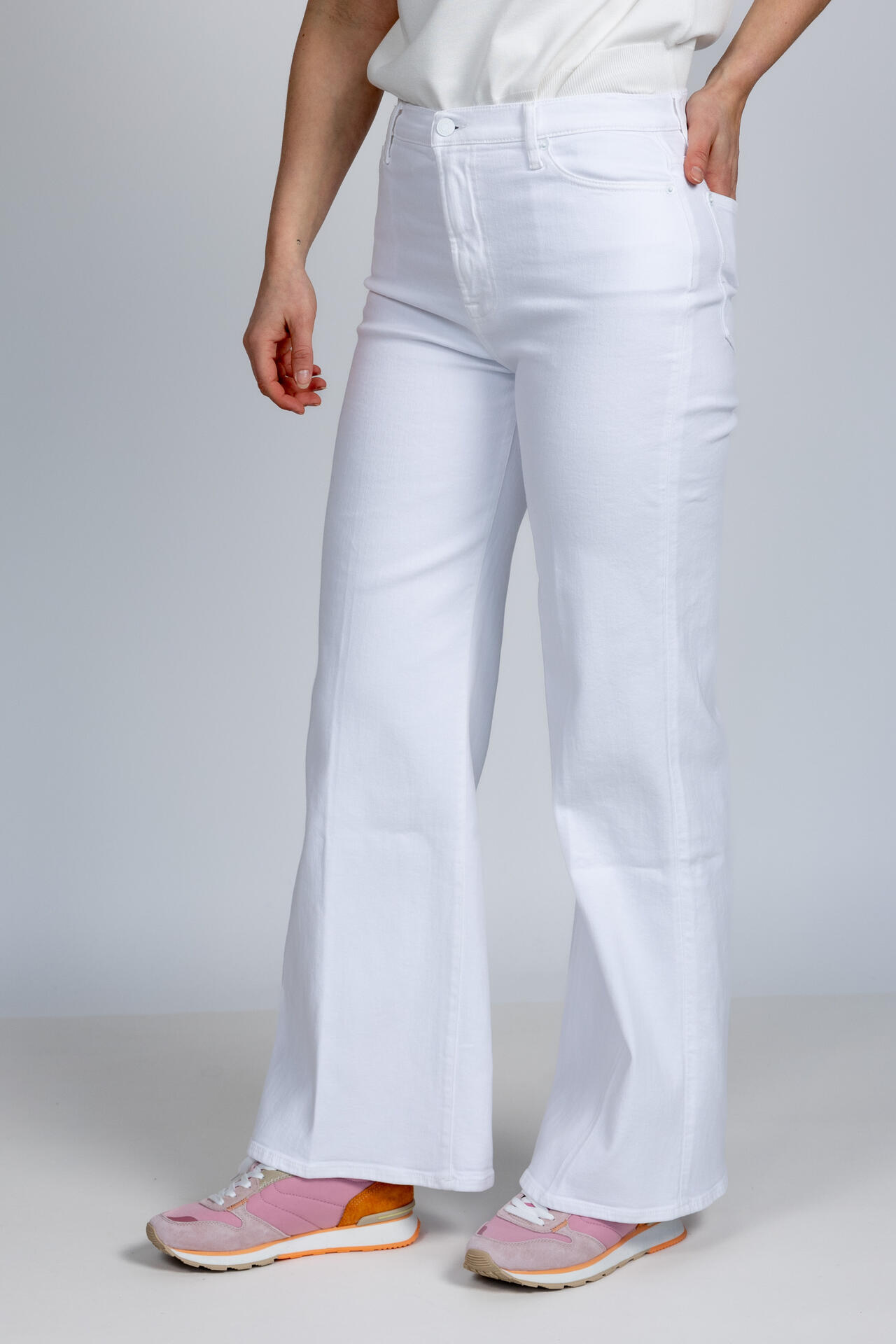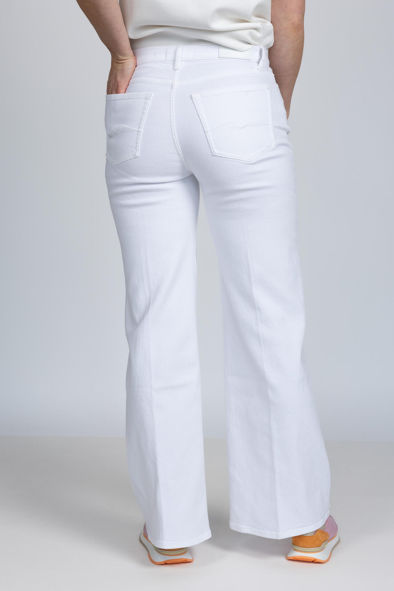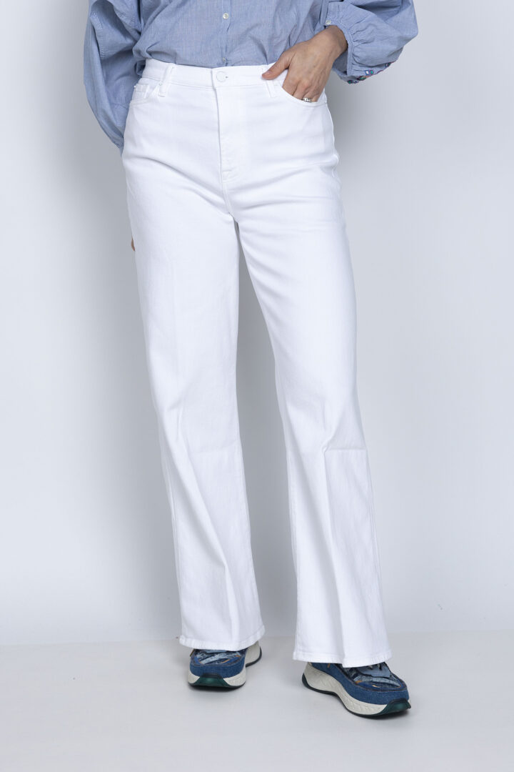 5-pocket jeans met een hoge taille, knoop- en ritssluiting en lusjes in de band voor een ceintuur. Hij heeft wijde pijpen en stretch in de stof waardoor hij comfortabel zit