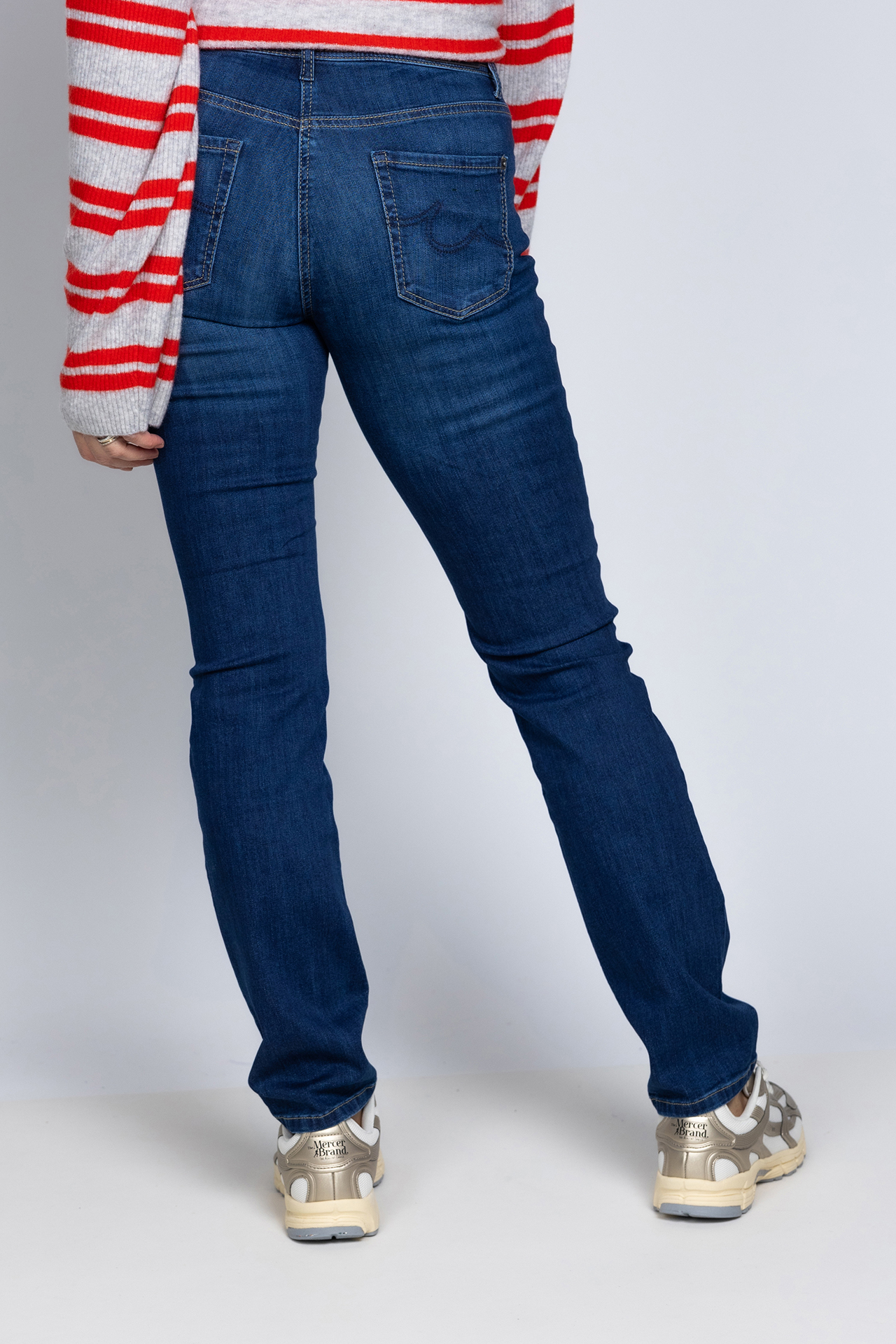 Regular fit jeans met een knoop- en ritssluiting en lusjes in de band voor een ceintuur. Hij heeft steekzakken aan de voorkant, opgestikte zakken aan de achterkant en stretch in de stof waardoor hij comfortabel zit