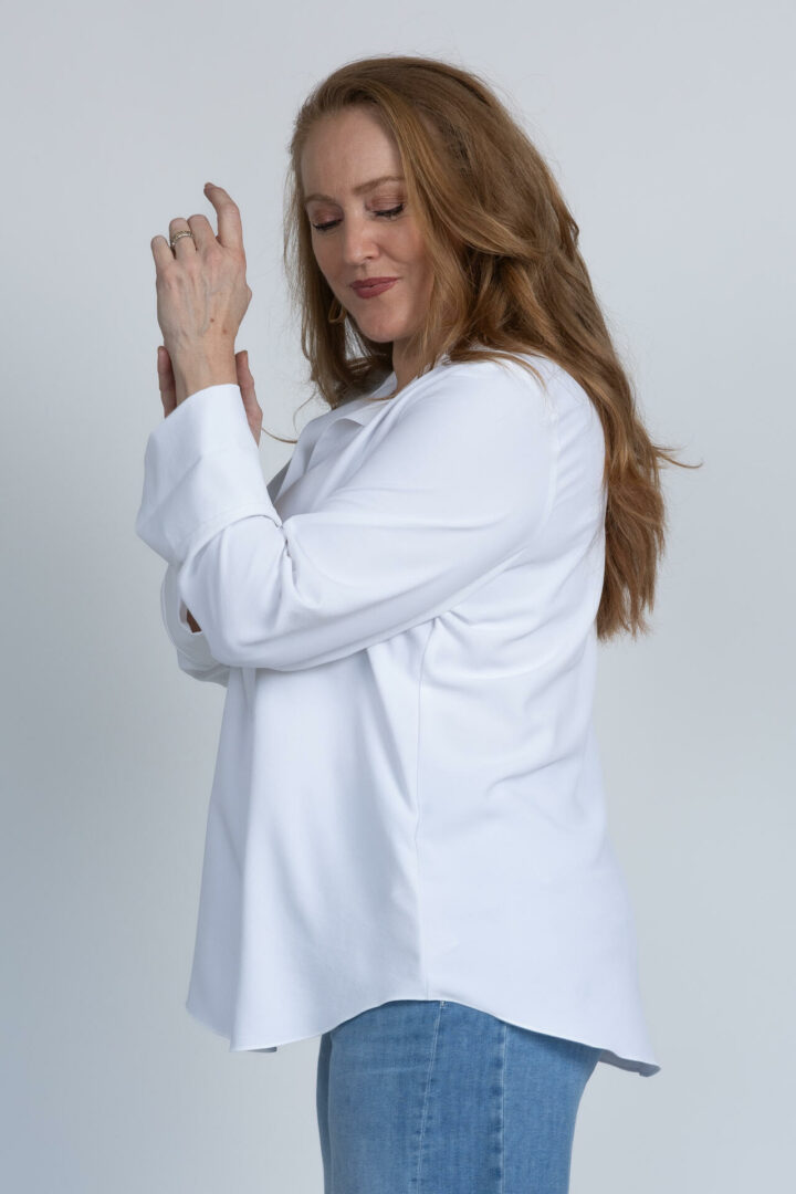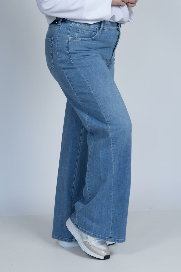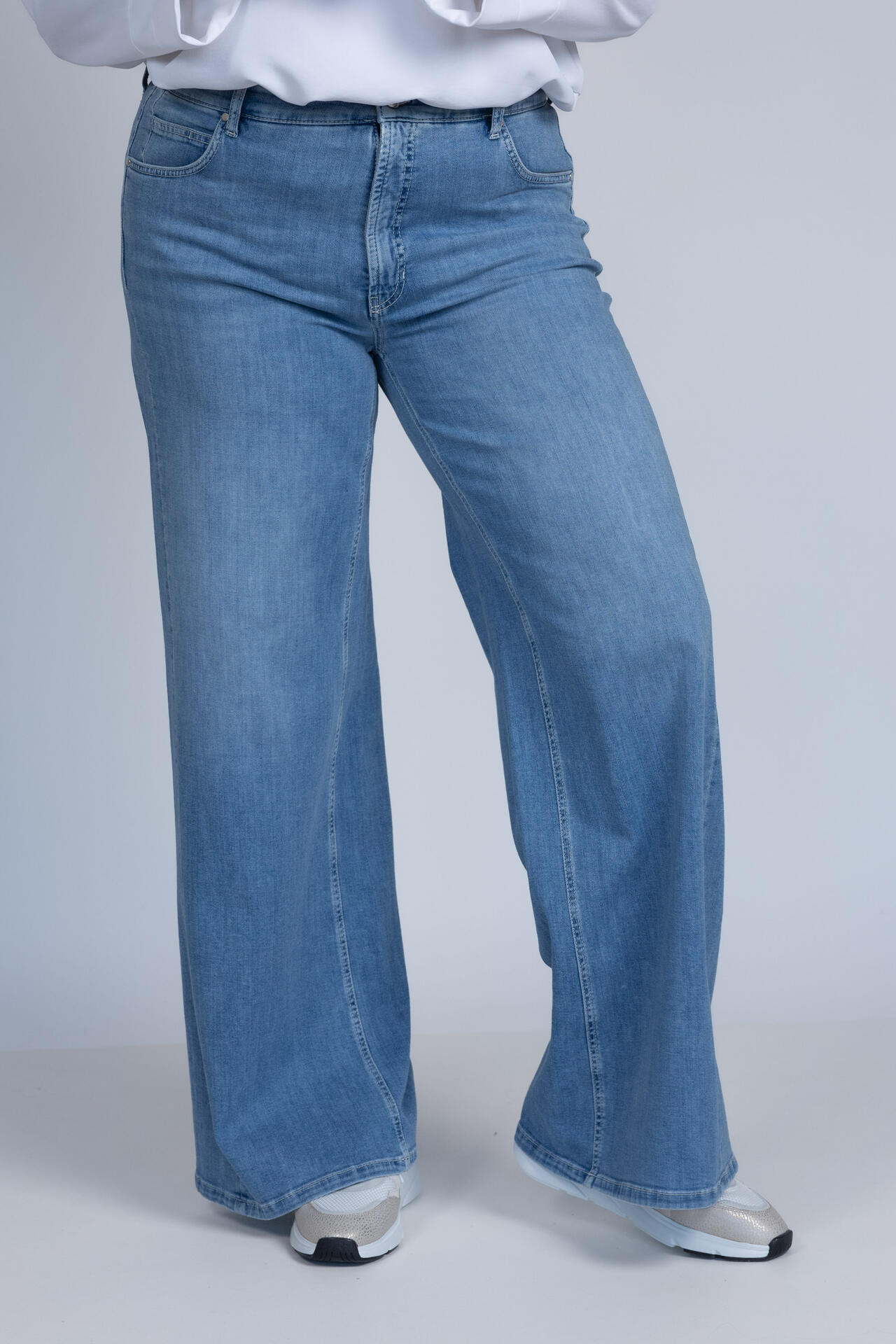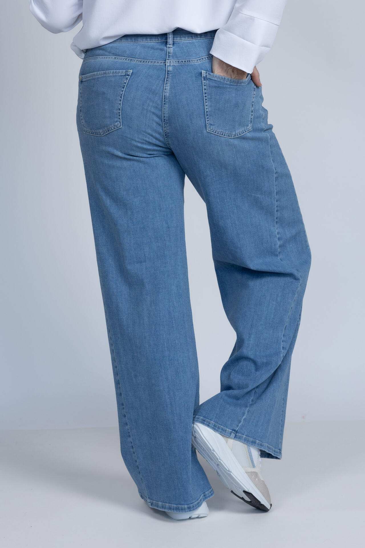 Soepel vallende jeans met wijde pijpen, een knoop- en ritssluiting en lusjes in de band voor een ceintuur. Hij heeft steekzakken aan de voorkant, opgestikte zakken aan de achterkant en stretch in de stof waardoor hij comfortabel zit