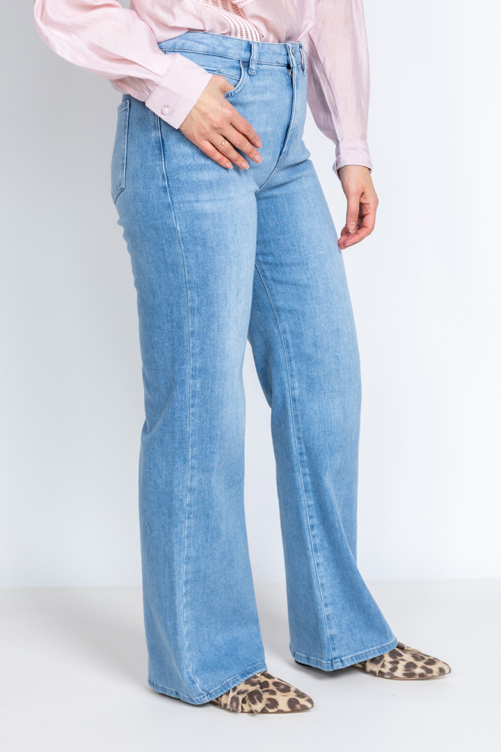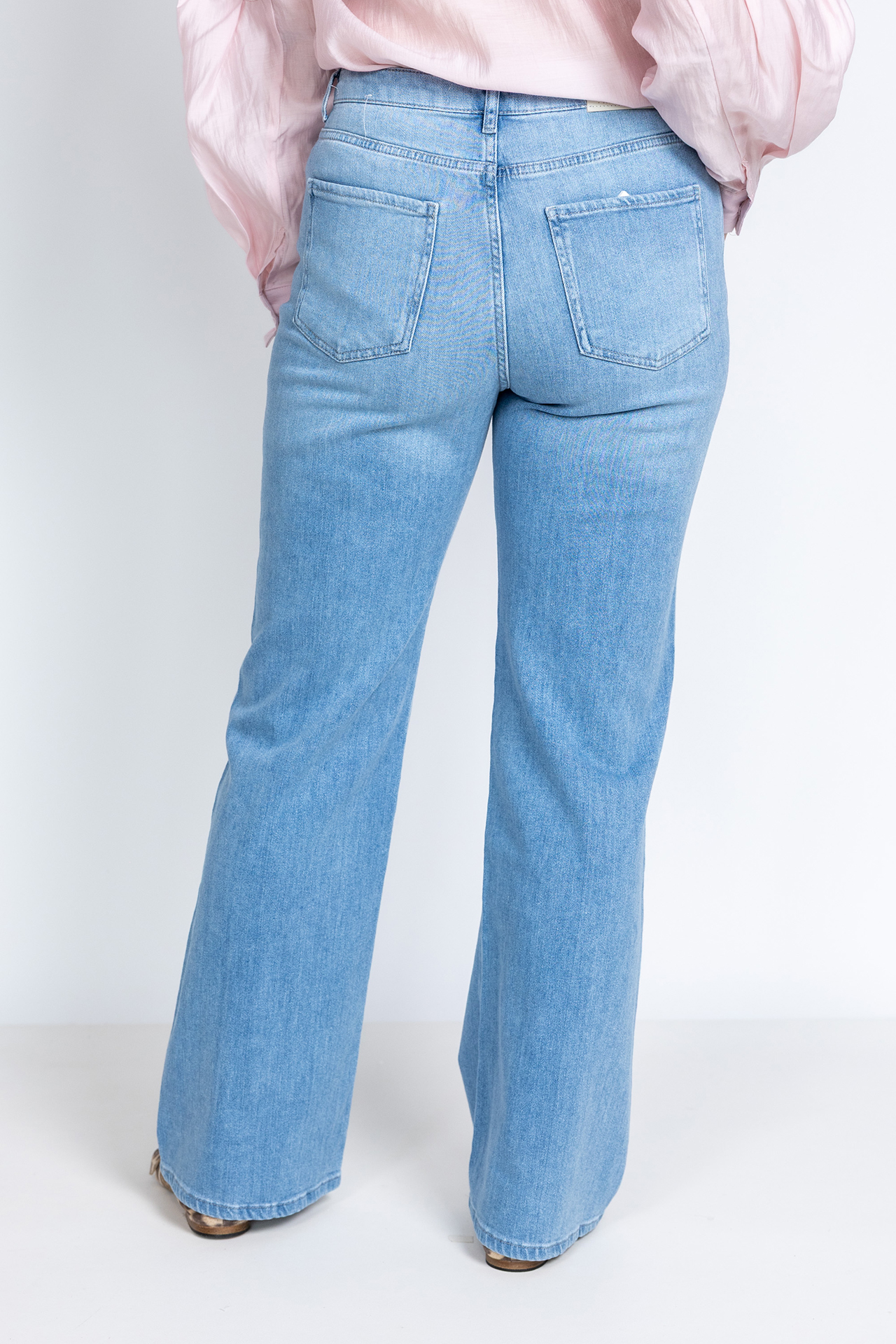 5-pocket jeans met wijde pijpen en een klein beetje stretch in de stof waardoor hij comfortabel draagt