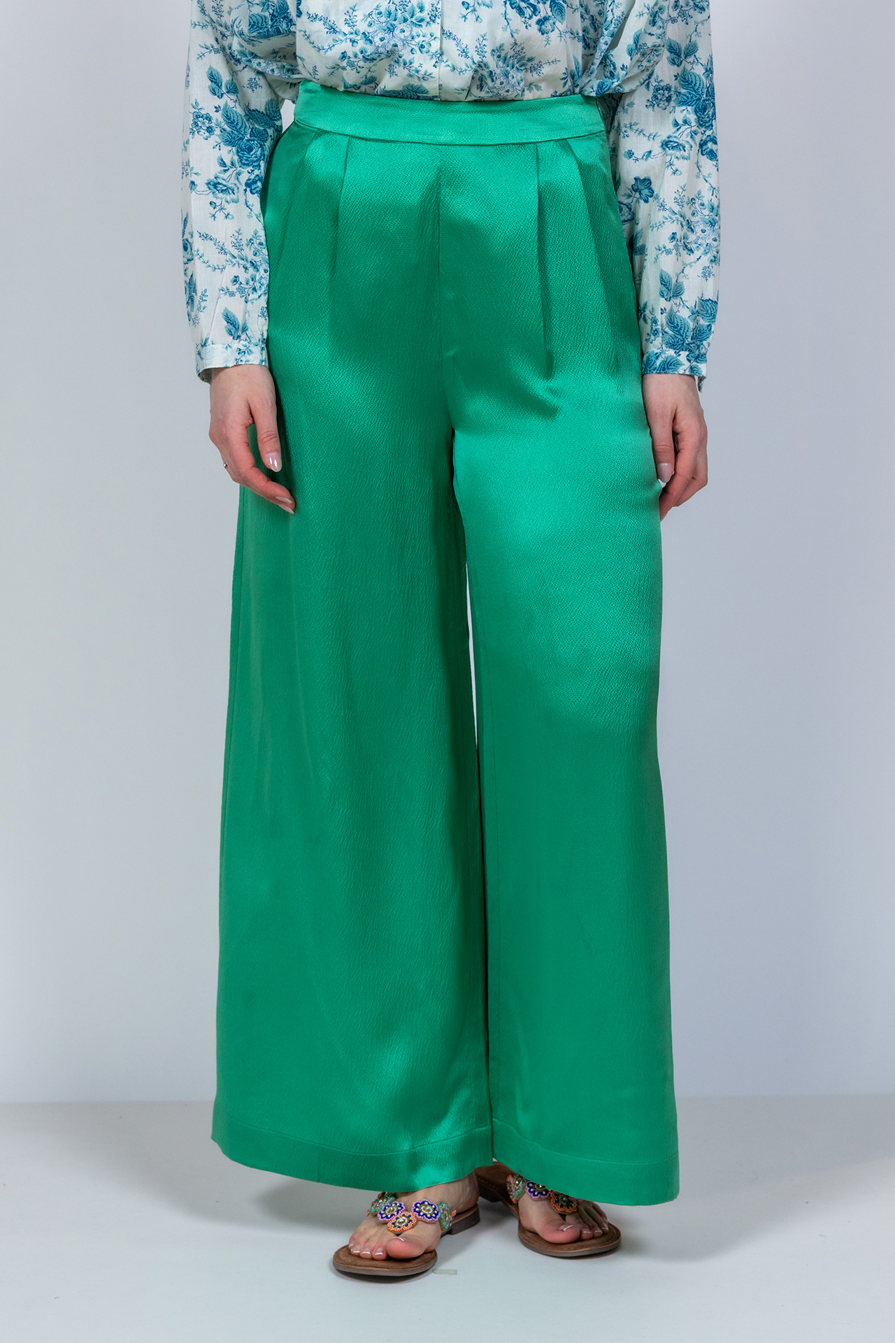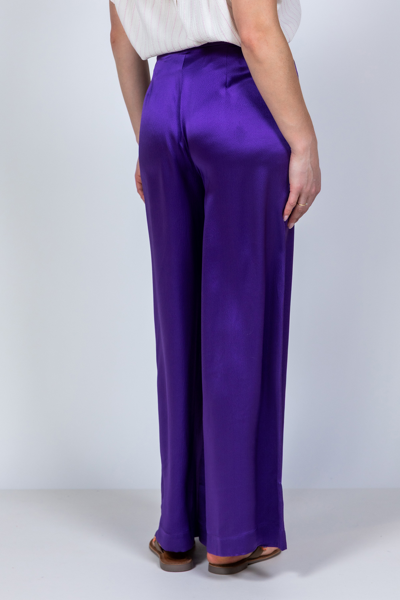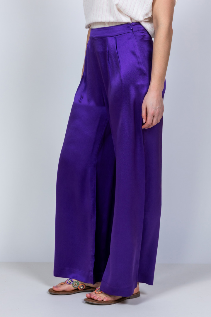 Zijde broek met wijde pijpen, bandplooi en een rits aan de zijkant