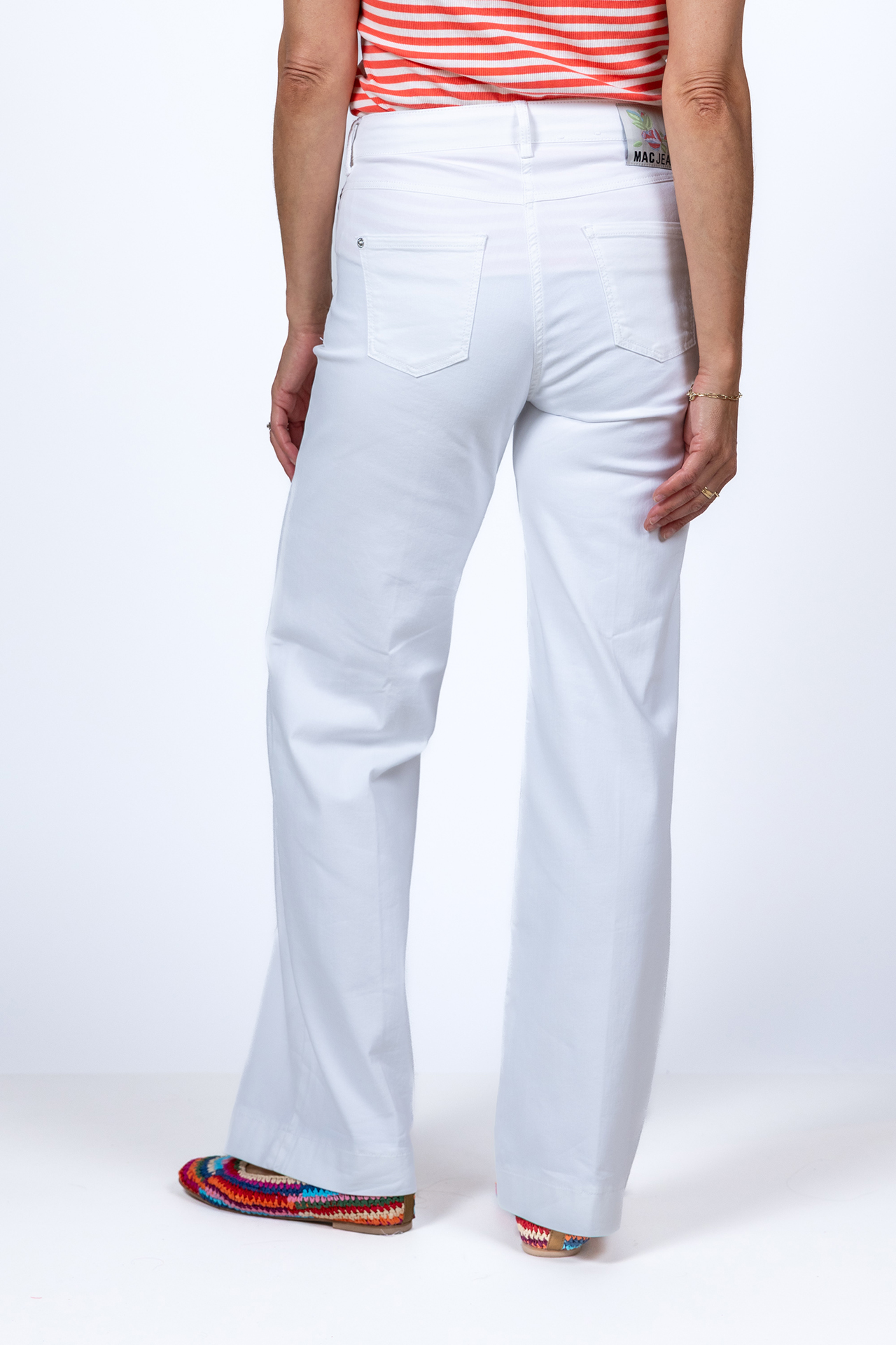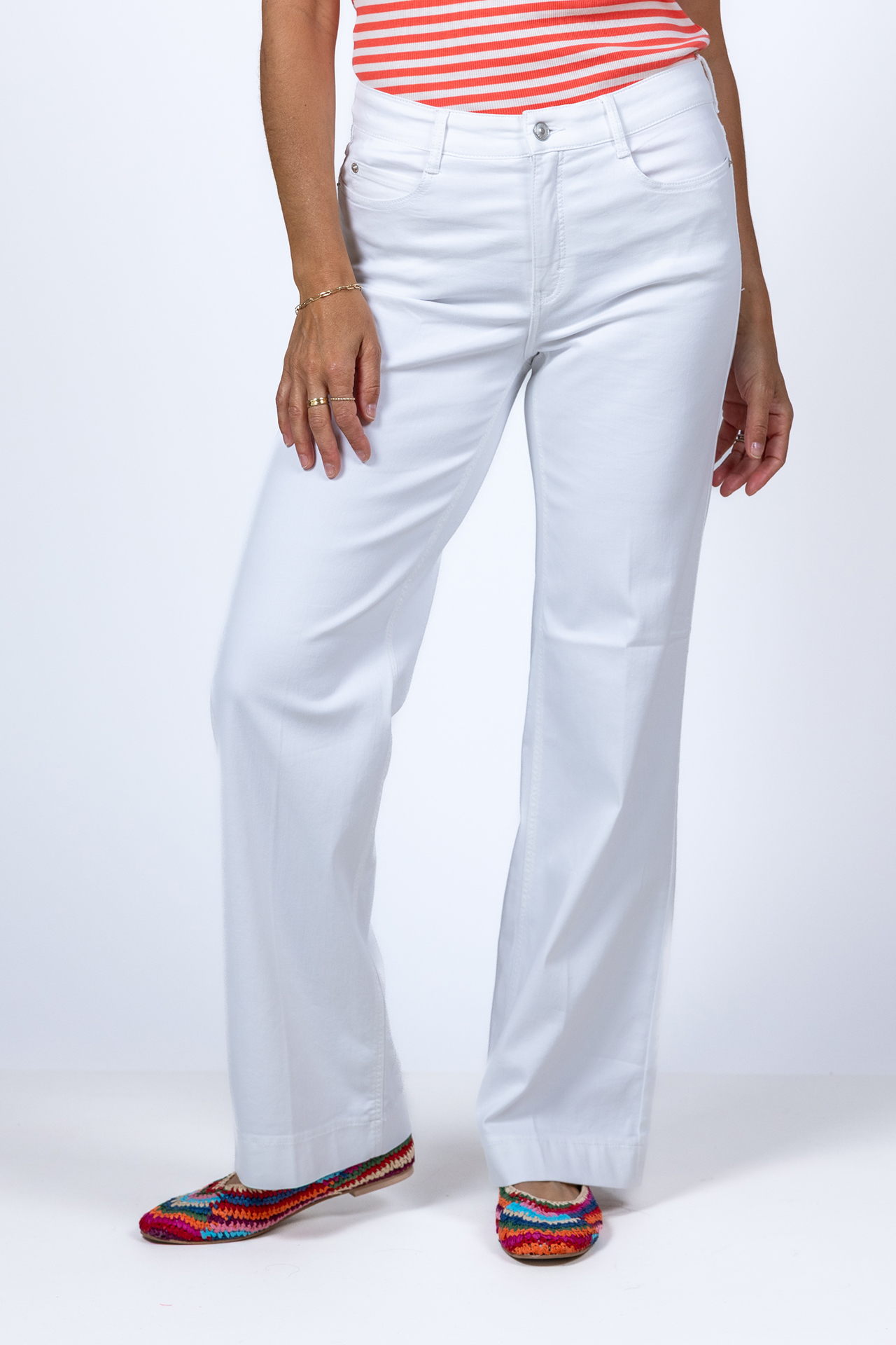 Broek met een knoop- en ritssluiting en lusjes in de band voor een ceintuur. Hij heeft steekzakken aan de voorkant, opgestikte zakken aan de achterkant en stretch in de stof waardoor hij comfortabel draagt