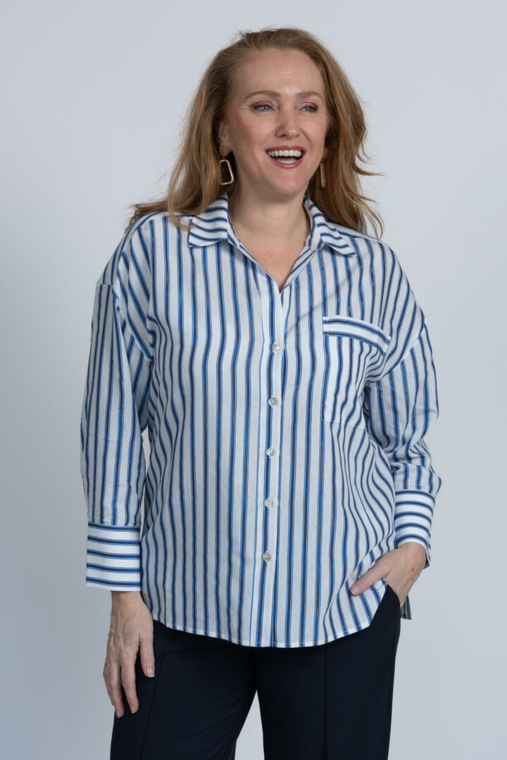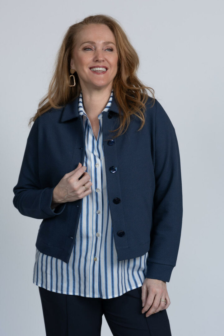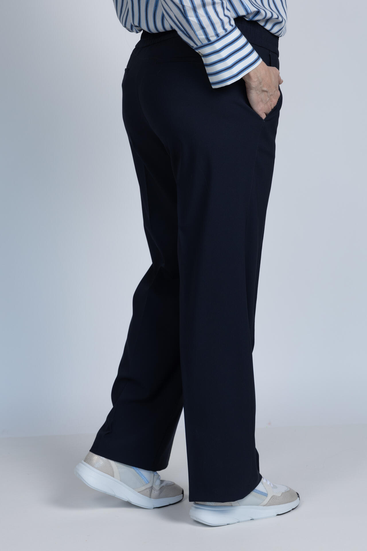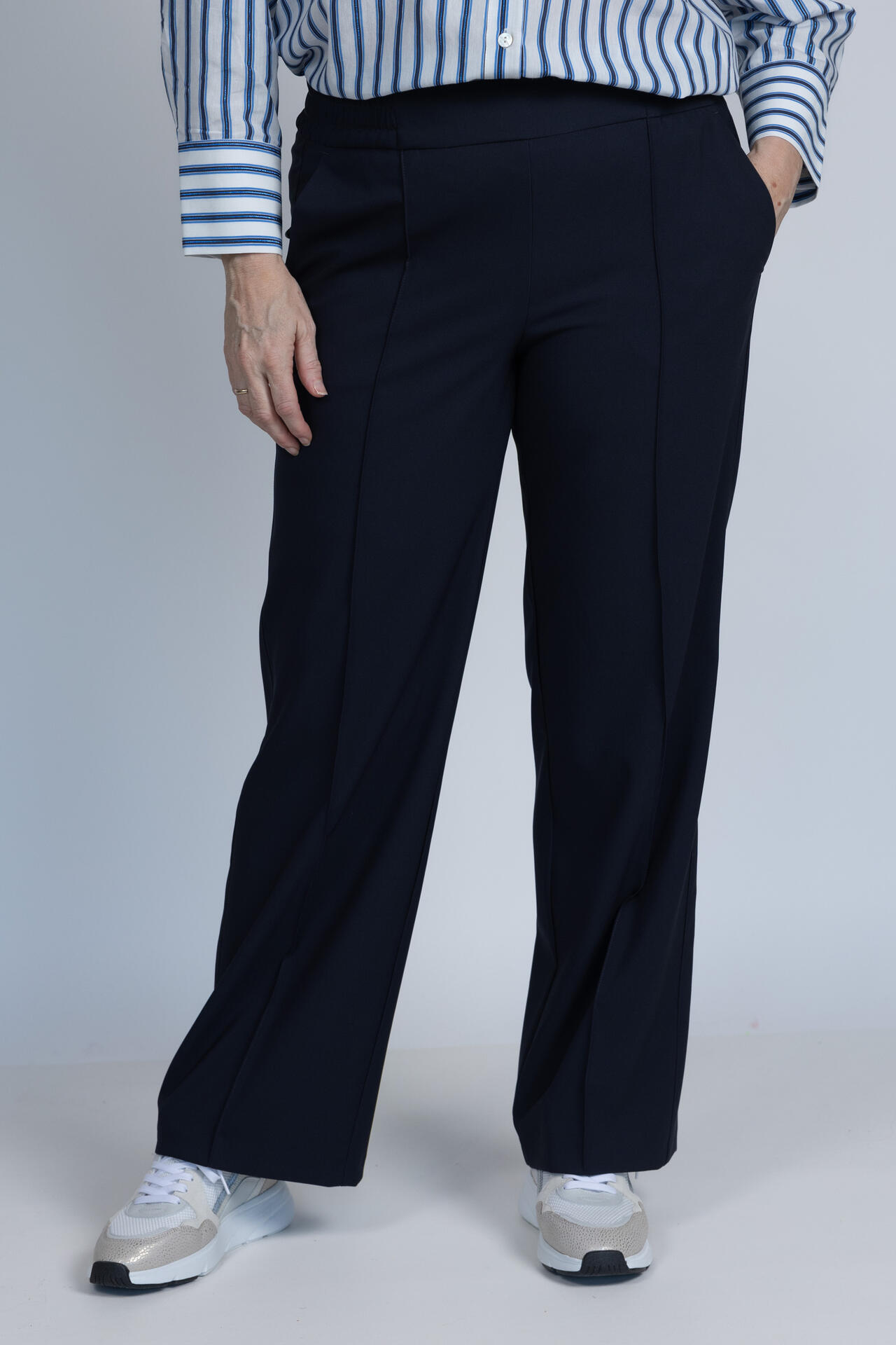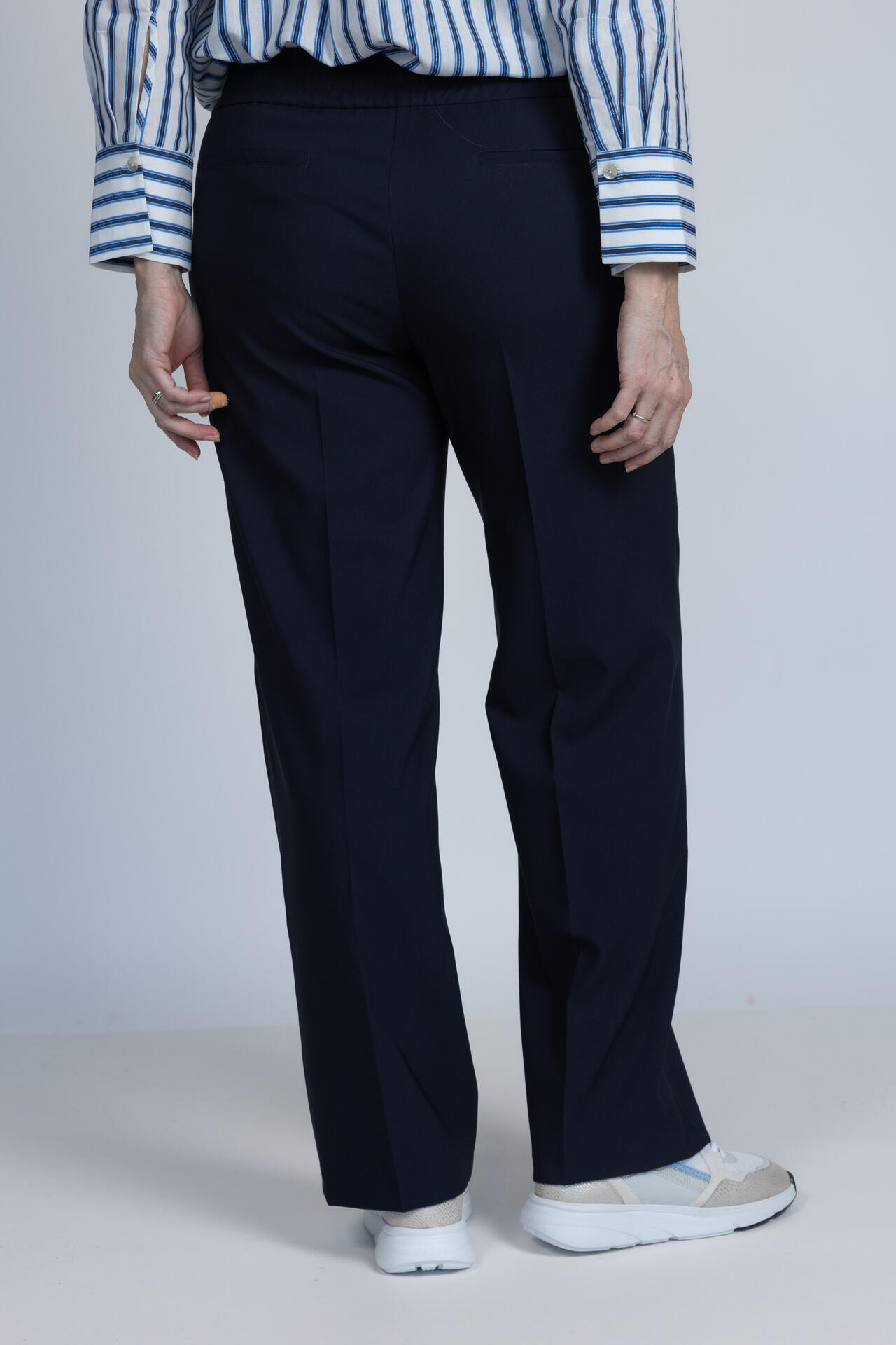 Pantalon met een elastische band in de taille, steekzakken aan de voorkant, fake zakken aan de achterkant en stretch in de stof waardoor hij heerlijk zit