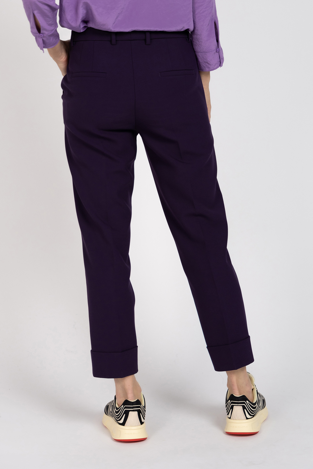 7/8 pantalon met een haak- en ritssluiting, lusjes in de band voor een ceintuur, steekzakken aan de voorkant en fake zakken aan de achterkant. Ook zit er stretch in de stof en heeft hij een omslag
