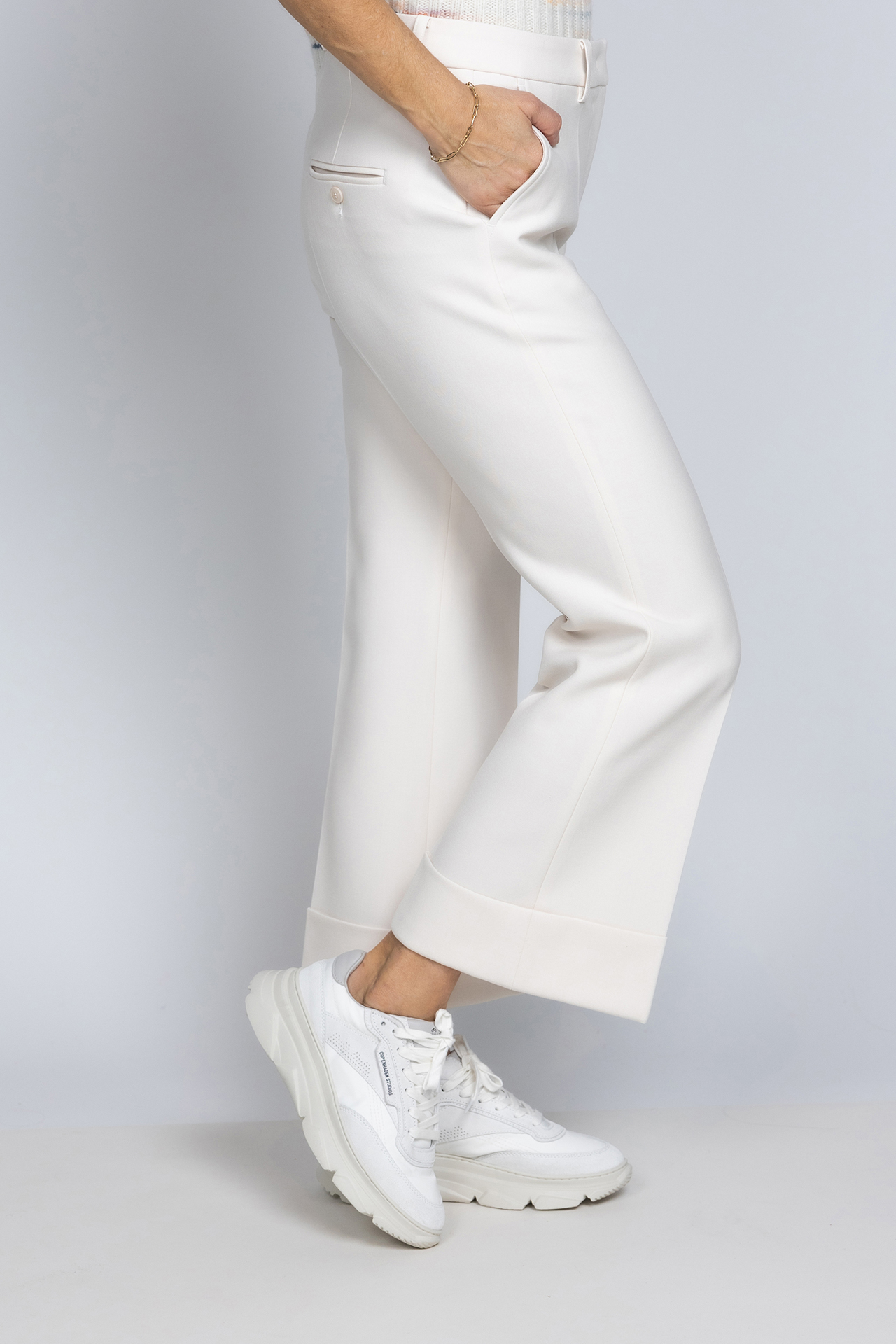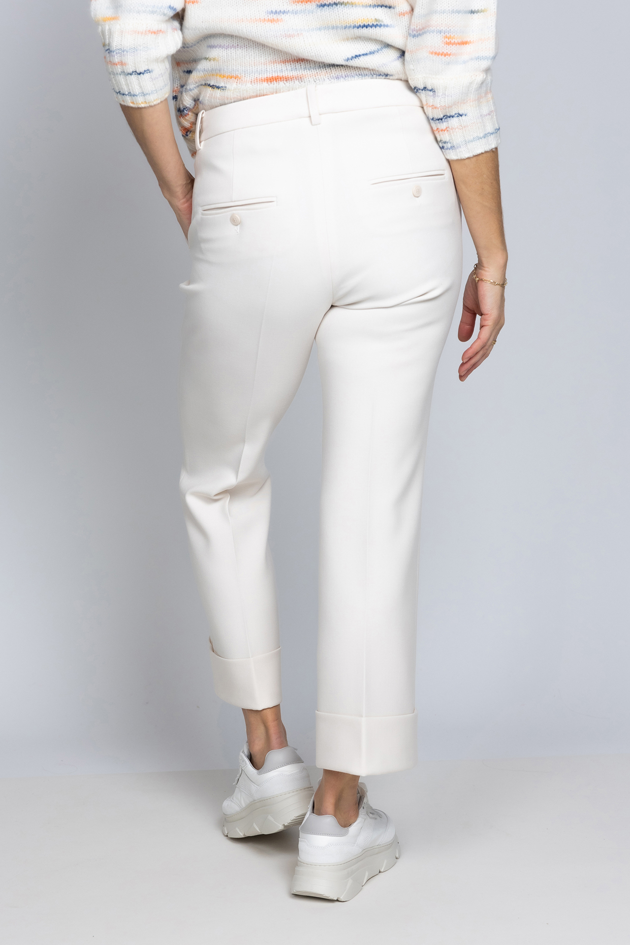 Soepel vallende pantalon met een haak- en ritssluiting en lusjes in de band voor een ceintuur. Hij heeft steekzakken aan de voorkant, paspelzakken aan de achterkant en stretch in de stof waardoor hij mooi valt en comfortabel draagt