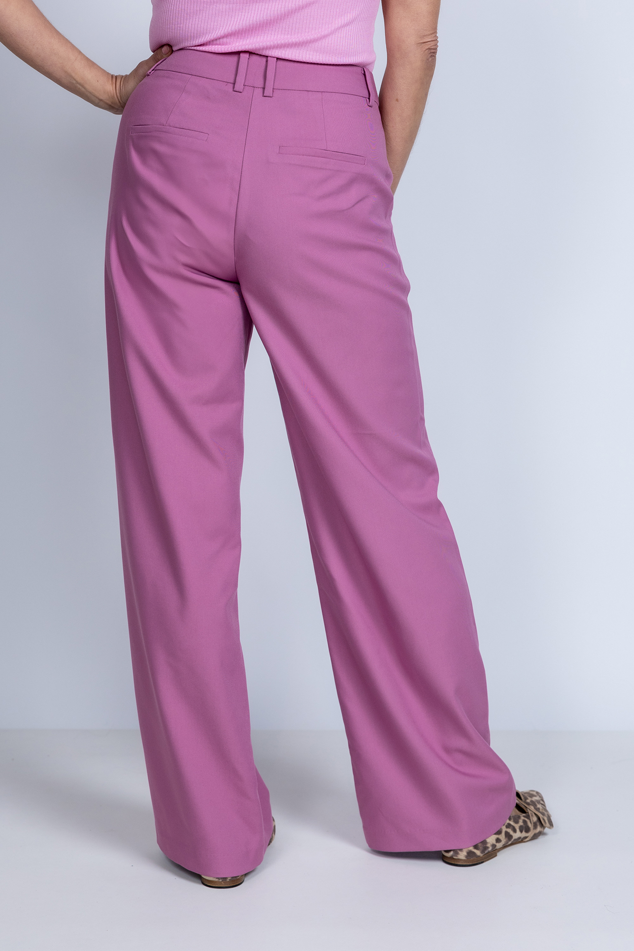 Pantalon met een hakk- en ritssluiting en lusjes in de band voor een ceintuur. Hij heeft steekzakken aan de voorkant, fake zakken aan de achterkant en stretch in de stof waardoor hij lekker zit