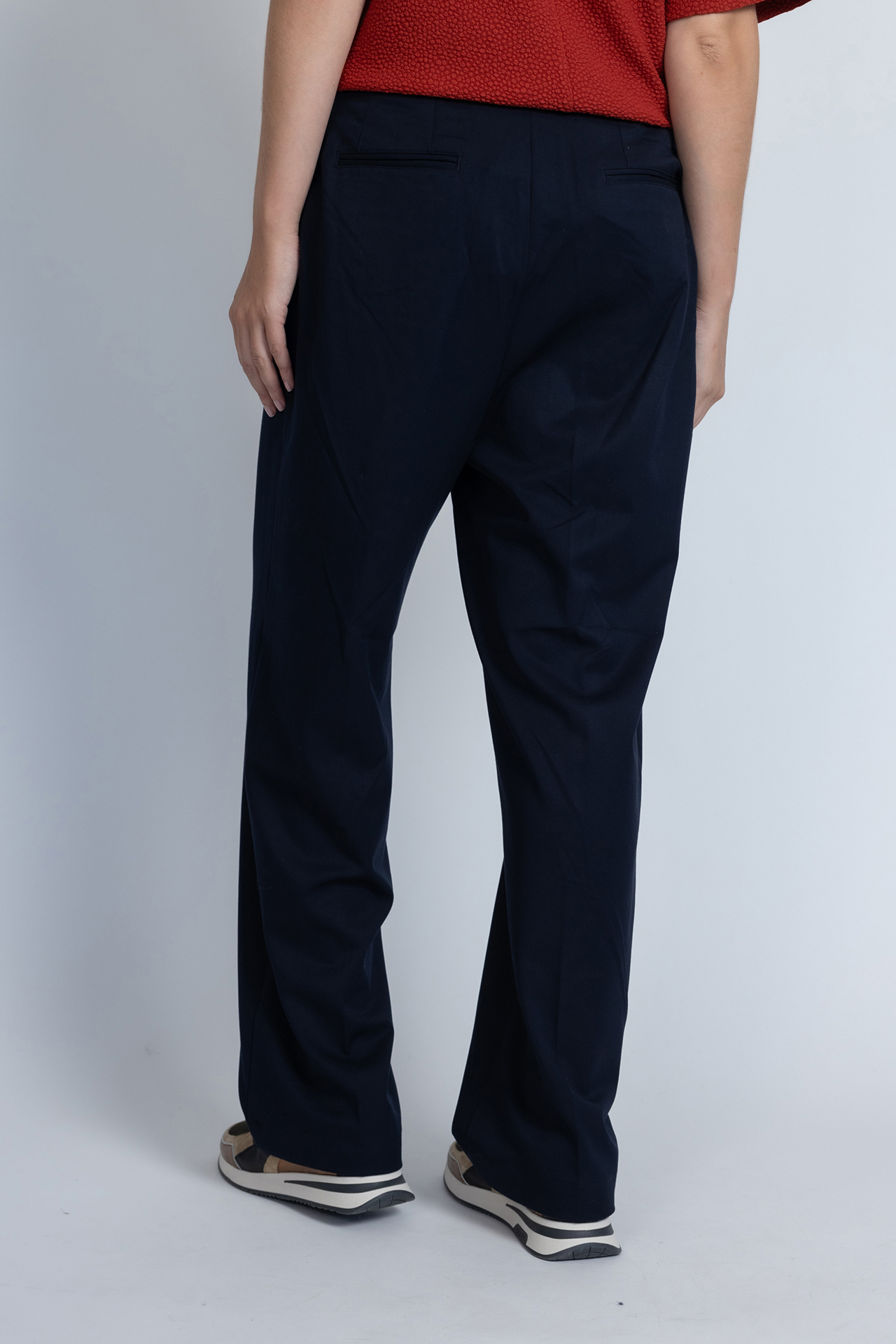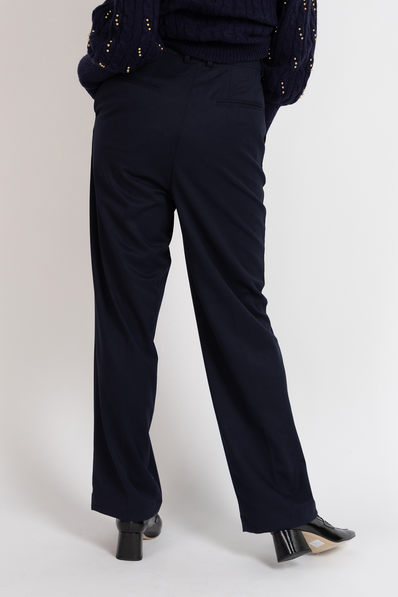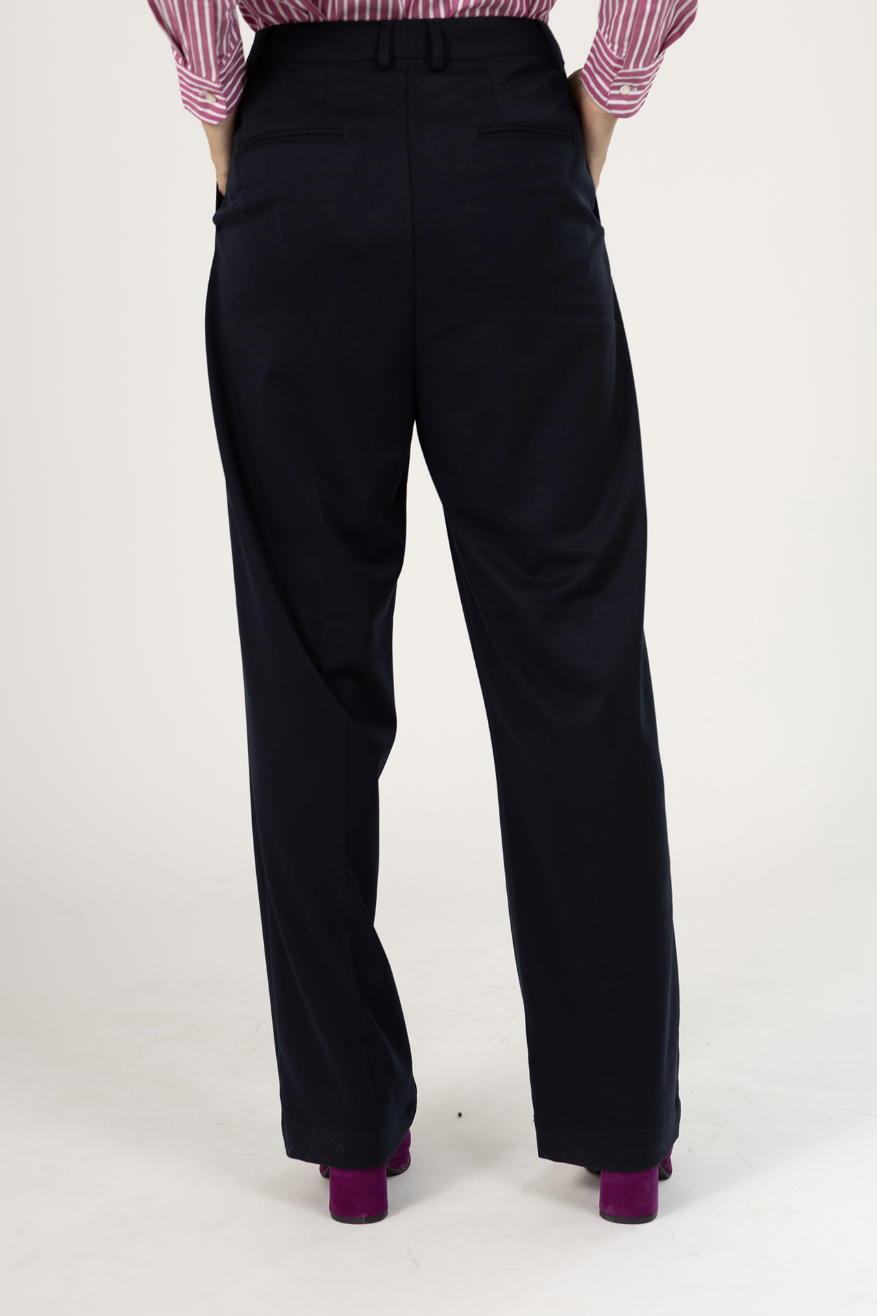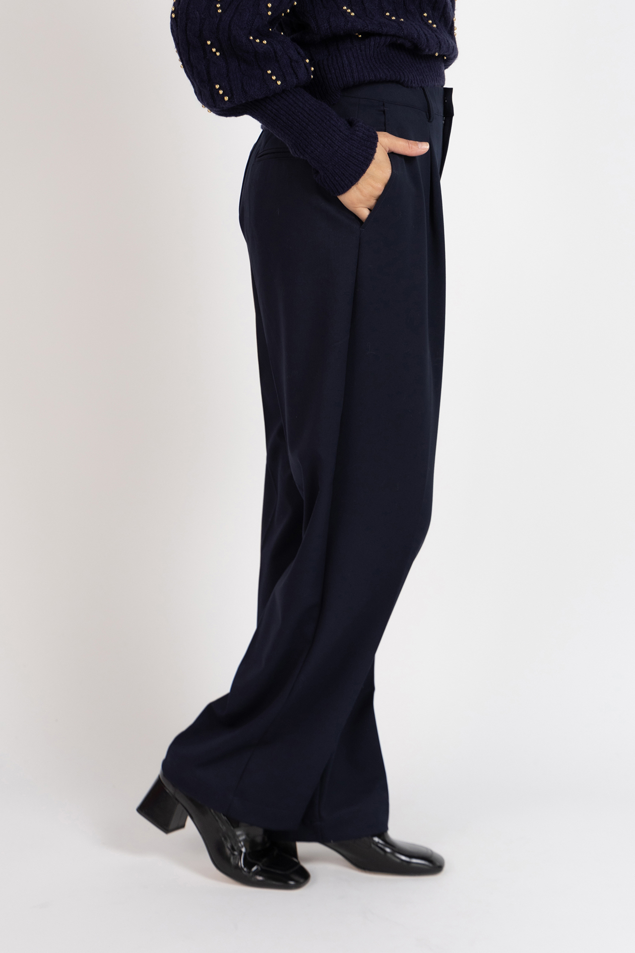 Soepel vallende pantalon met een haak- en ritssluiting, lusjes in de band voor een ceintuur en er zit een klein beetje stretch in waardoor hij heerlijk zit en mooi valt