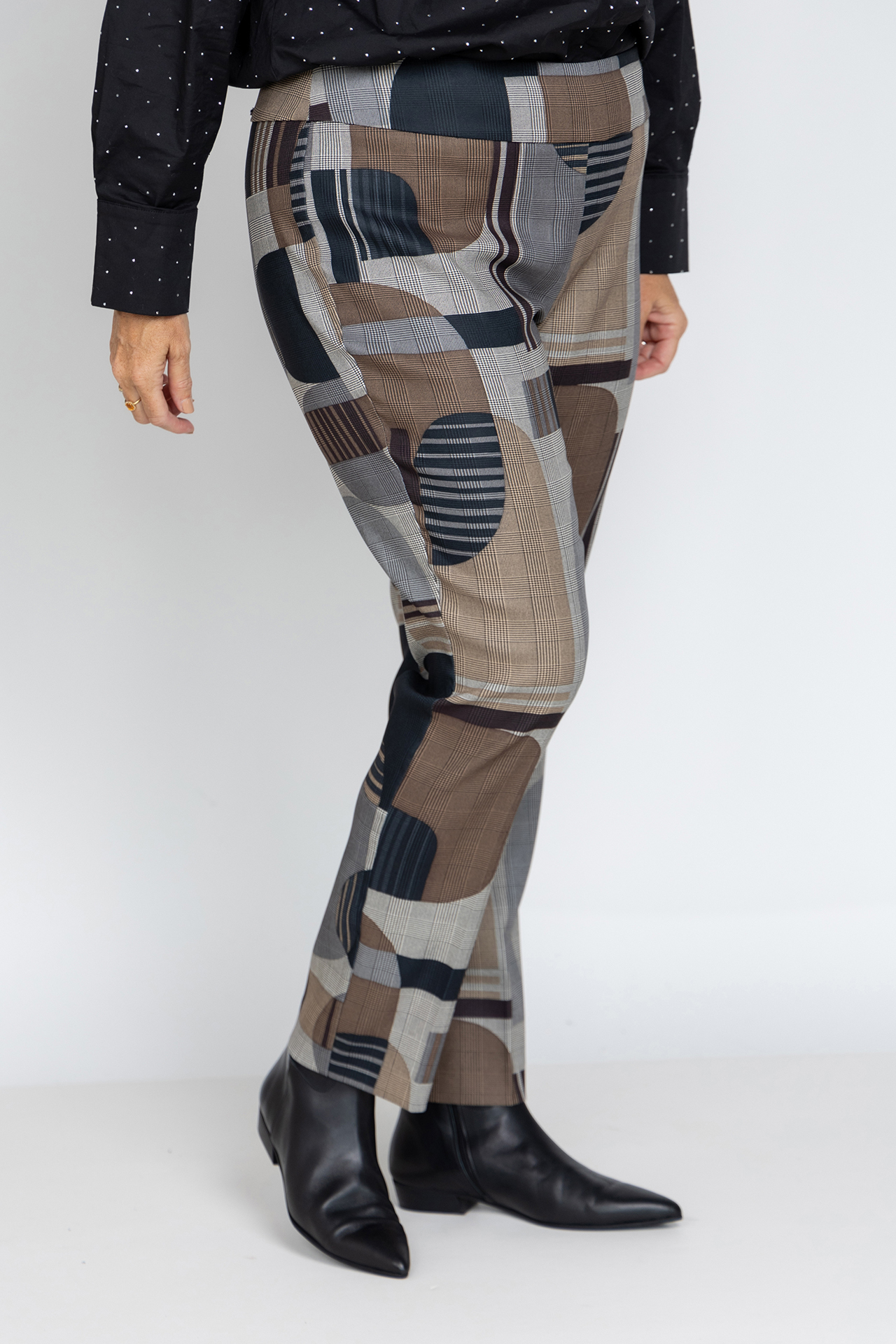Katoenen pantalon met een all-over dessin en stretch in de stof waardoor hij comfortabel draagt
