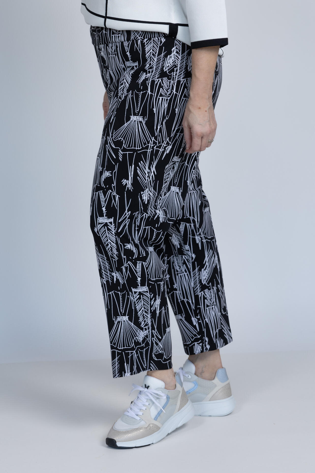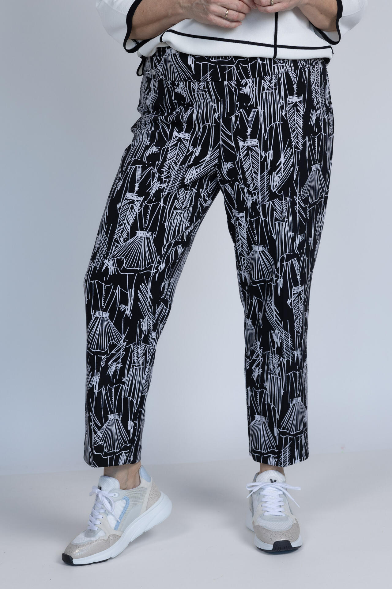 7/8 pantalon met een elastische band in de taille, een drukke all-over print en stretch in de stof waardoor hij comfortabel zit