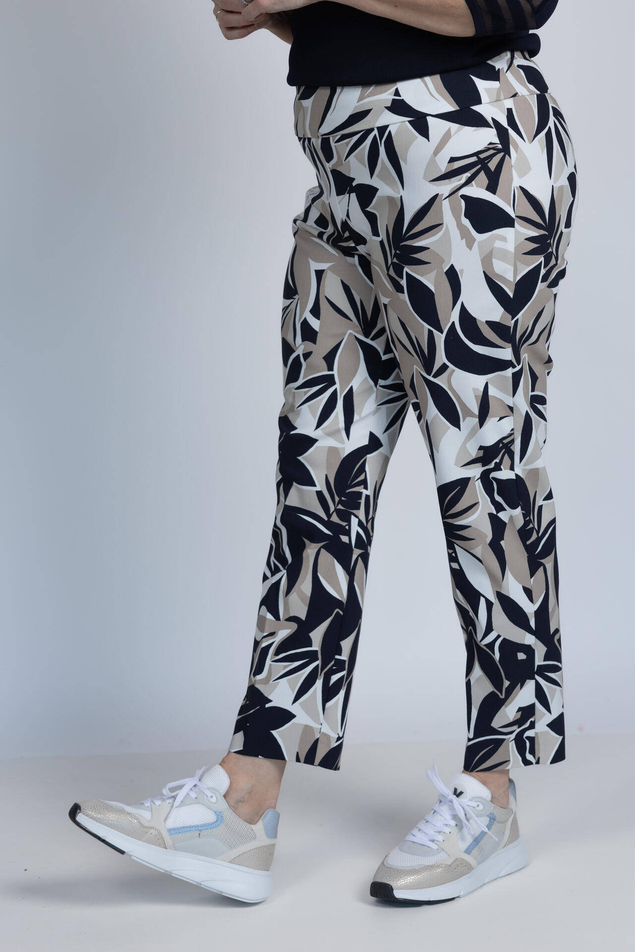 7/8 pantalon met een elastische band in de taille, een drukke all-over print en stretch in de stof waardoor hij comfortabel zit