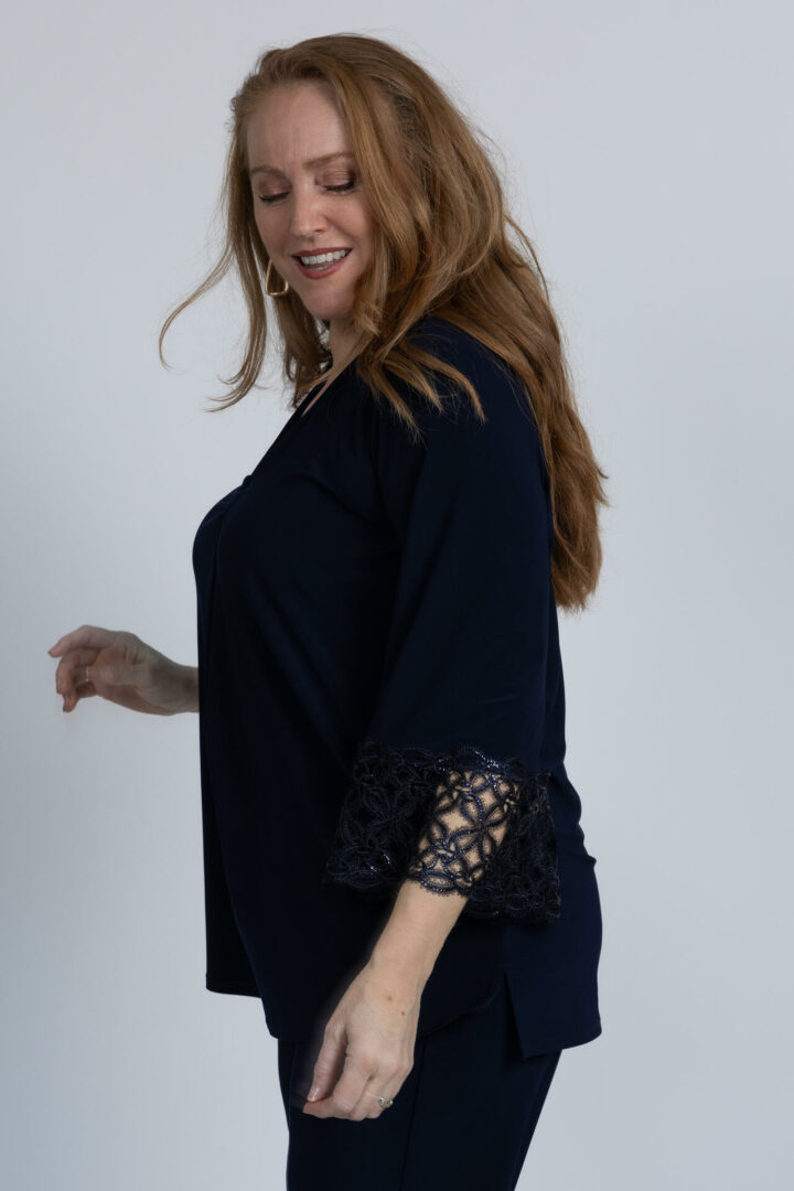 7/8 pantalon met een elastische band in de taille, kant aan de onderkant en stretch in de stof waardoor hij comfortabel zit
