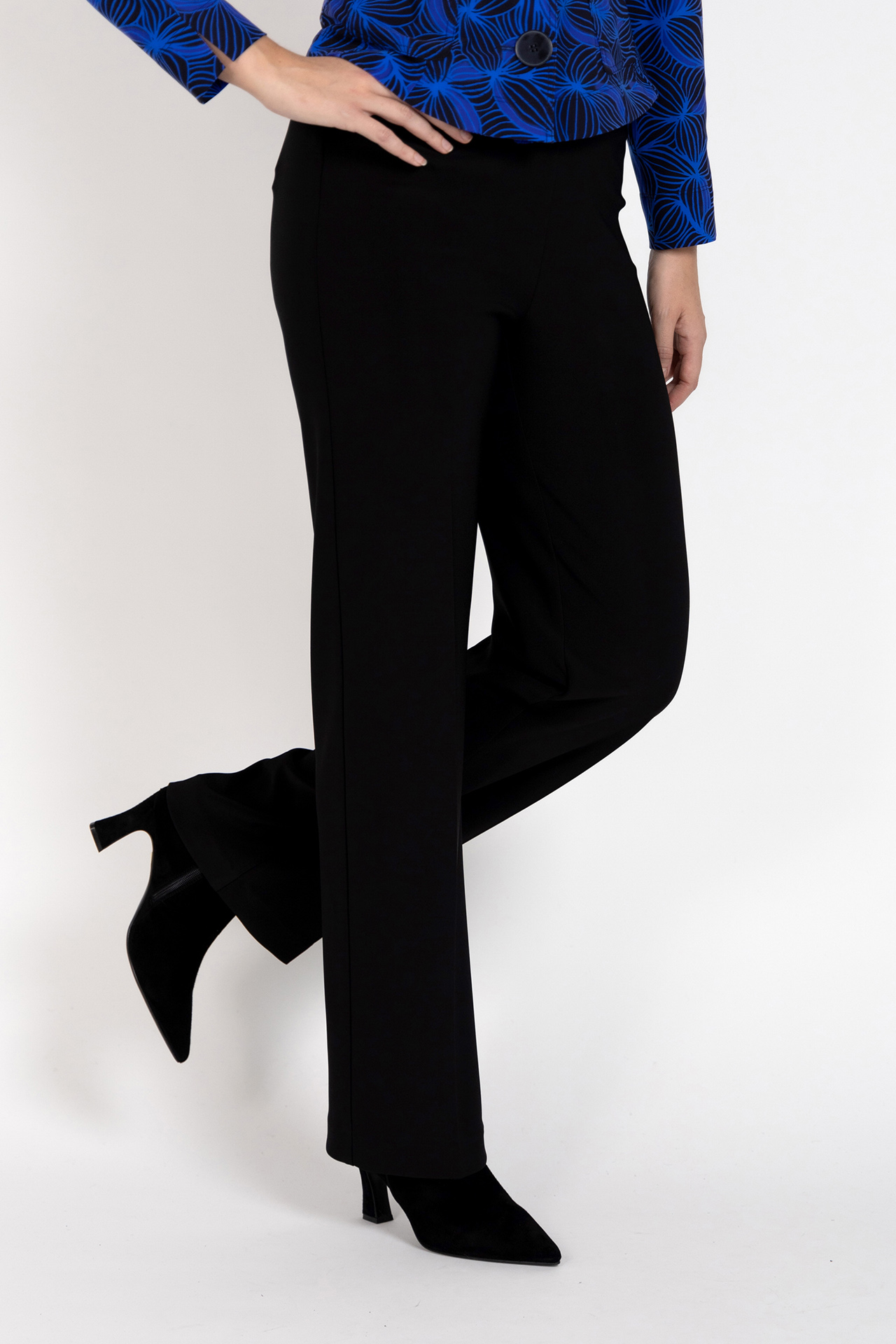 Pantalon met wijde rechte pijpen, een elastische band en er zit stretch in waardoor hij heerlijk zit en mooi valt