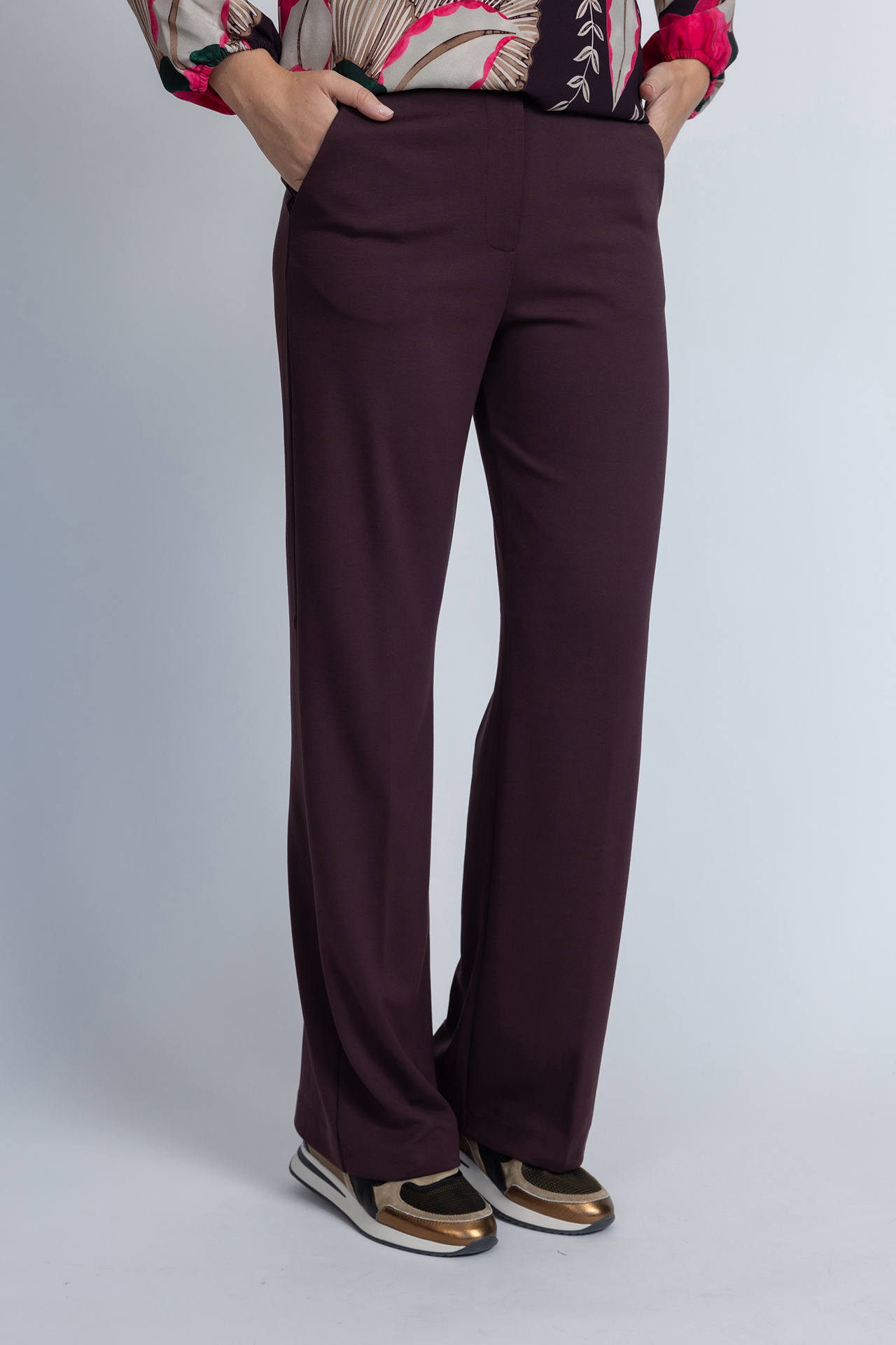 Pantalon met een knoop- en ritssluiting, steekzakken aan de voorkant, fake zakken aan de achterkant en er zit stretch in waardoor hij heerlijk zit