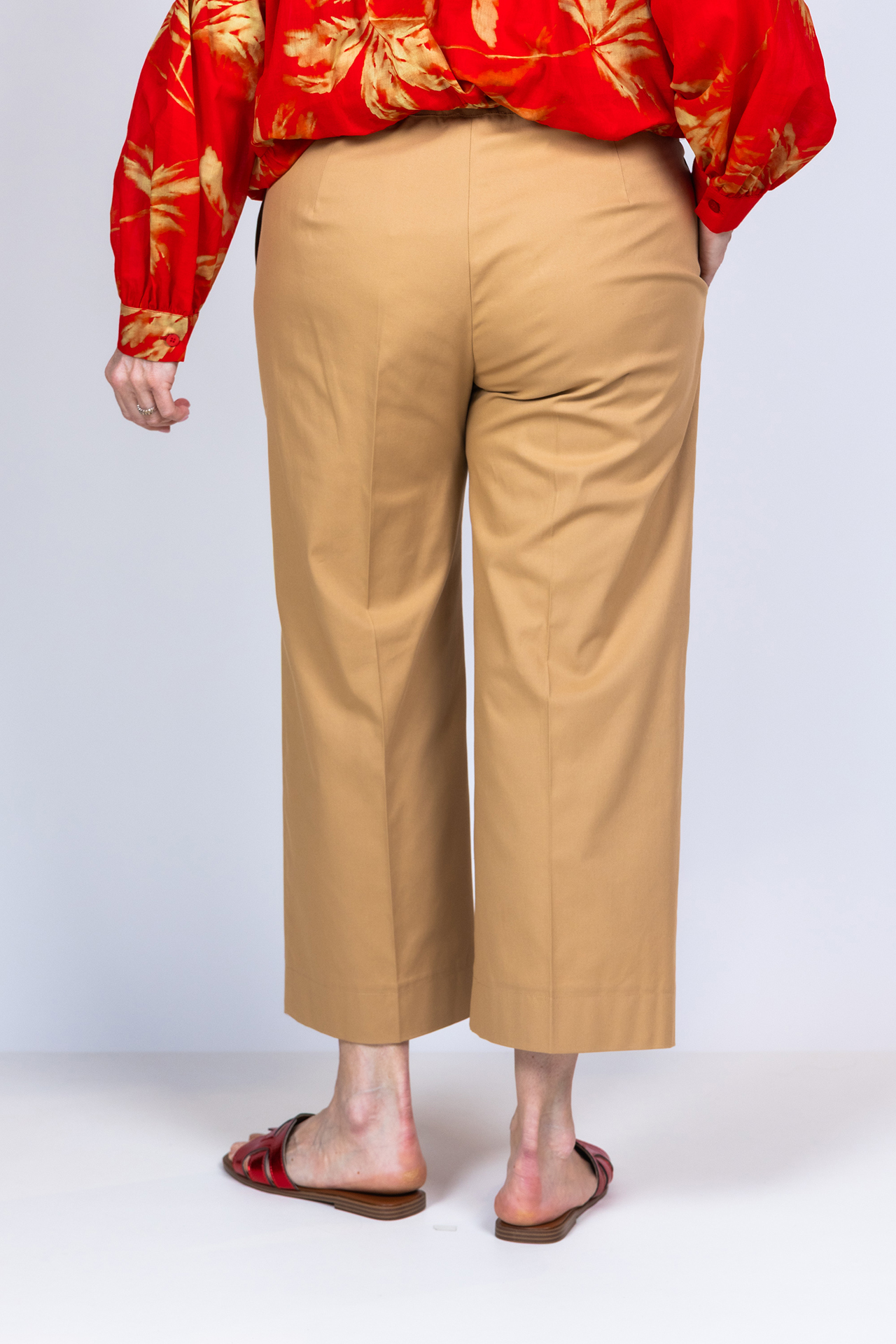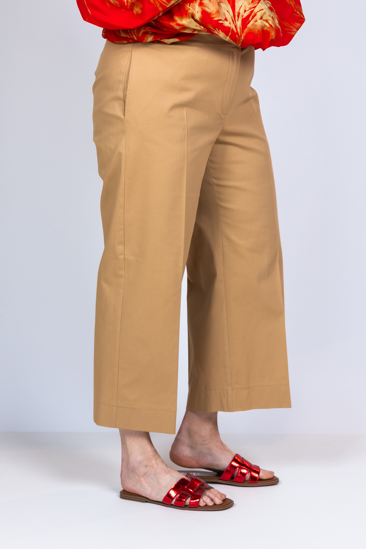 7/8 pantalon met een knoop- en ritssluiting. Hij heeft steekzakken aan de voorkant en een klein beetje stretch in de stof waardoor hij lekker zit