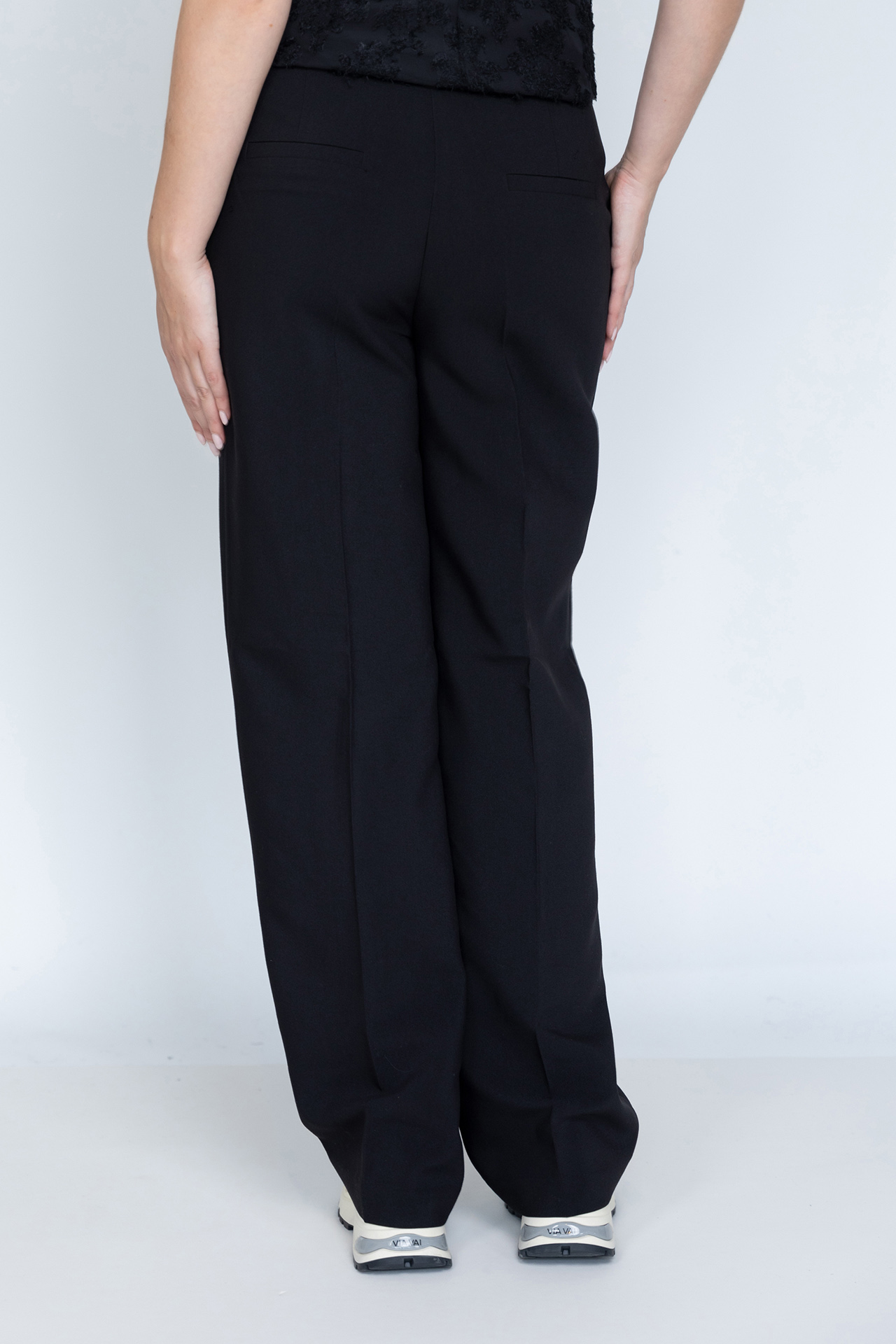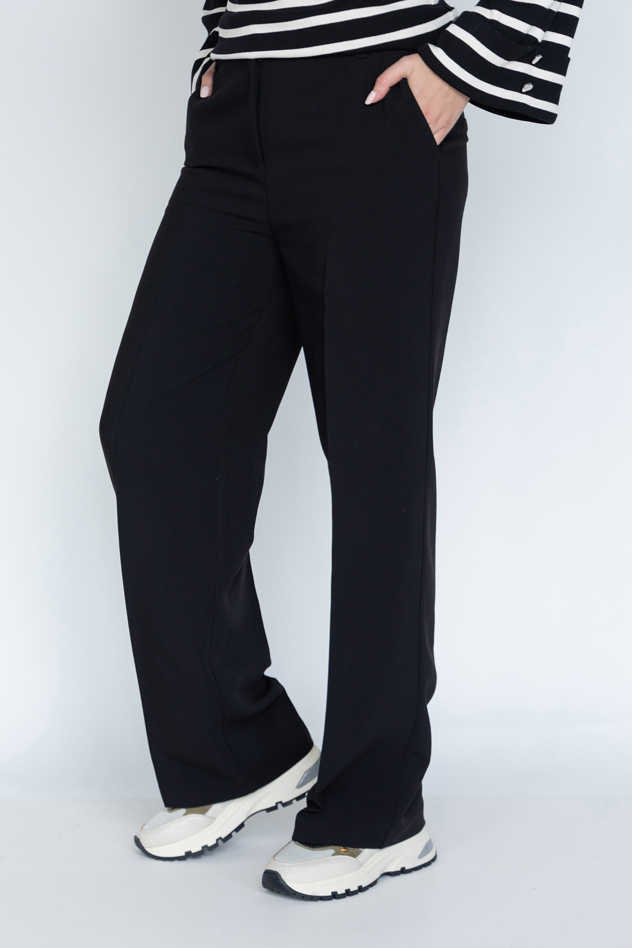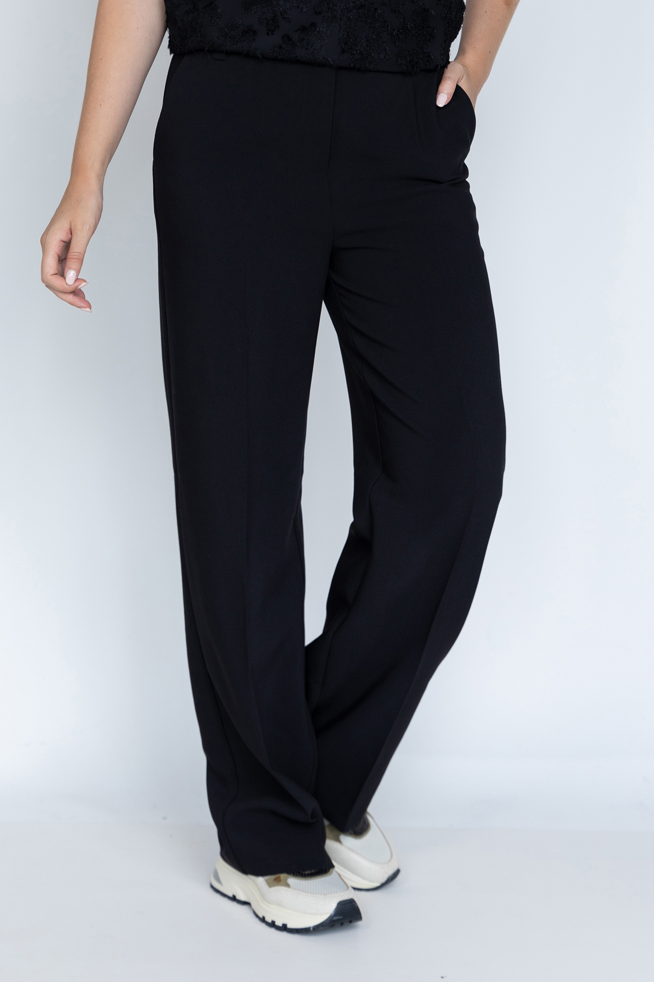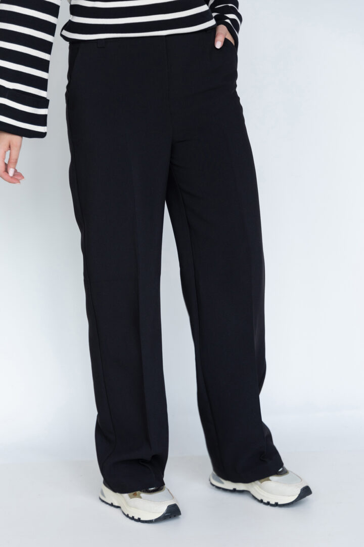 Pantalon met een knoop- en ritssluiting en lusjes in de band voor een ceintuur. Hij heeft steekzakken aan de voorkant, fake zakken aan de achterkant en stretch in de stof waardoor hij heerlijk draagt