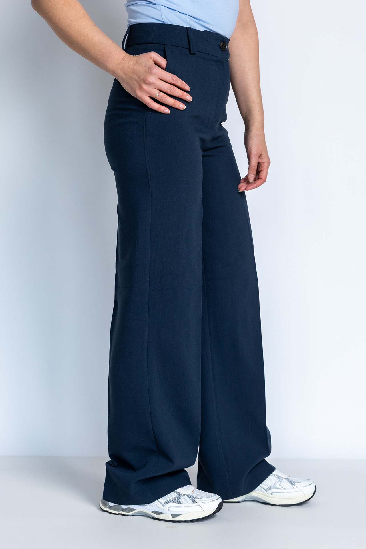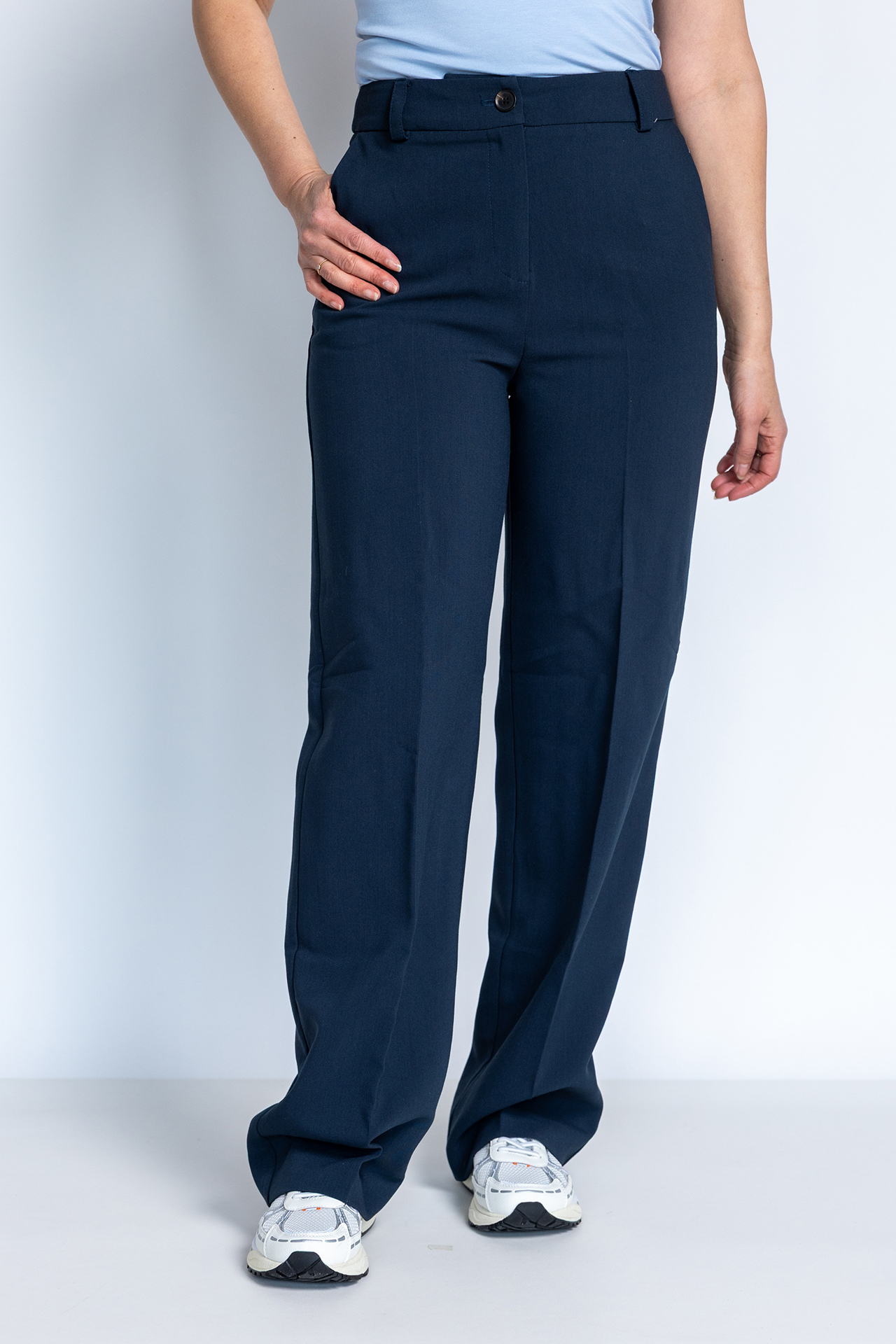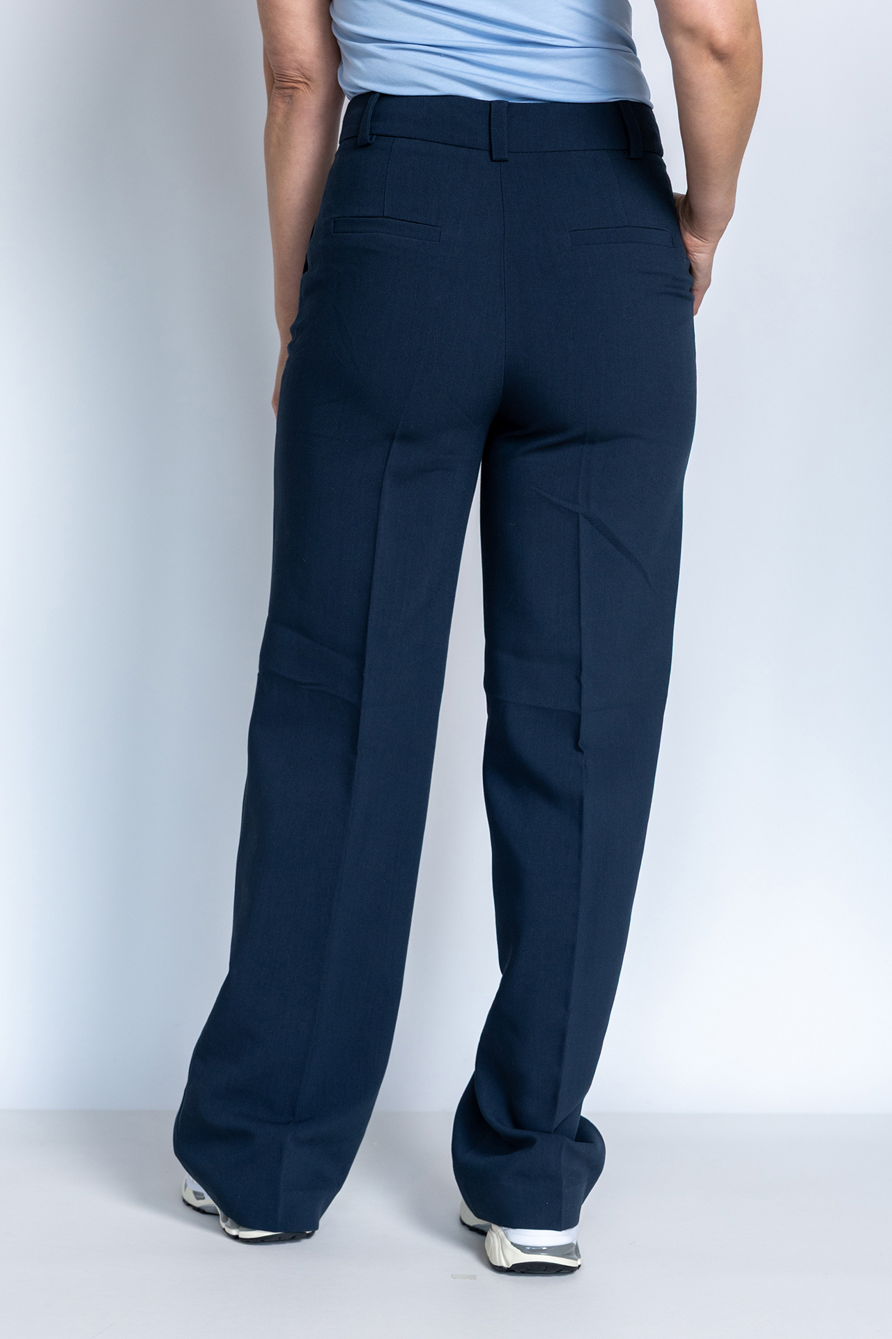 Pantalon met een knoop- en ritssluiting en lusjes in de band voor een ceintuur. Hij heeft steekzakken aan de voorkant, fake zakken aan de achterkant en stretch in de stof waardoor hij comfortabel zit