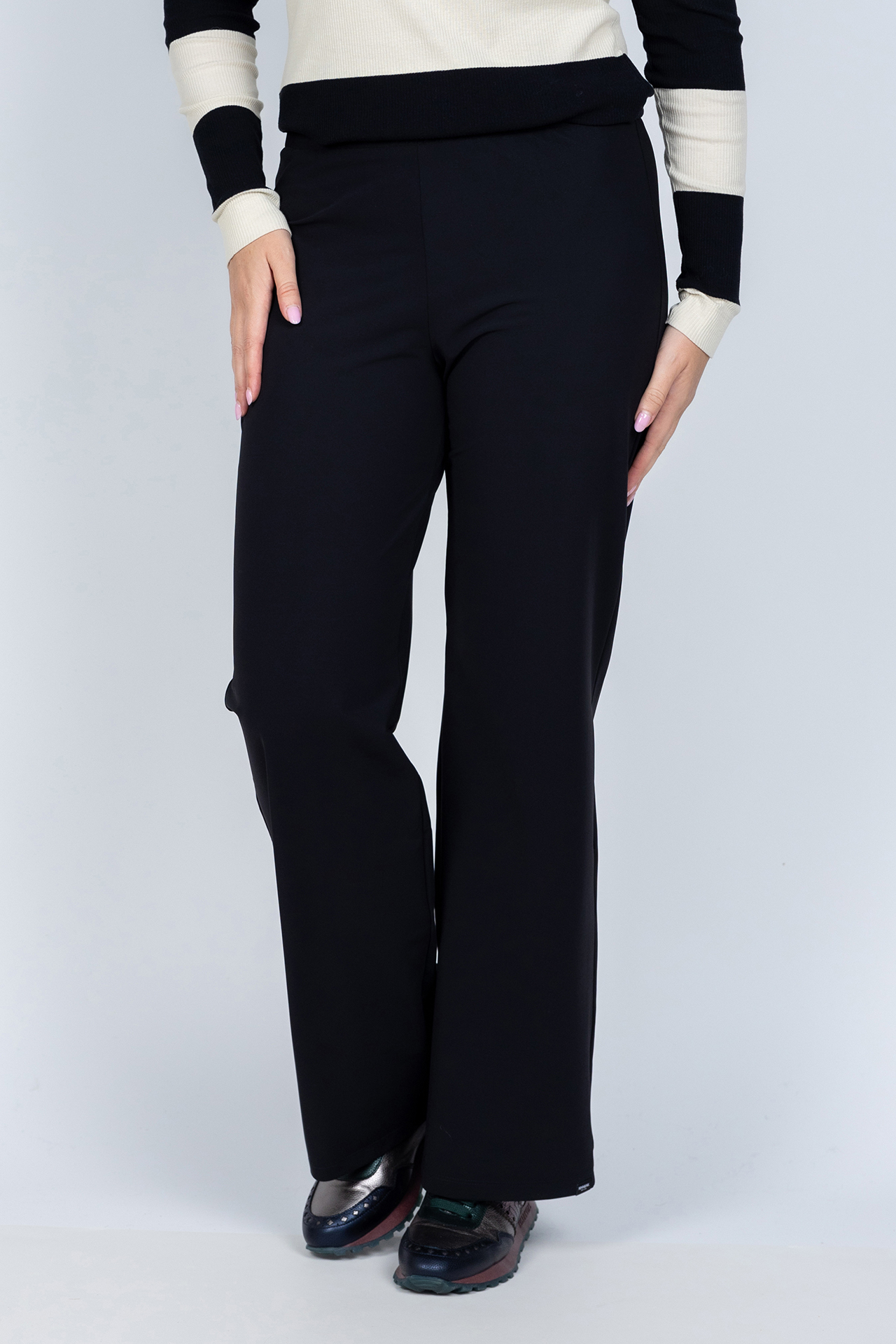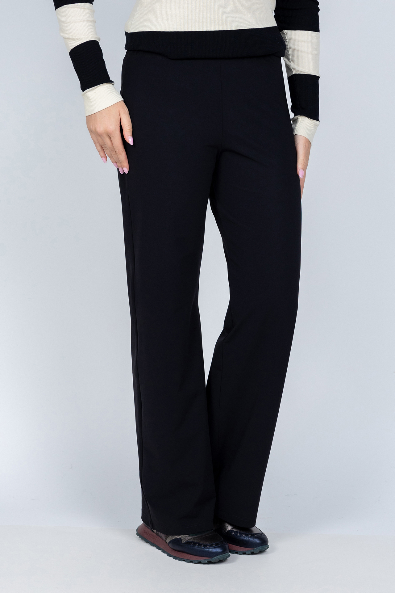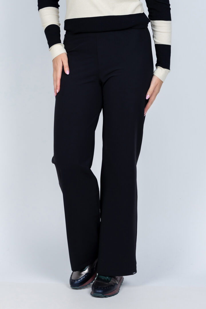Travelstof pantalon met wijde pijpen en een hoge taille