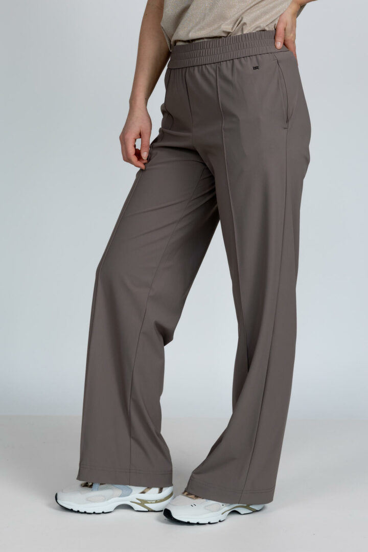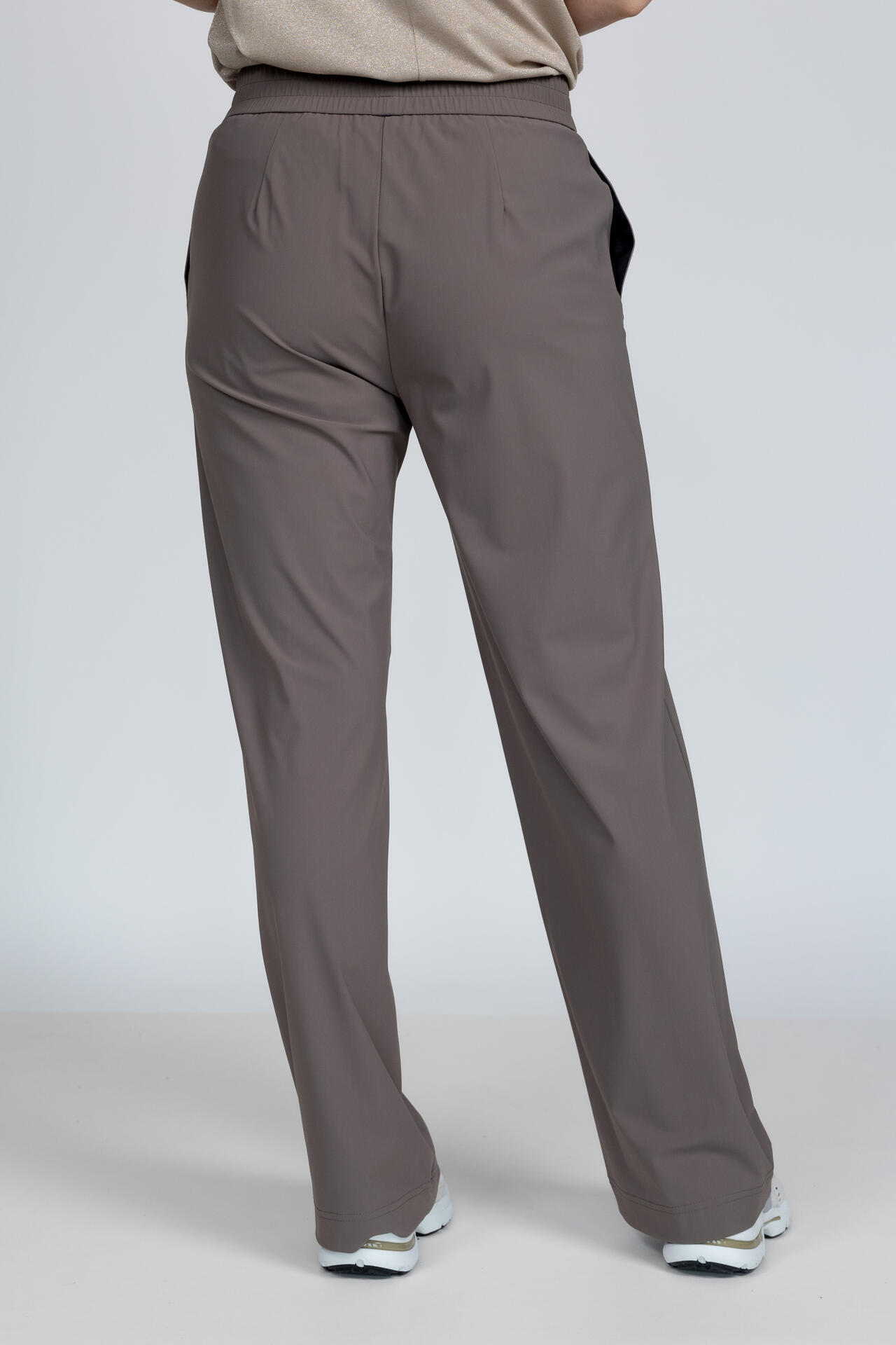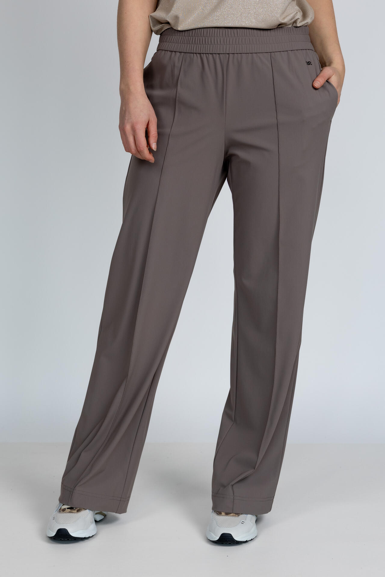 Soepel vallende pantalon met een elastische band in de taille, steekzakken en een doorgestikte naad aan de voorkant