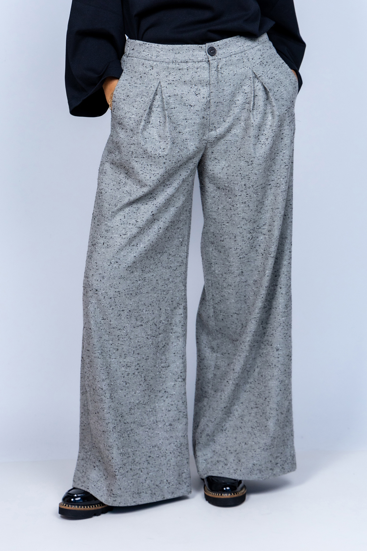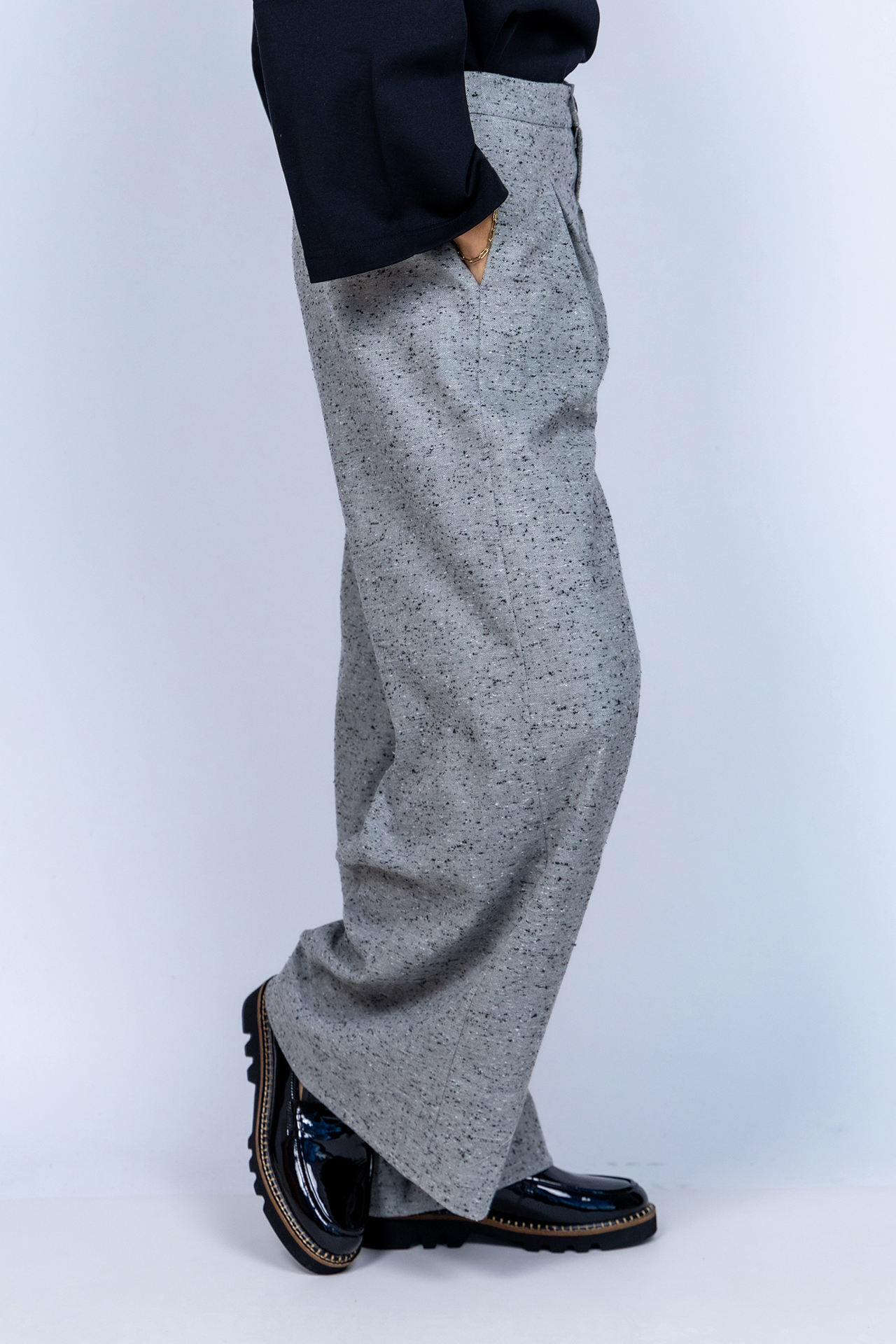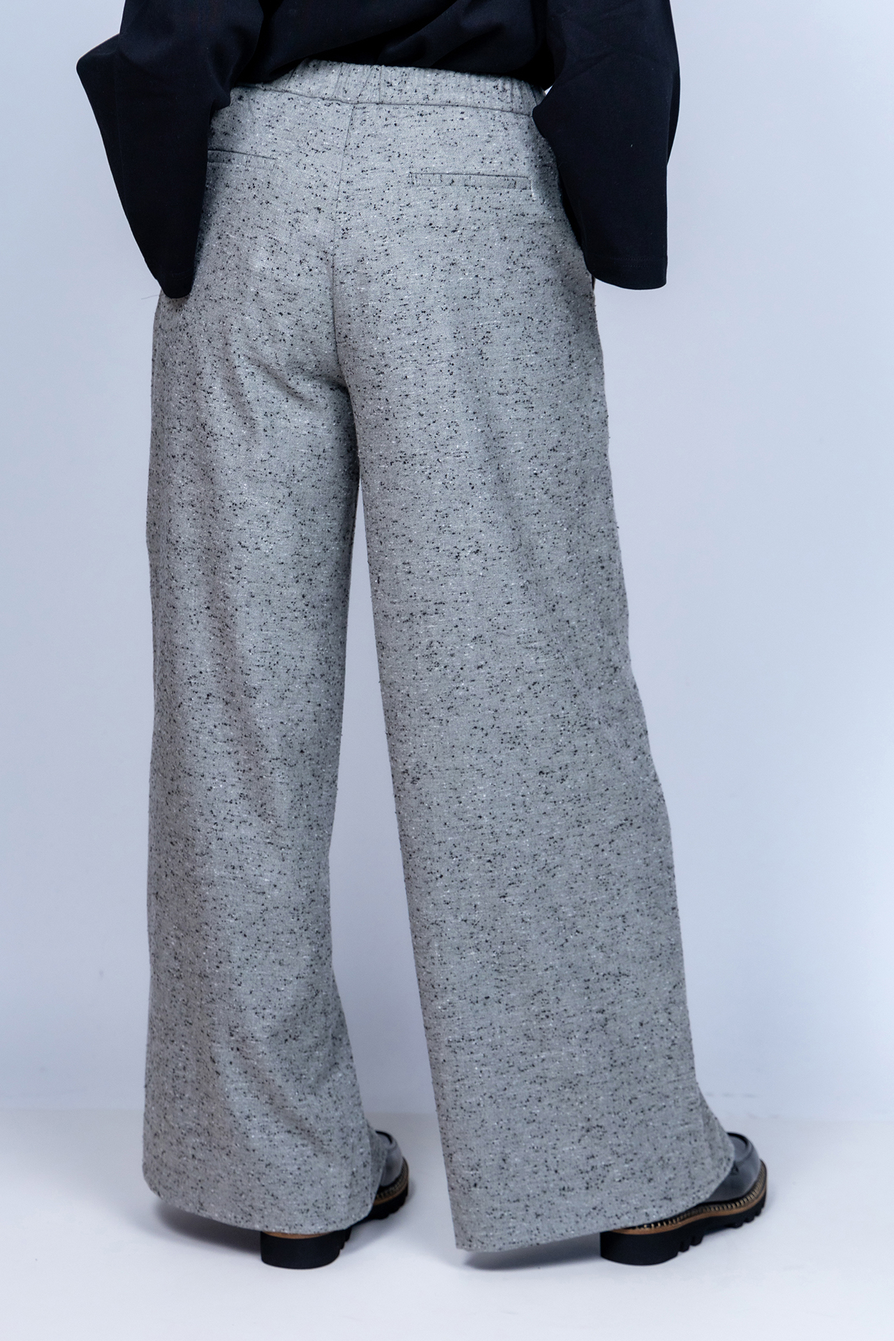 Gemêleerde pantalon met een knoop- en ritssluiting, bandplooi en lusjes in de band voor een ceintuur. Hij heeft steekzakken aan de voorkant, fake zakken aan de achterkant en een klein beetje stretch in de stof waardoor hij comfortabel draagt