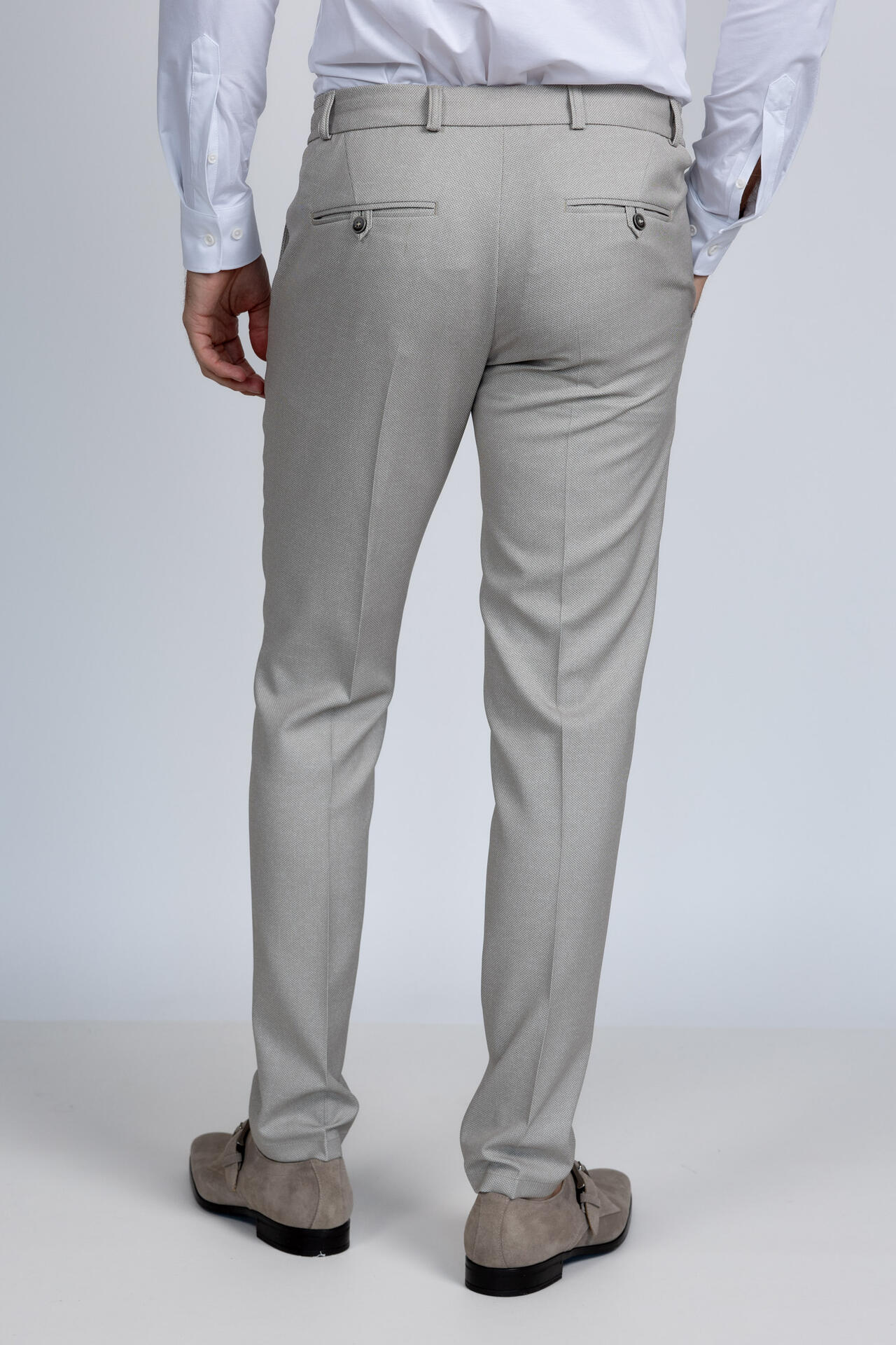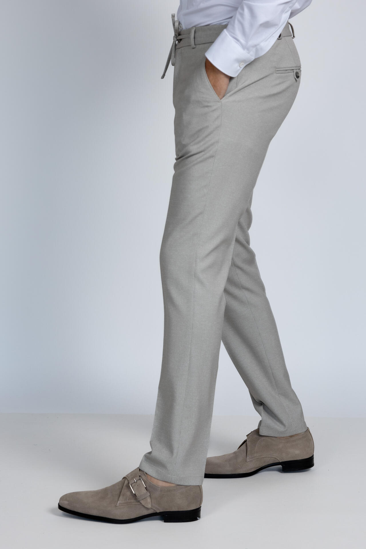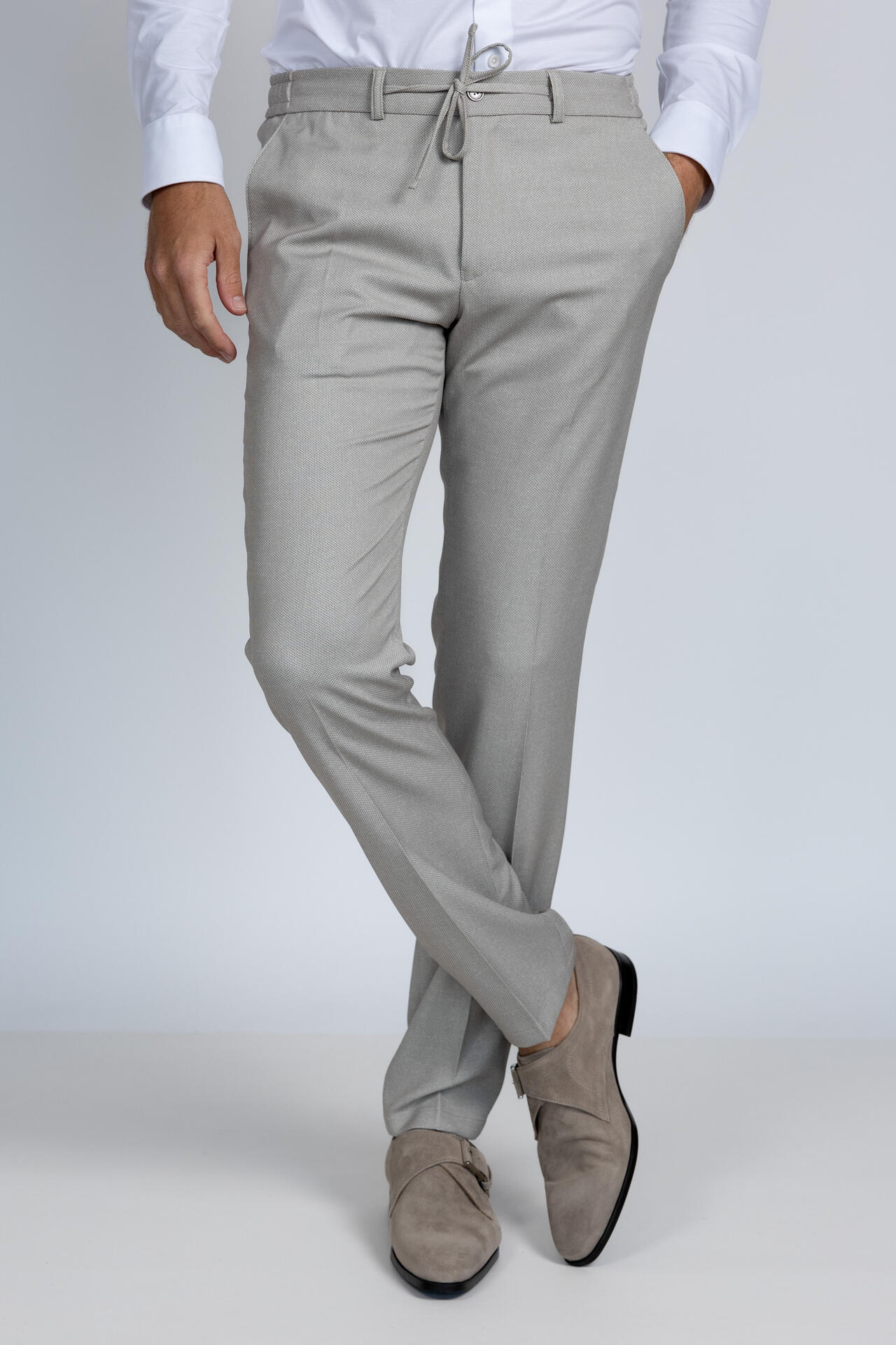 Pantalon met een knoop- en ritssluiting en koordje in de band. Hij heeft steekzakken aan de voorkant, paspelzakken aan de achterkant en stretch in de stof waardoor hij comfortabel draagt