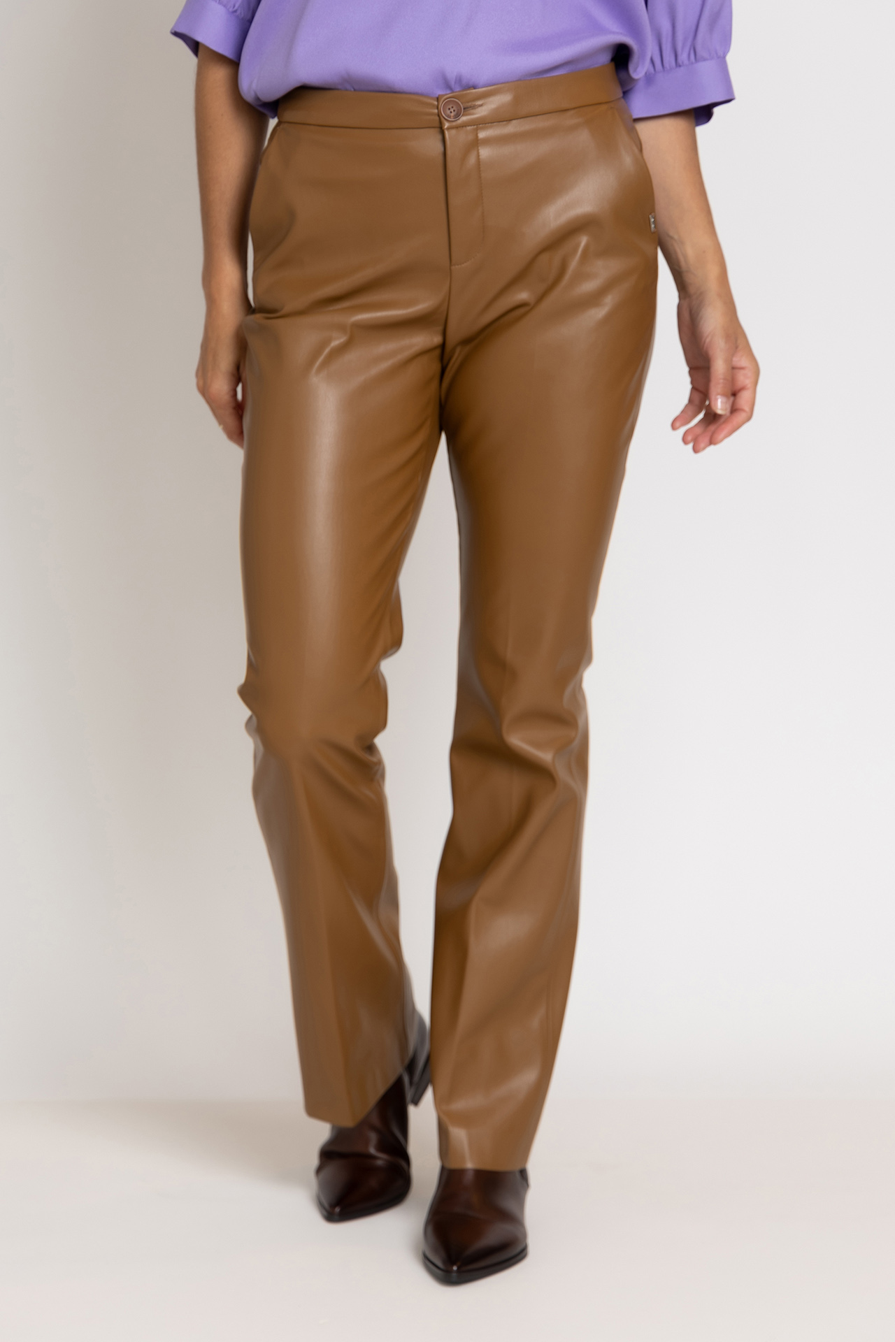 Leatherlook pantalon met een knoop- en ritssluiting, steekzakken aan de voorkant en fake zakken aan de achterkant
