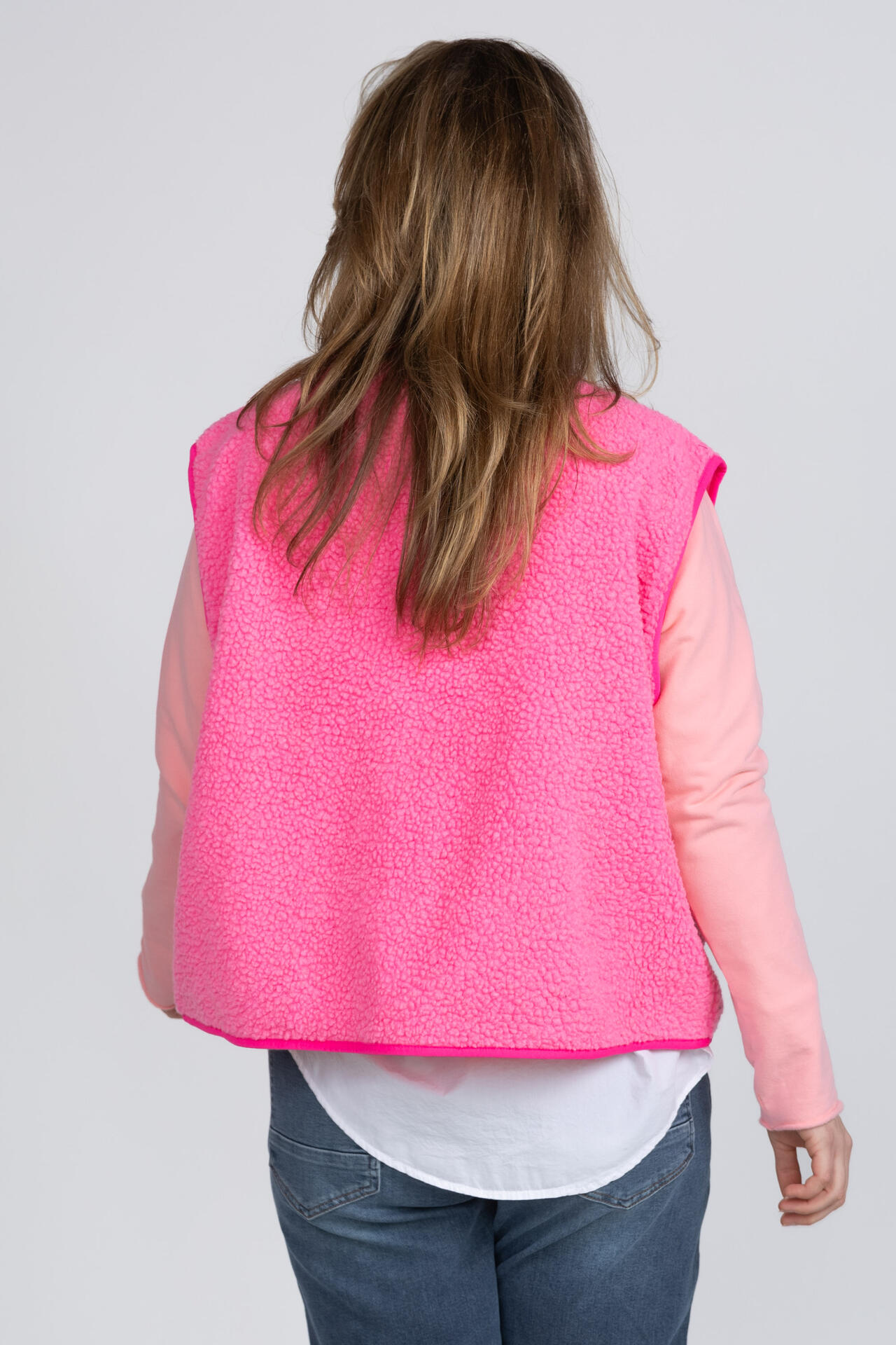 Loose fit teddy bodywarmer met drukknopen en steekzakken aan de voorkant