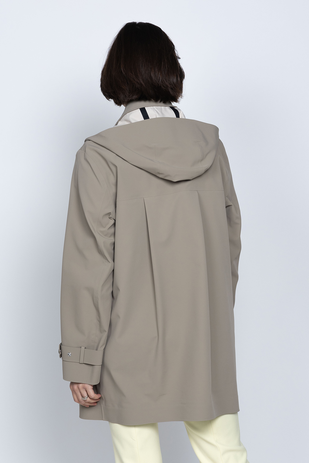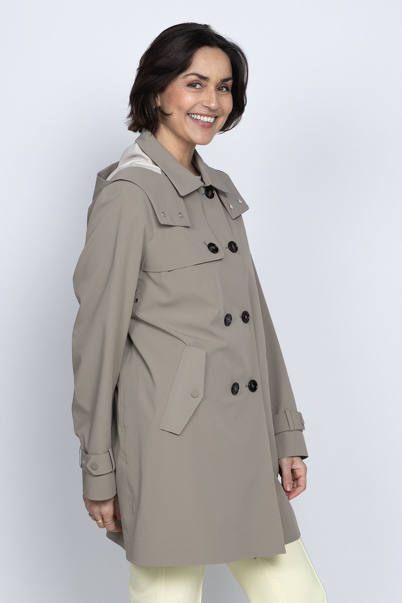 Double breasted regenmantel met een afneembare capuchon en klepzakken aan de voorkant