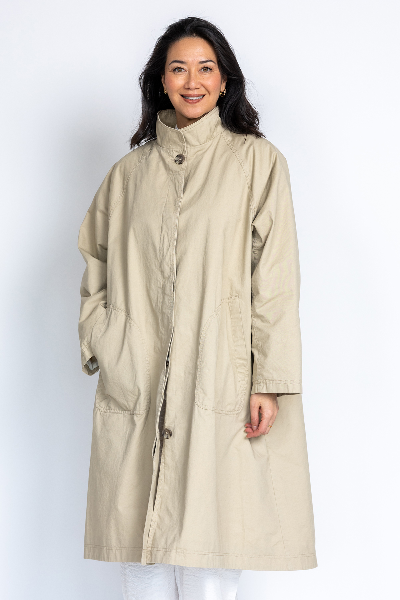 Oversized katoenen jas met knopen, steekzakken en een split aan de achterkant