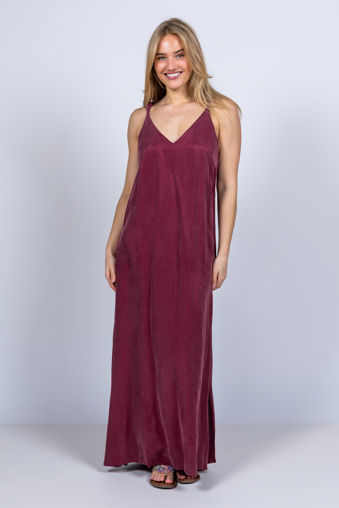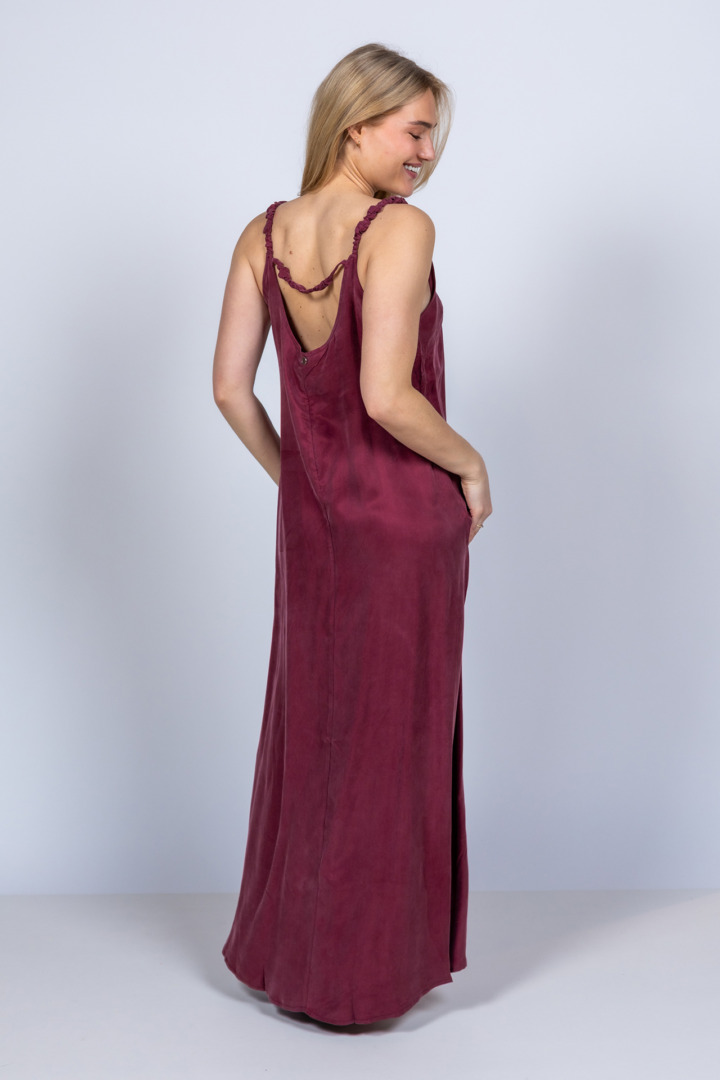 Maxi mouwloze jurk met een V-hals, laag uitgesneden aan de achterkant en hij is gemaakt van een super zachte kwaliteit