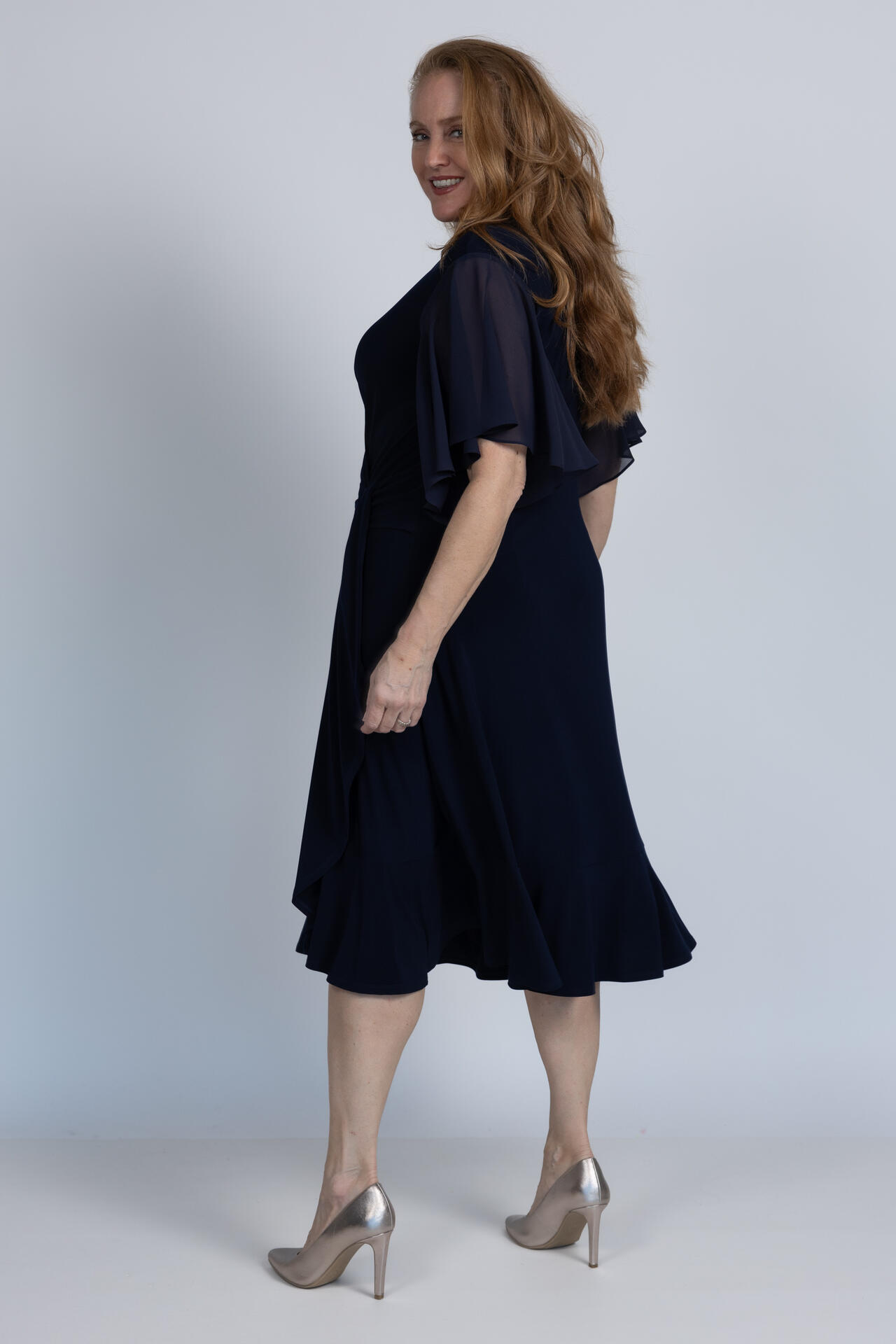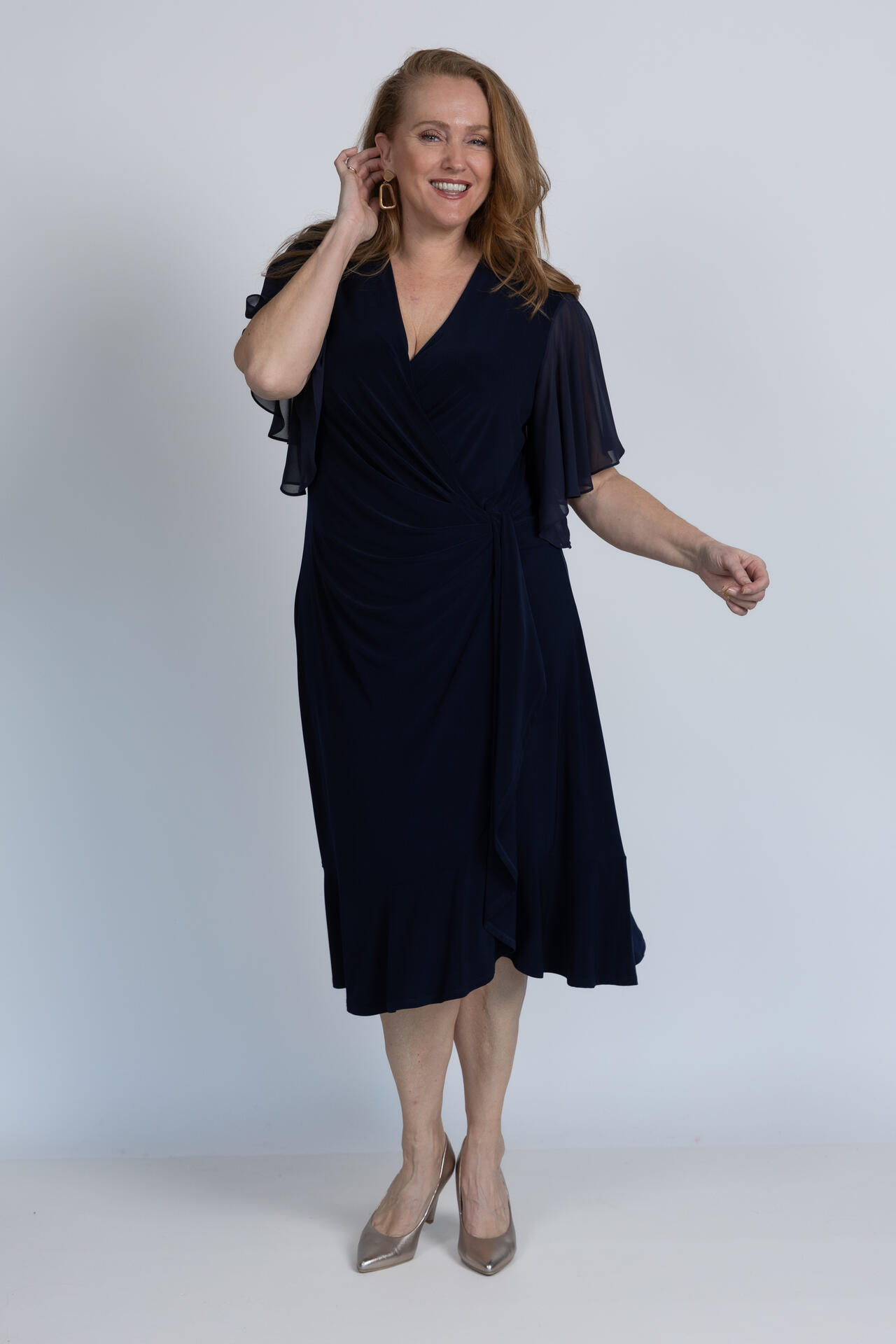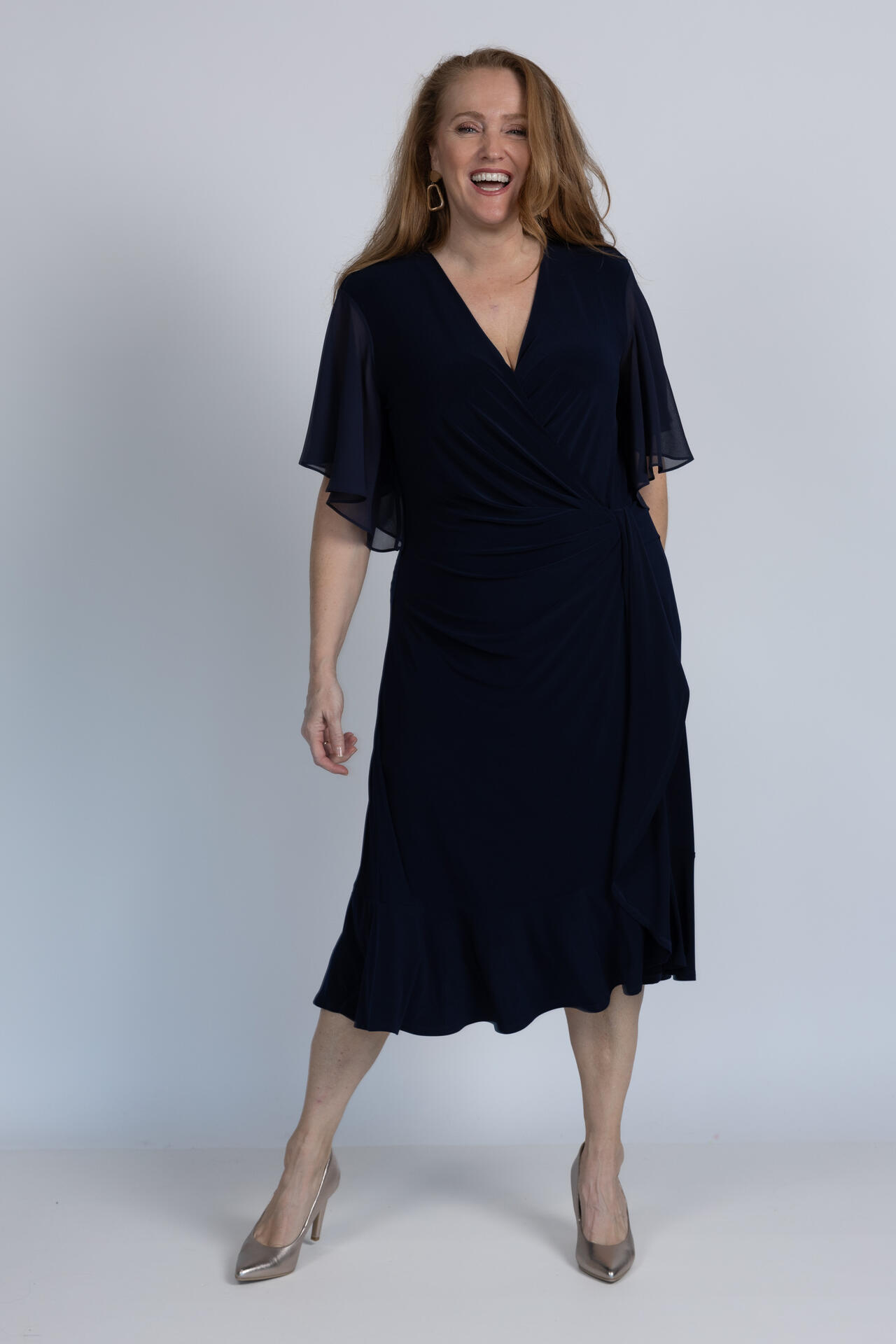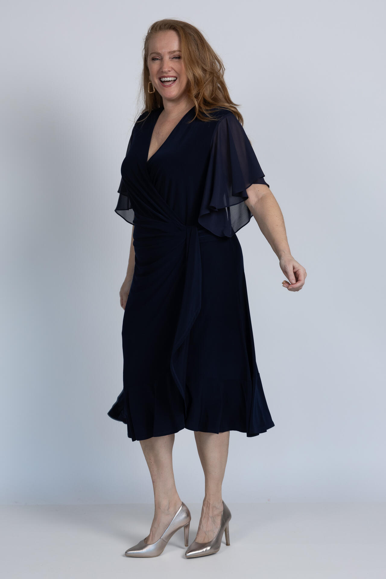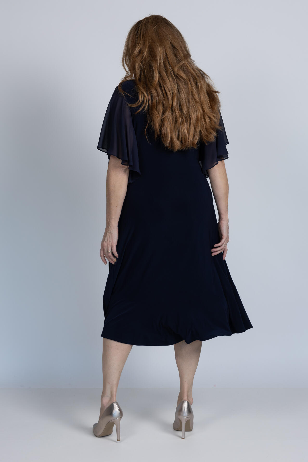 Soepel vallende jurk met een overslag V-hals, klokkende rok en wijde voile mouwen