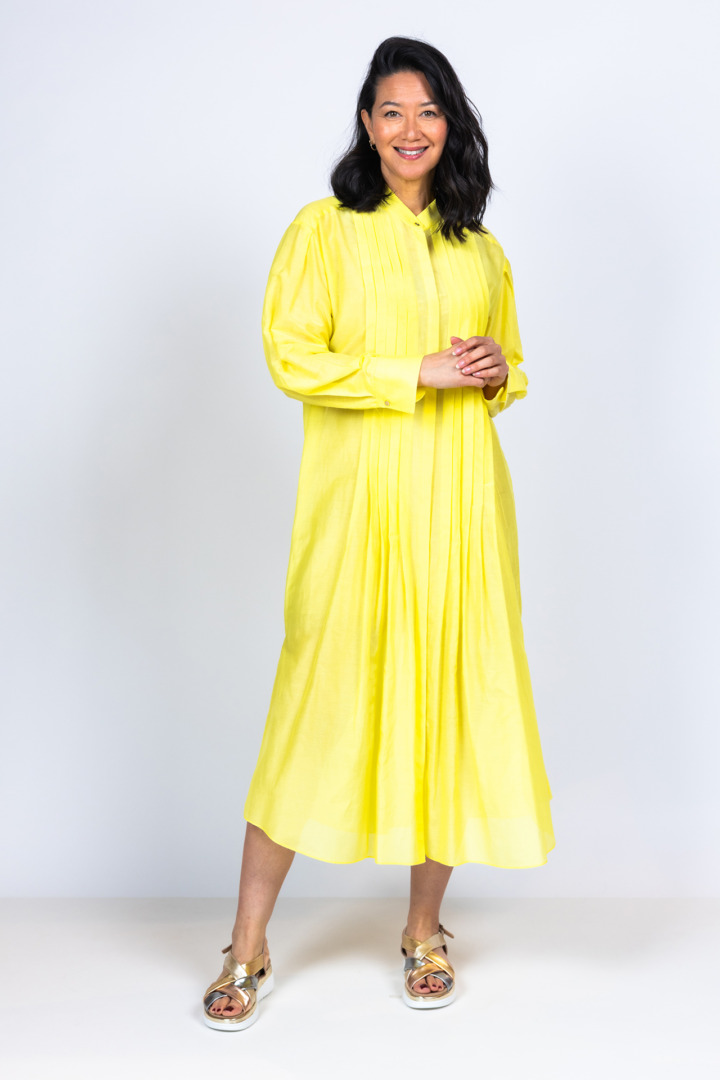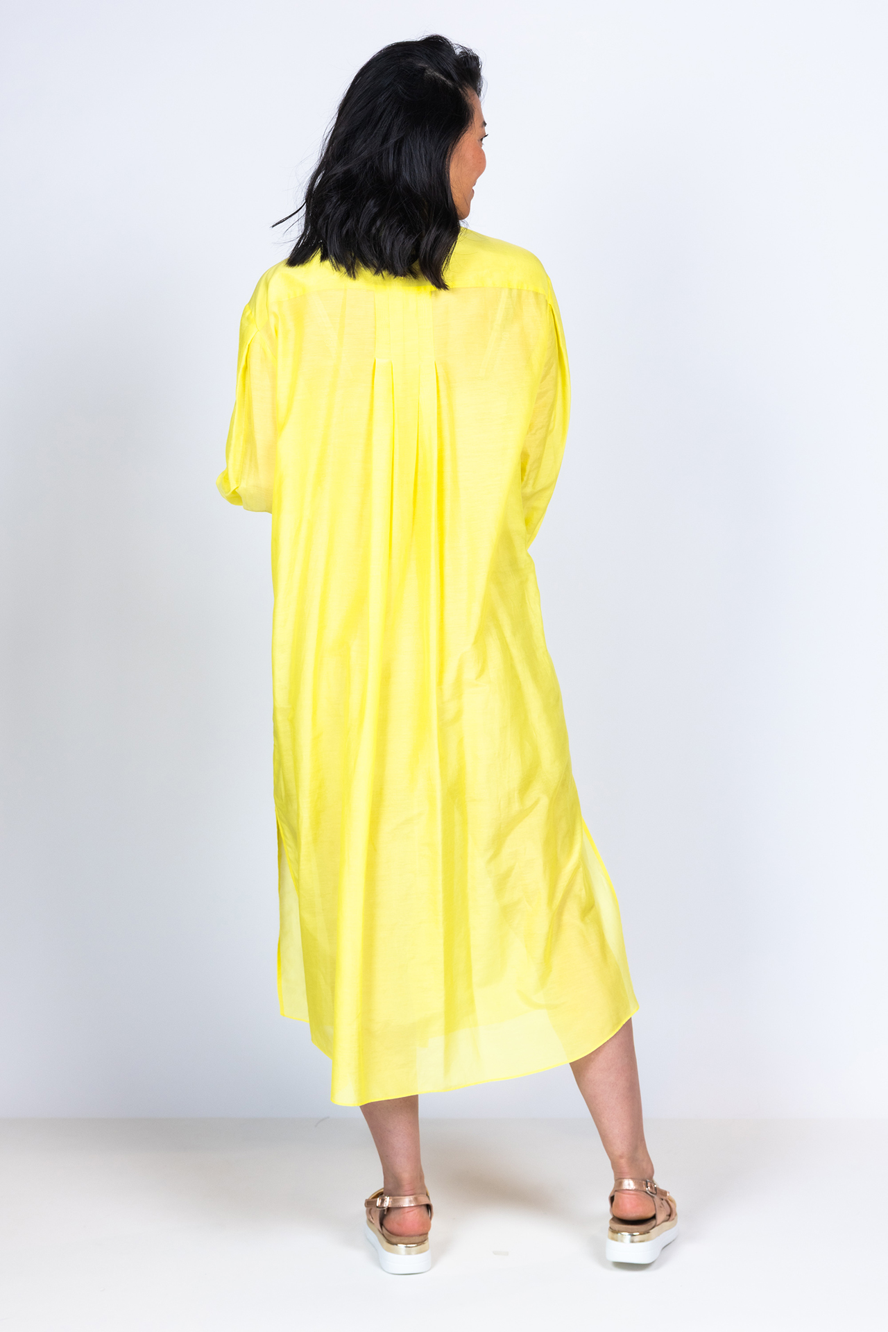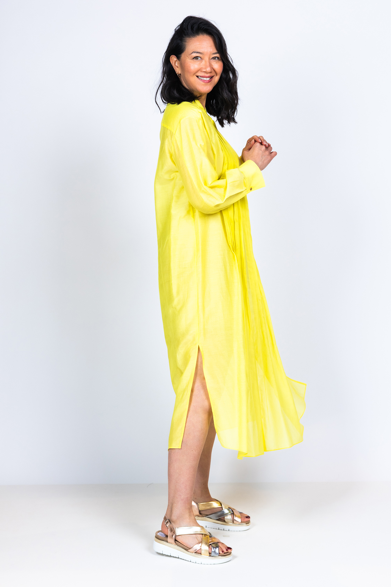 Soepel vallende katoen- en zijdemix jurk met lange mouwen, splitten aan de zijkant en plooien aan de voor- en achterkant
