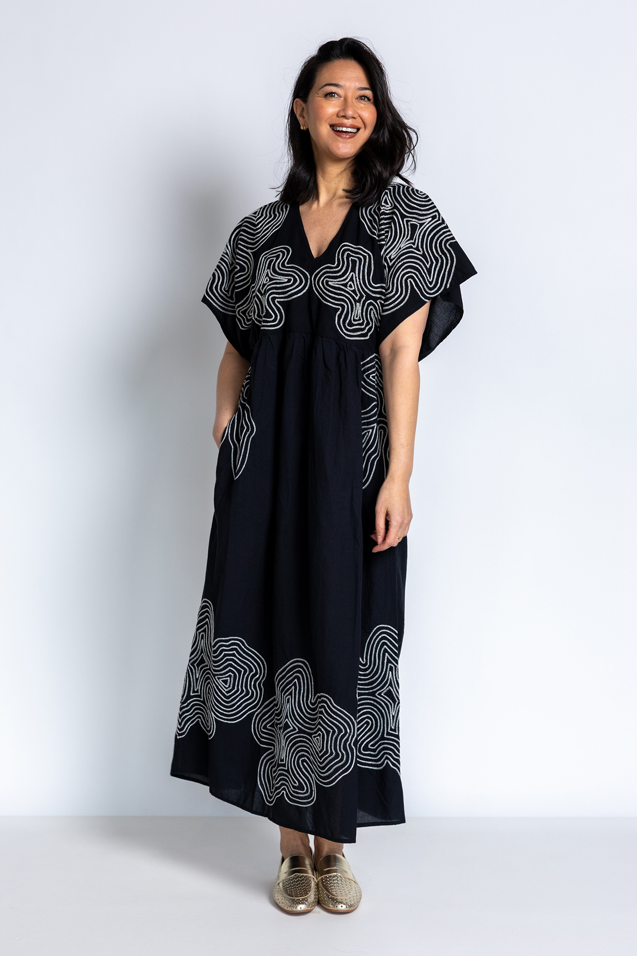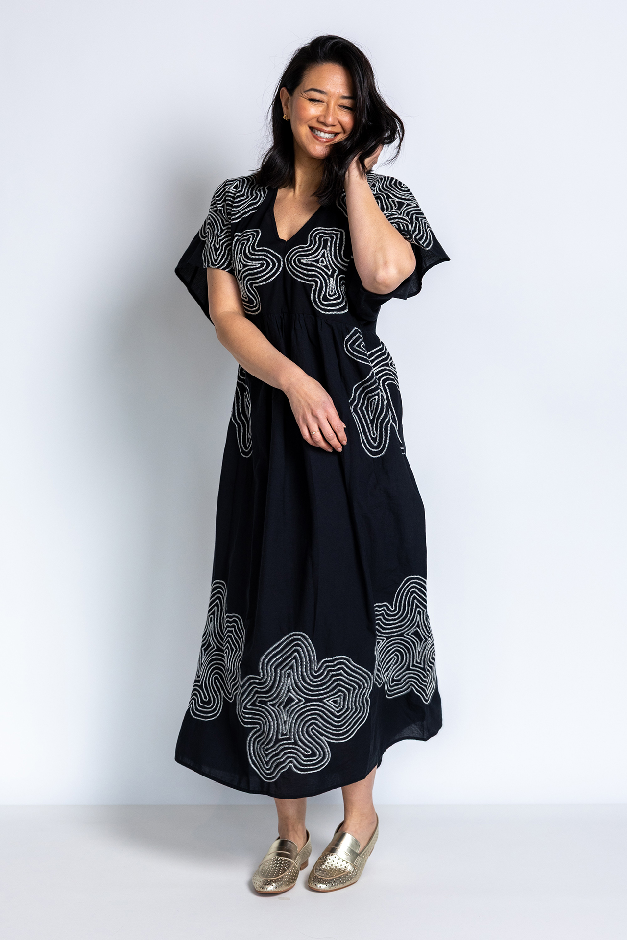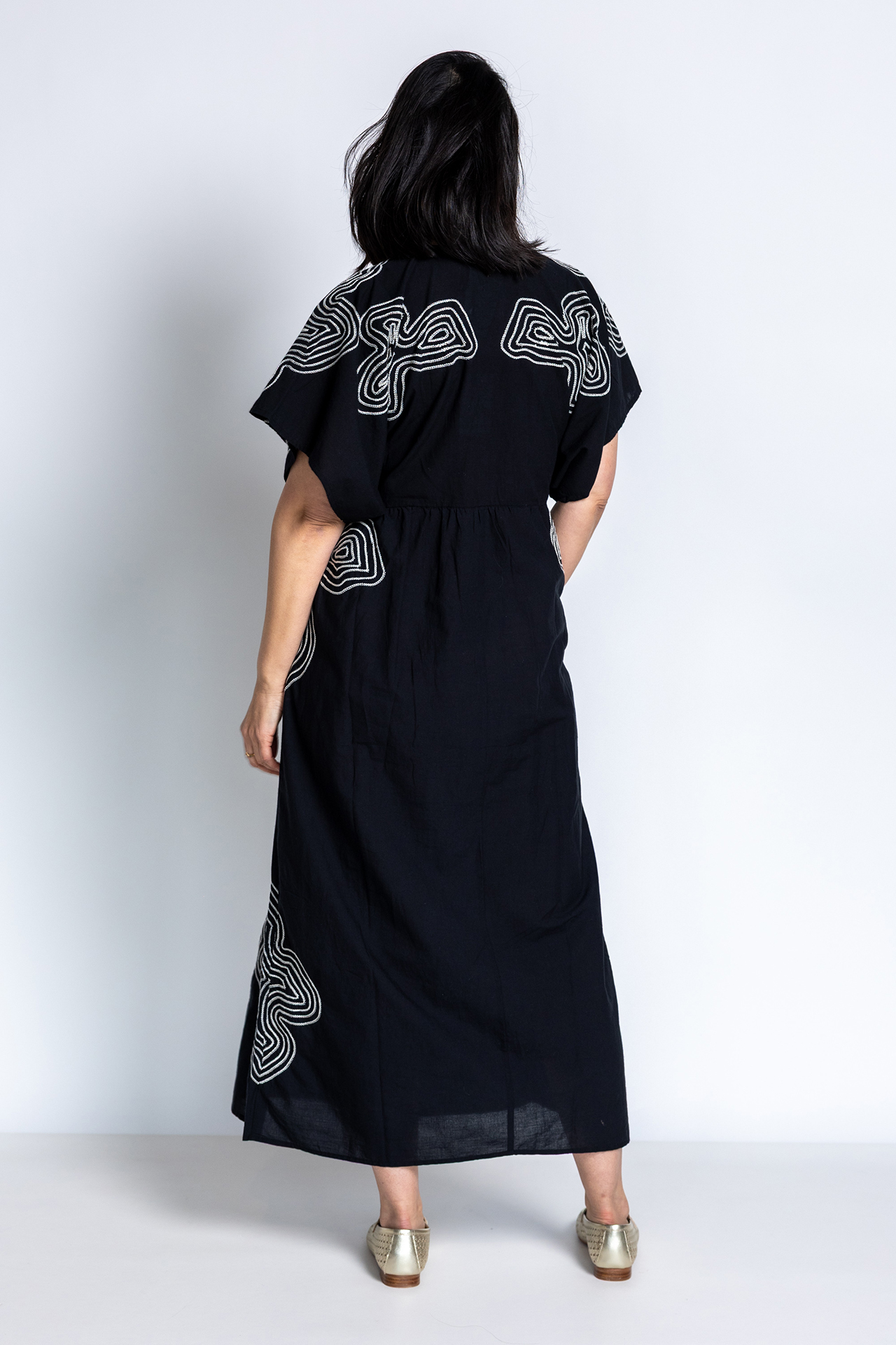 Katoenen loose fit jurk met een V-hals en witte borduursels